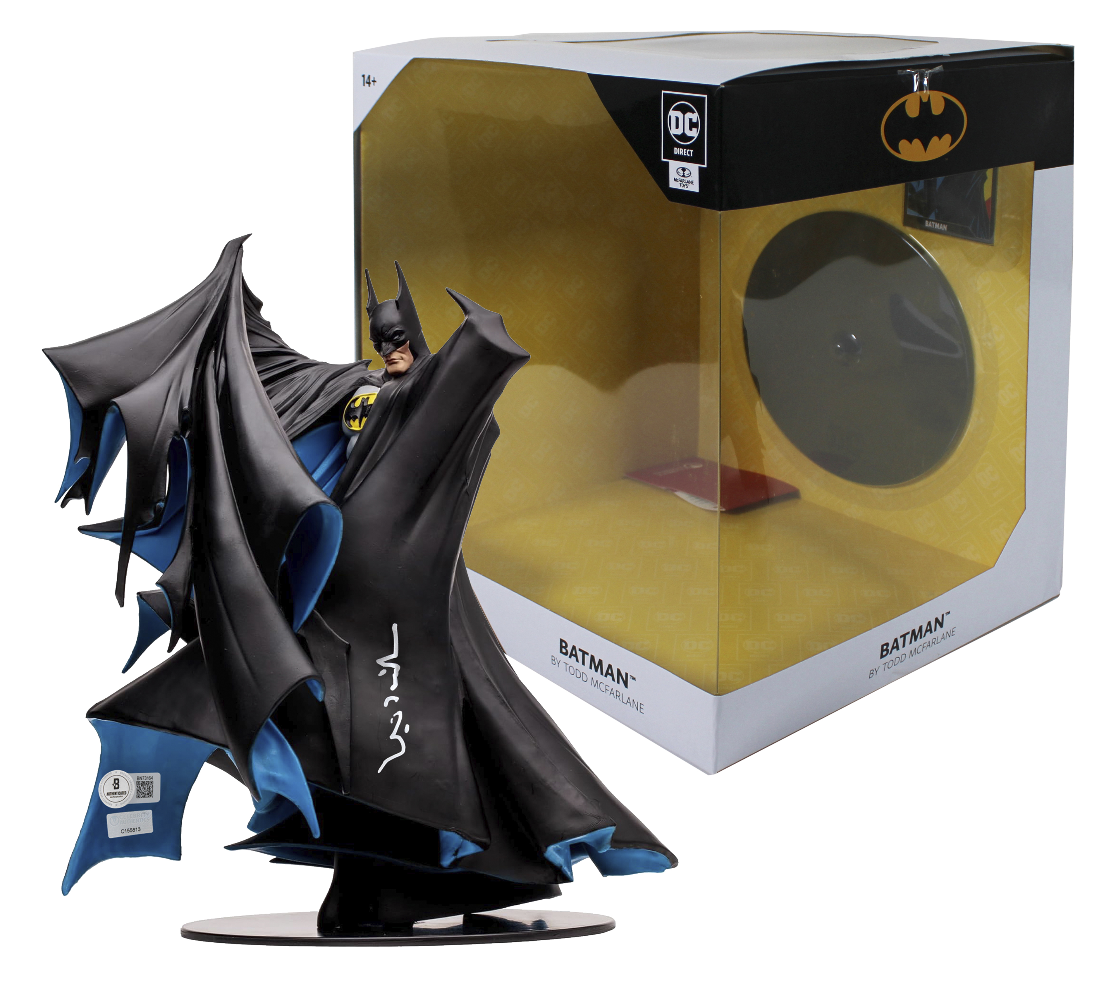 We have multiples of this same item. While the photographs are representative of this item, the size, placement and strength of the signature may vary. Each item is hand signed, therefore, each autograph is unique.This Autographed McFarlane Toys 12" Batman by Todd McFarlane Statue has been Personally Signed by Val Kilmer of Batman Forever. This item is 100% Authentic to include a hologram by Beckett Authentication Services. This item will come with an affixed Beckett Authentication Services (BAS) authentication sticker, which includes a scannable QR code to verify authenticity. Please note that Beckett no longer provides serial-numbered COA cards, and the attached BAS sticker will serve as the complete authentication for this item. We have multiples of this same item. While the photographs are representative of this item, the size, placement and strength of the signature may vary. Each item is hand signed, therefore, each autograph is unique.