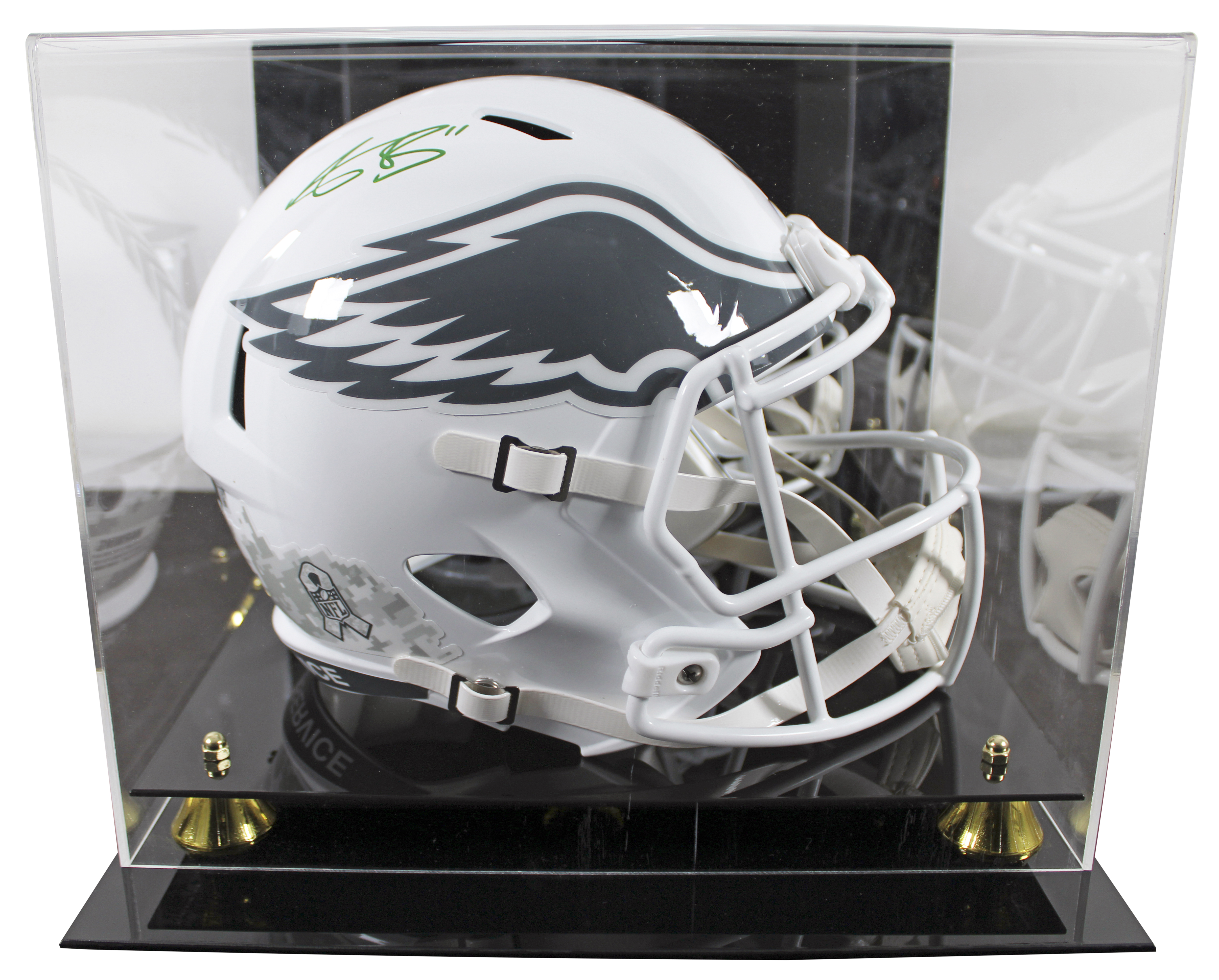 This Autographed Alternate 2024 Salute To Service III Riddell Full Size Speed Rep Helmet W/ Uv Mirrored Back Acrylic Display Case has been Personally Signed by A.J. Brown of the Philadelphia Eagles. This item is 100% Authentic to include a hologram by Beckett Authentication Services. This item will come with an affixed Beckett Authentication Services (BAS) authentication sticker, which includes a scannable QR code to verify authenticity. Please note that Beckett no longer provides serial-numbered COA cards, and the attached BAS sticker will serve as the complete authentication for this item. This is a BAS Witnessed Protection Program item which means a Beckett Authentication Service representative was present when this item was being signed. We conducted an autograph signing with A.J. Brown where multiples of the same item were signed. While the photographs are representative of this item, the size, placement and strength of the signature may vary. Each item is hand signed, therefore, each autograph is unique. This item can be verified through BAS Witnessed.