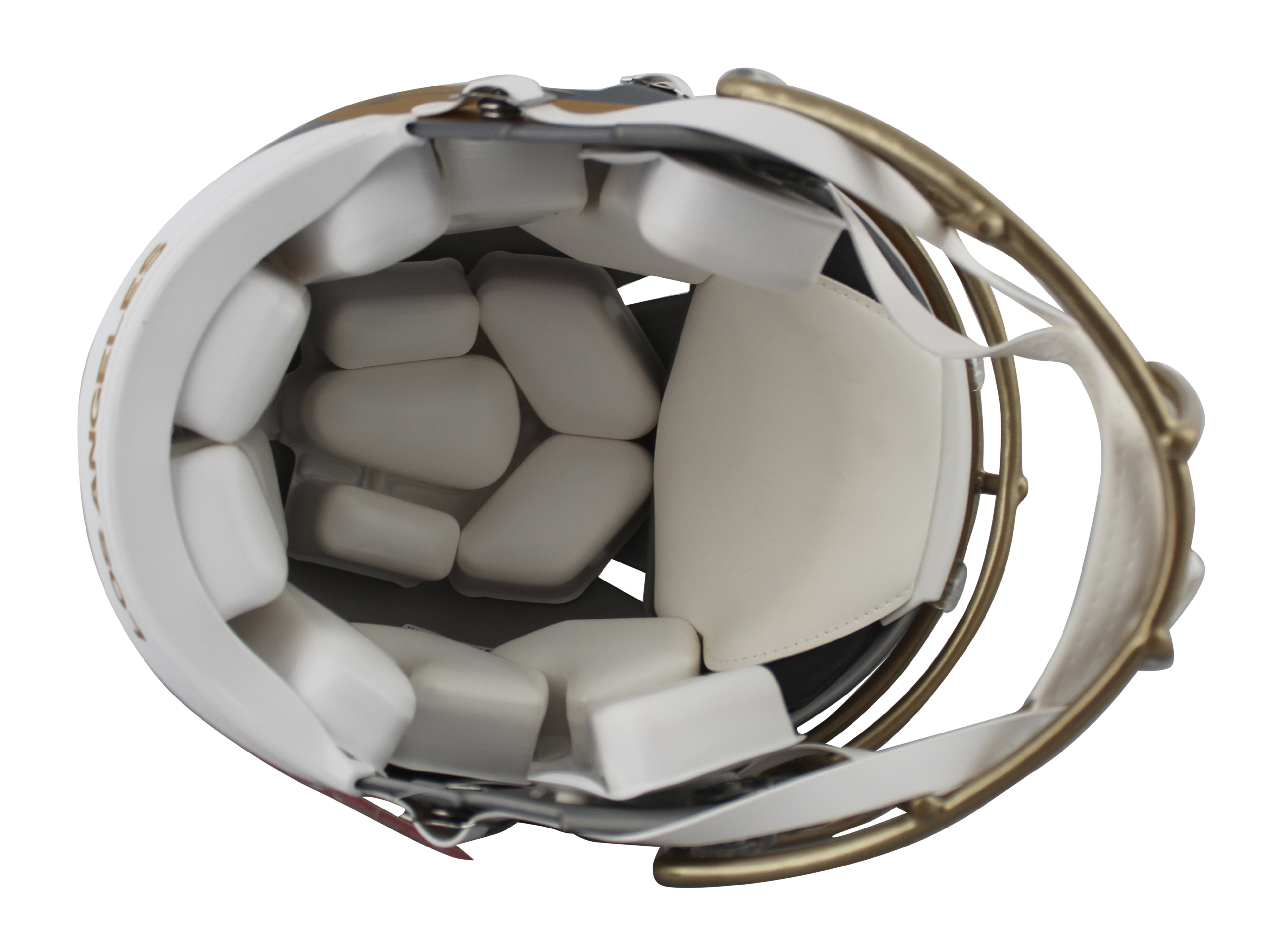 This Autographed Alternate Slate Riddell Authentic Full Size Speed Proline Helmet with the inscription of "HOF 99 (Dickerson), ROY 99, HOF 20XI (Faulk)" has been Personally Signed by Jerome Bettis, Eric Dickerson, & Marshall Faulk of the Los Angeles Rams. This item is 100% Authentic to include a hologram by Beckett Authentication Services. This item may come with the new Beckett Authentication hologram that has a scannable QR code rather than the traditional COA. If you would like to have a COA, you are welcome to reach out to Beckett for a printed certification once you receive your item. This is a BAS Witnessed Protection Program item which means a Beckett Authentication Service representative was present when this item was being signed. We conducted an autograph signing with Jerome Bettis, Eric Dickerson, & Marshall Faulk where multiples of the same item were signed. While the photographs are representative of this item, the size, placement and strength of the signature may vary. Each item is hand signed, therefore, each autograph is unique. This item can be verified through BAS Witnessed.