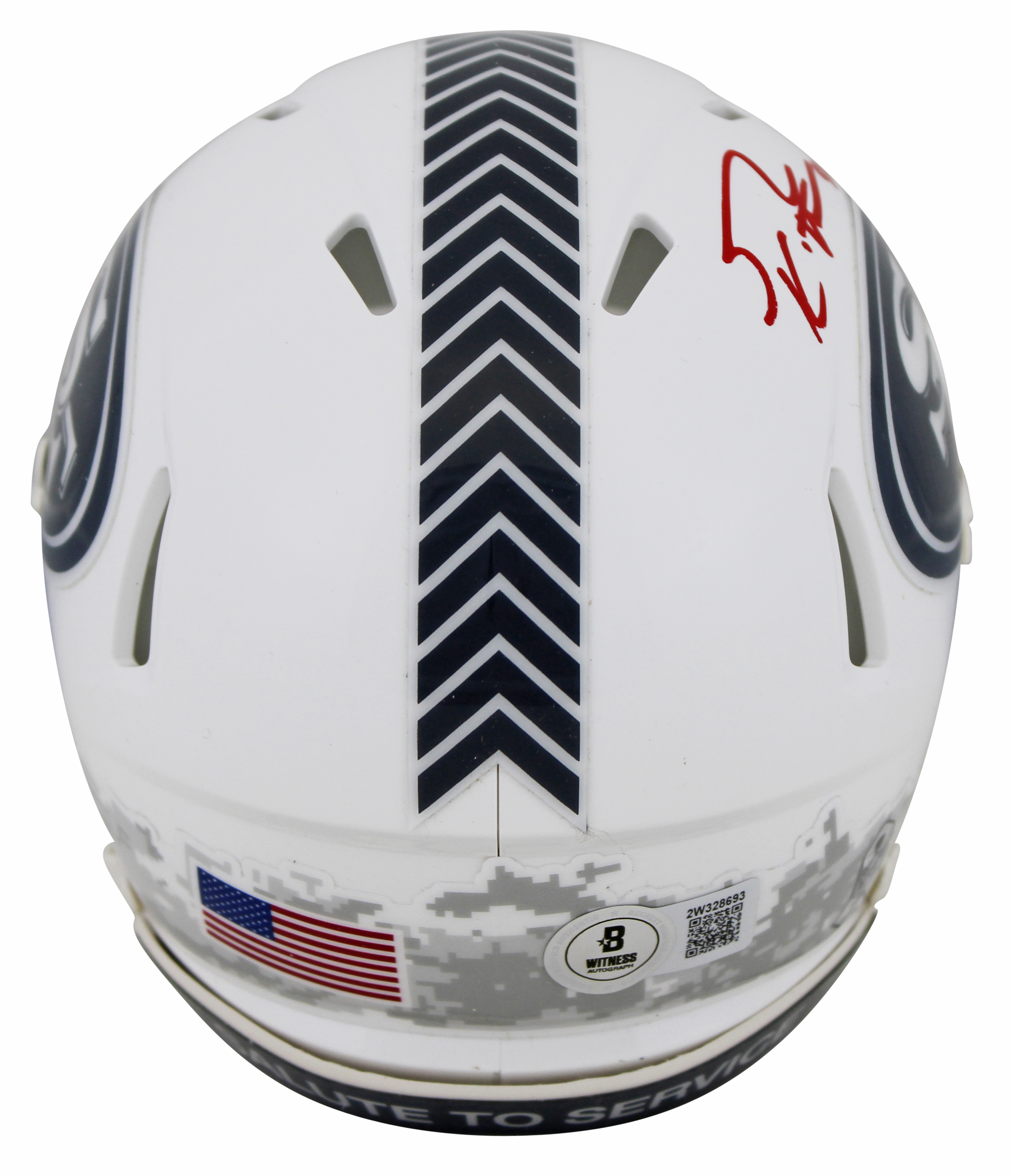 This Autographed Alternate 2024 Salute To Service III Speed Mini Helmet has been Personally Signed by George Kittle of the San Francisco 49ers. This item is 100% Authentic to include a hologram by Beckett Authentication Services. This item will come with an affixed Beckett Authentication Services (BAS) authentication sticker, which includes a scannable QR code to verify authenticity. Please note that Beckett no longer provides serial-numbered COA cards, and the attached BAS sticker will serve as the complete authentication for this item. This is a BAS Witnessed Protection Program item which means a Beckett Authentication Service representative was present when this item was being signed. We conducted an autograph signing with George Kittle where multiples of the same item were signed. While the photographs are representative of this item, the size, placement and strength of the signature may vary. Each item is hand signed, therefore, each autograph is unique. This item can be verified through BAS Witnessed.