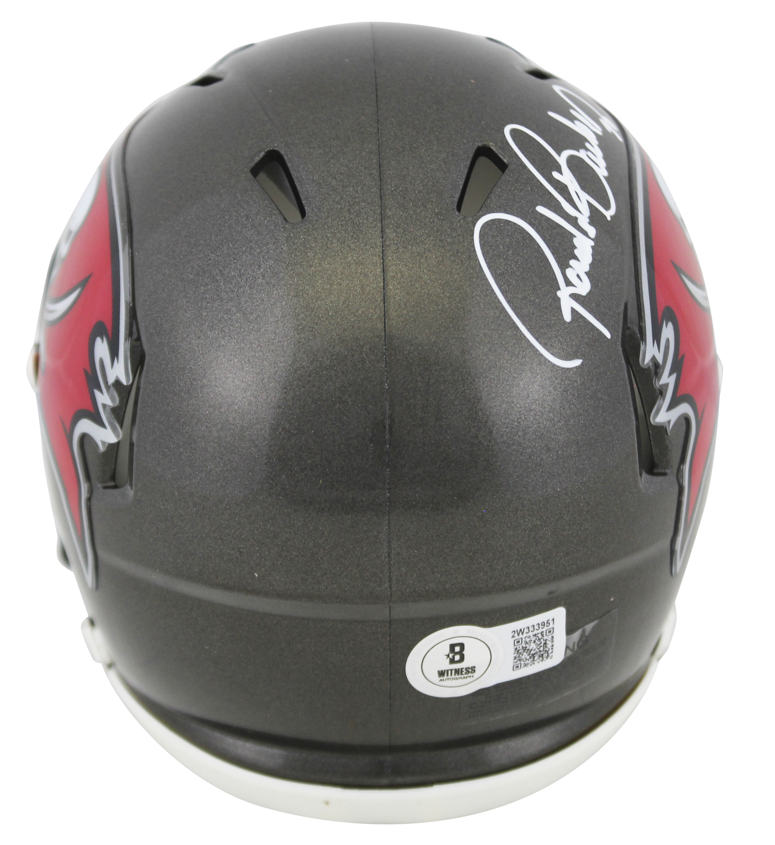 This Autographed Speed Mini Helmet W/ Uv Mirrored Back Acrylic Display Case has been Personally Signed by Ronde Barber of the Tampa Bay Buccaneers. This item is 100% Authentic to include a hologram by Beckett Authentication Services. This item will come with an affixed Beckett Authentication Services (BAS) authentication sticker, which includes a scannable QR code to verify authenticity. Please note that Beckett no longer provides serial-numbered COA cards, and the attached BAS sticker will serve as the complete authentication for this item. This is a BAS Witnessed Protection Program item which means a Beckett Authentication Service representative was present when this item was being signed. We conducted an autograph signing with Ronde Barber where multiples of the same item were signed. While the photographs are representative of this item, the size, placement and strength of the signature may vary. Each item is hand signed, therefore, each autograph is unique. This item can be verified through BAS Witnessed.