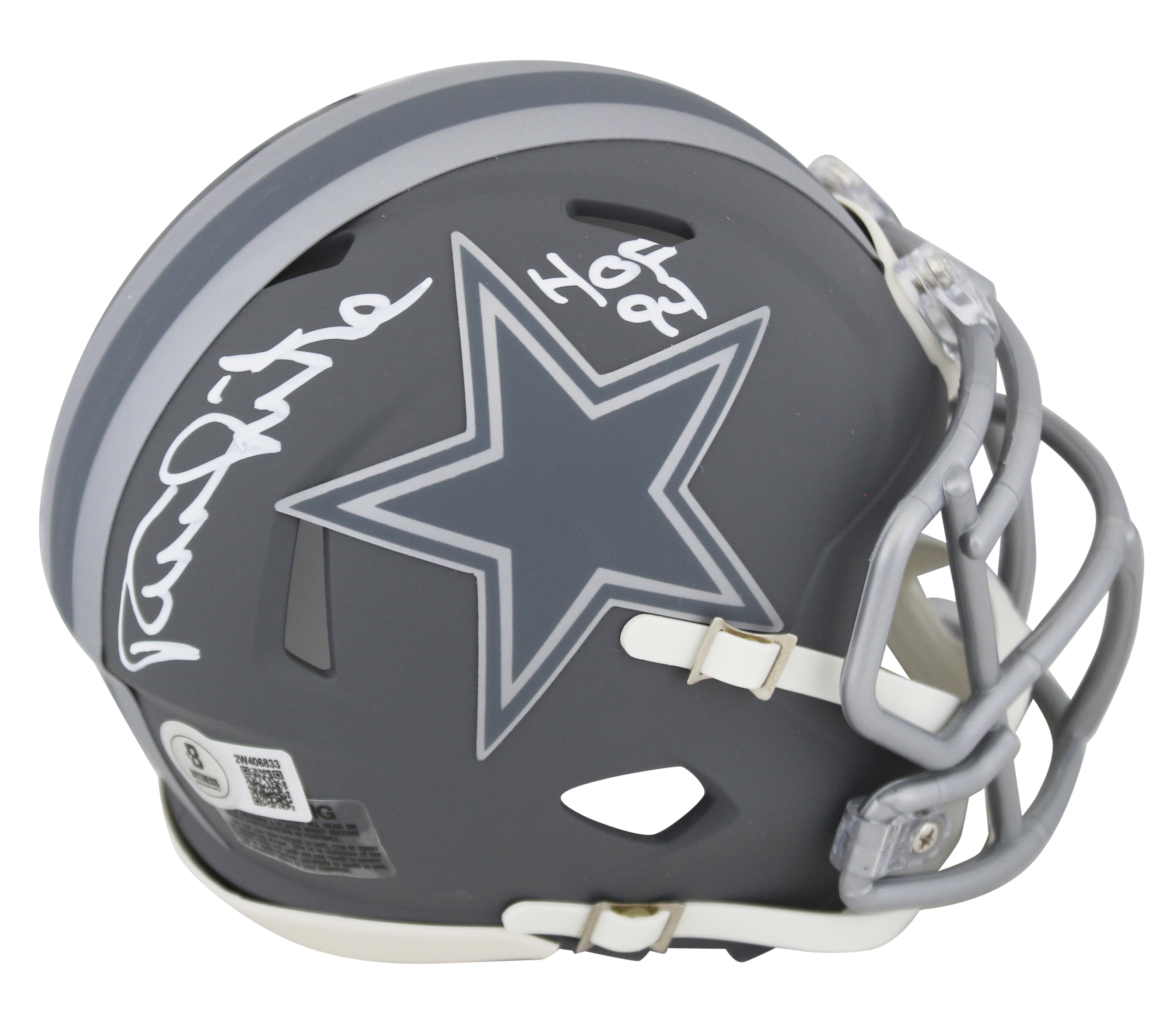 This Autographed Alternate Slate Speed Mini Helmet W/ Uv Mirrored Back Acrylic Display Case with the inscription of "HOF 94" has been Personally Signed by Randy White of the Dallas Cowboys. This item is 100% Authentic to include a hologram by Beckett Authentication Services. This item will come with the new Beckett Authentication hologram that has a scannable QR code rather than the traditional COA. If you would like to have a COA, you are welcome to reach out to Beckett for a printed certification once you receive your item. This is a BAS Witnessed Protection Program item which means a Beckett Authentication Service representative was present when this item was being signed. We conducted an autograph signing with Randy White where multiples of the same item were signed. While the photographs are representative of this item, the size, placement and strength of the signature may vary. Each item is hand signed, therefore, each autograph is unique. This item can be verified through BAS Witnessed.