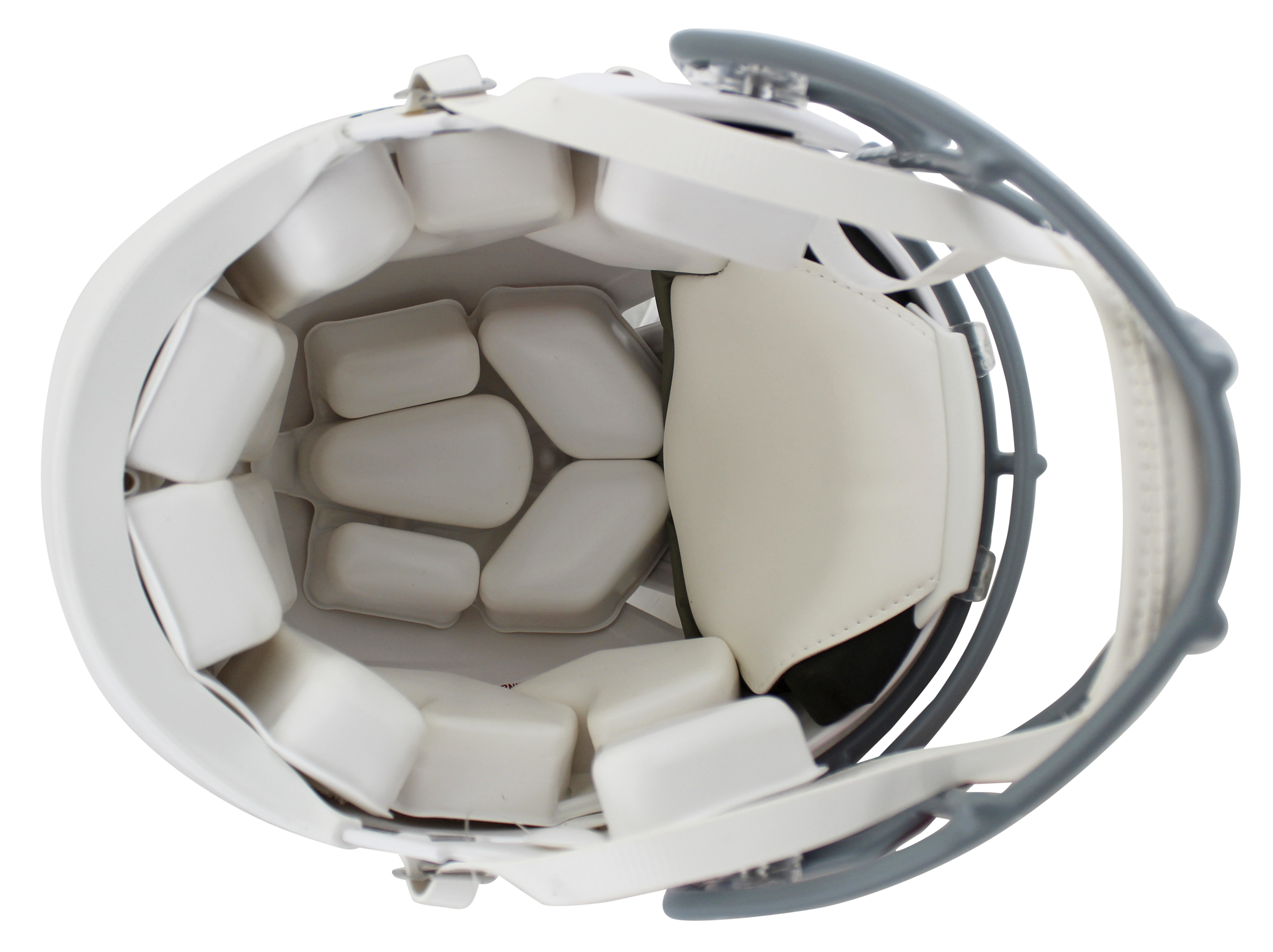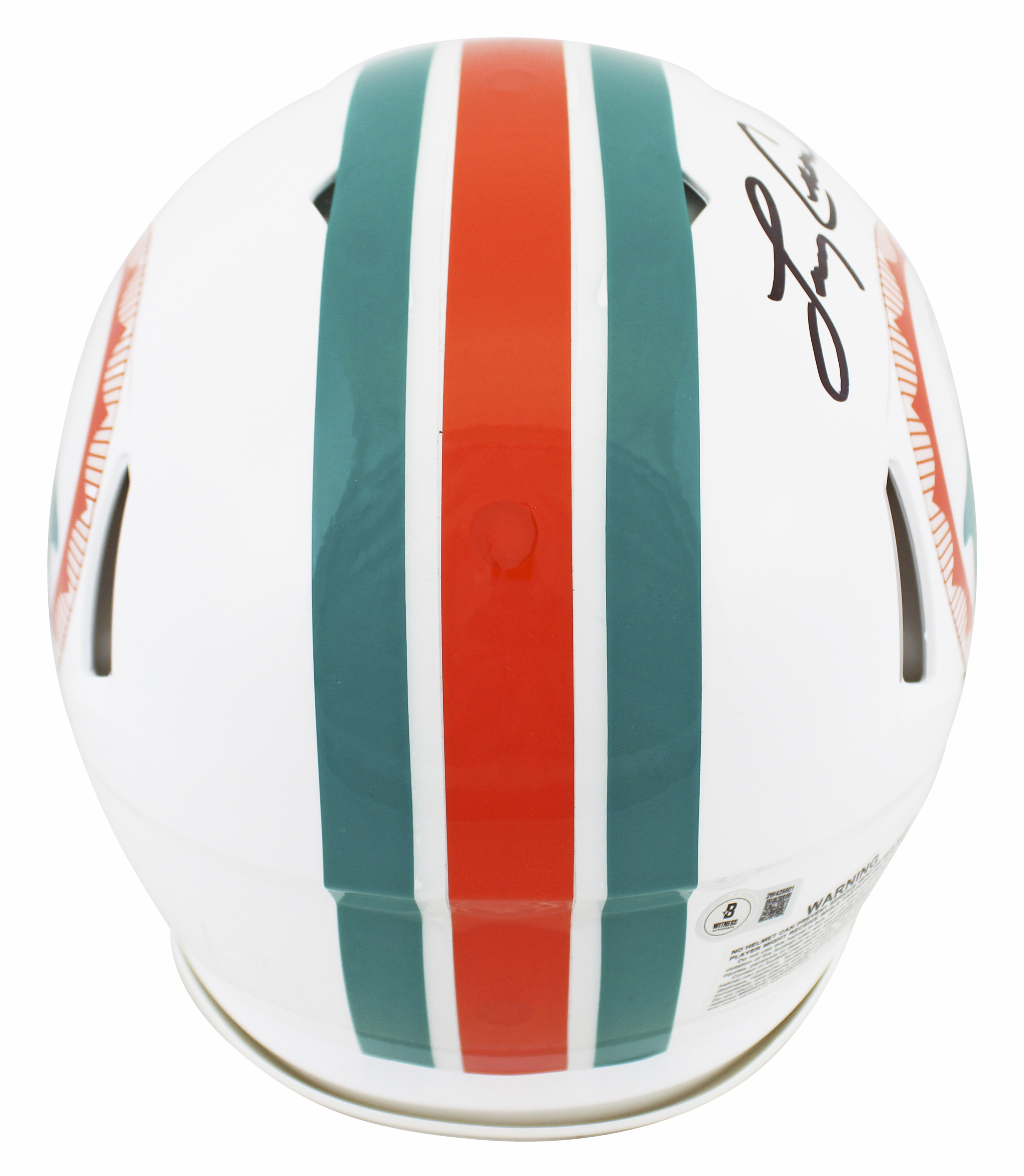 This Autographed 1972 Throwback Authentic Full Size Speed Proline Helmet with the inscription of "HOF 87" has been Personally Signed by Larry Csonka of the Miami Dolphins. This item is 100% Authentic to include a hologram by Beckett Authentication Services. This item will come with an affixed Beckett Authentication Services (BAS) authentication sticker, which includes a scannable QR code to verify authenticity. Please note that Beckett no longer provides serial-numbered COA cards, and the attached BAS sticker will serve as the complete authentication for this item. This is a BAS Witnessed Protection Program item which means a Beckett Authentication Service representative was present when this item was being signed. We conducted an autograph signing with Larry Csonka where multiples of the same item were signed. While the photographs are representative of this item, the size, placement and strength of the signature may vary. Each item is hand signed, therefore, each autograph is unique. This item can be verified through BAS Witnessed.