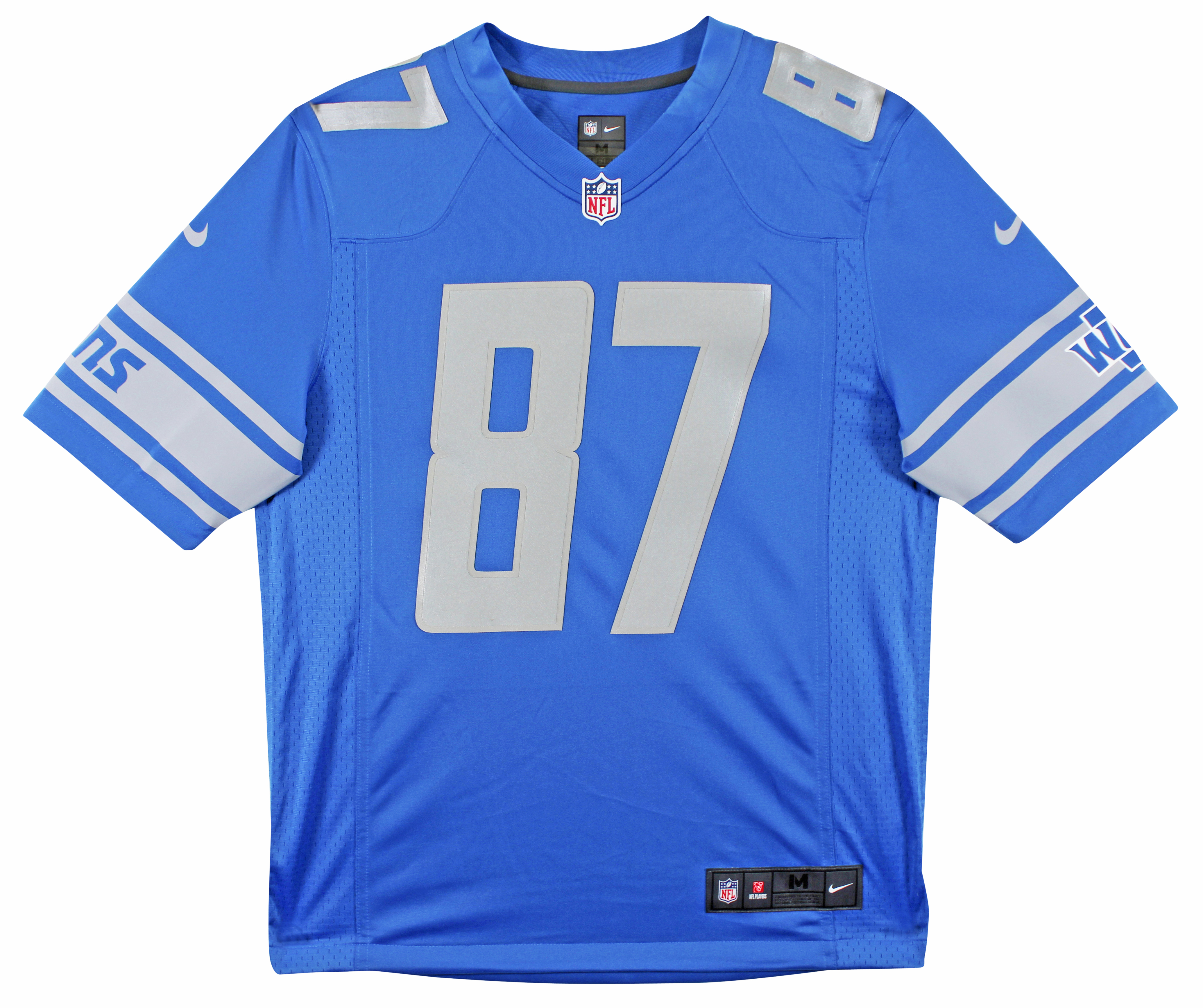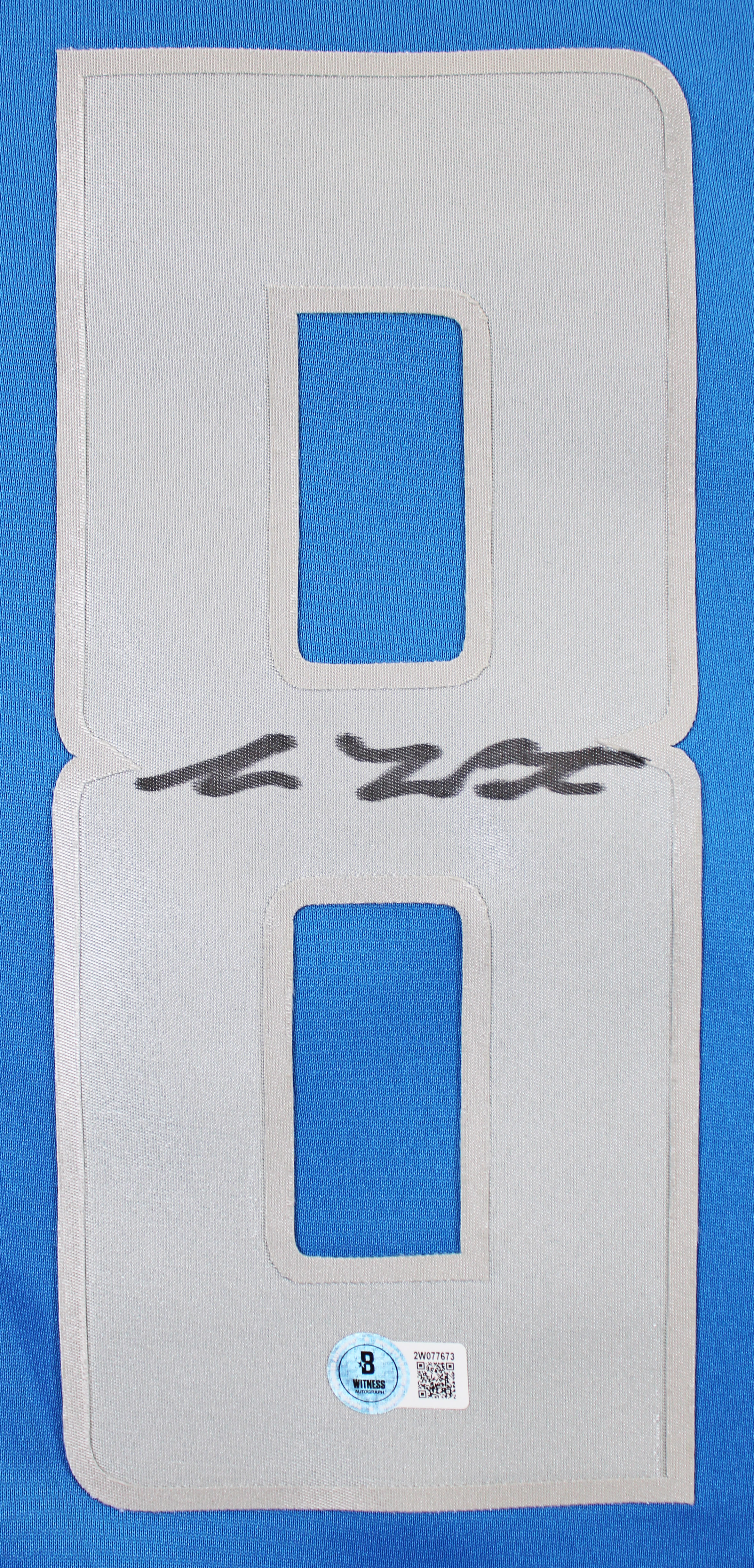 This Autographed Blue Nike Limited Jersey has been Personally Signed by Sam LaPorta of the Detroit Lions. This item is 100% Authentic to include a hologram by Beckett Authentication Services. This item will come with an affixed Beckett Authentication Services (BAS) authentication sticker, which includes a scannable QR code to verify authenticity. Please note that Beckett no longer provides serial-numbered COA cards, and the attached BAS sticker will serve as the complete authentication for this item. This is a BAS Witnessed Protection Program item which means a Beckett Authentication Service representative was present when this item was being signed. We conducted an autograph signing with Sam LaPorta where multiples of the same item were signed. While the photographs are representative of this item, the size, placement and strength of the signature may vary. Each item is hand signed, therefore, each autograph is unique. This item can be verified through BAS Witnessed. This is a Medium sized Jersey.