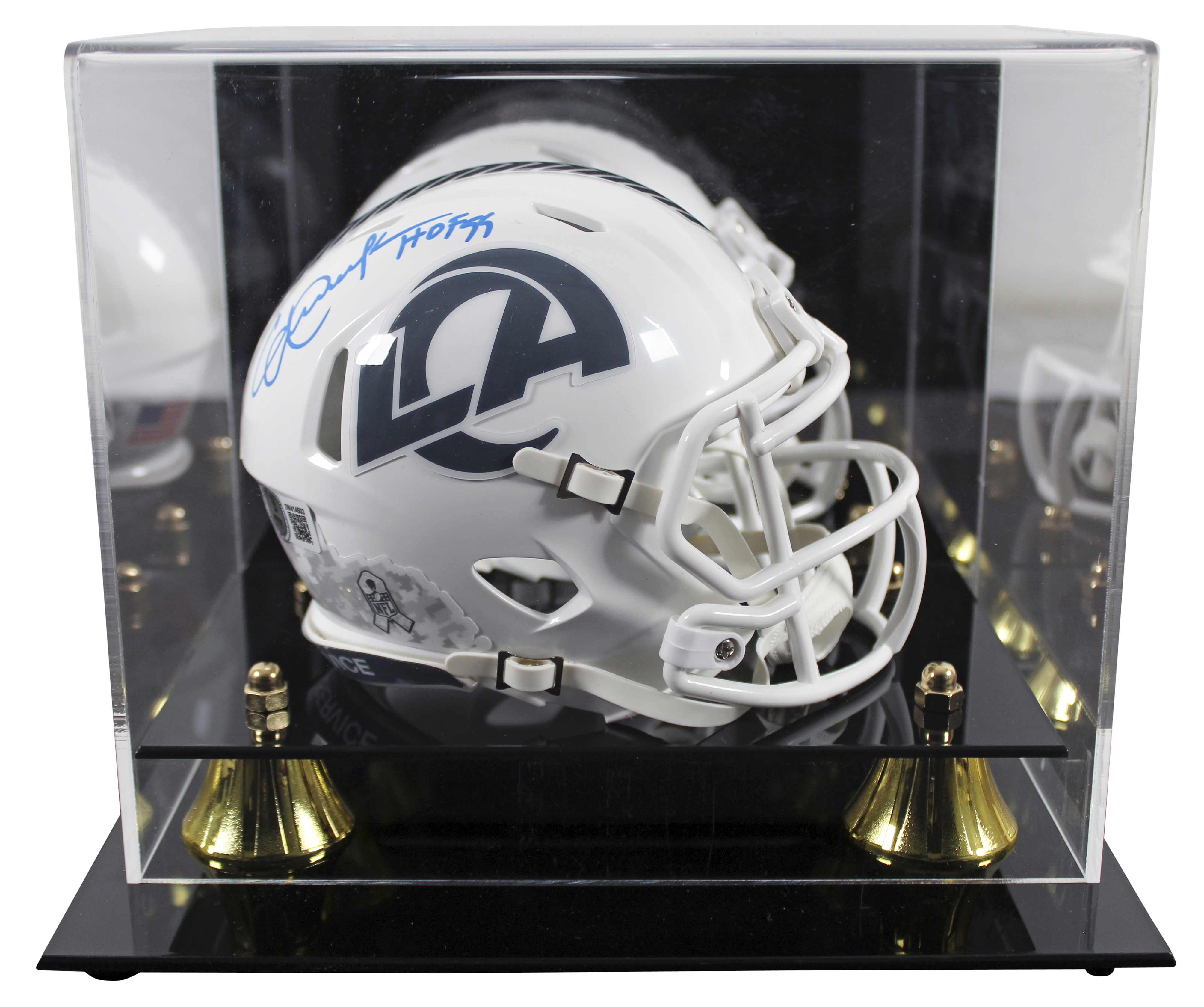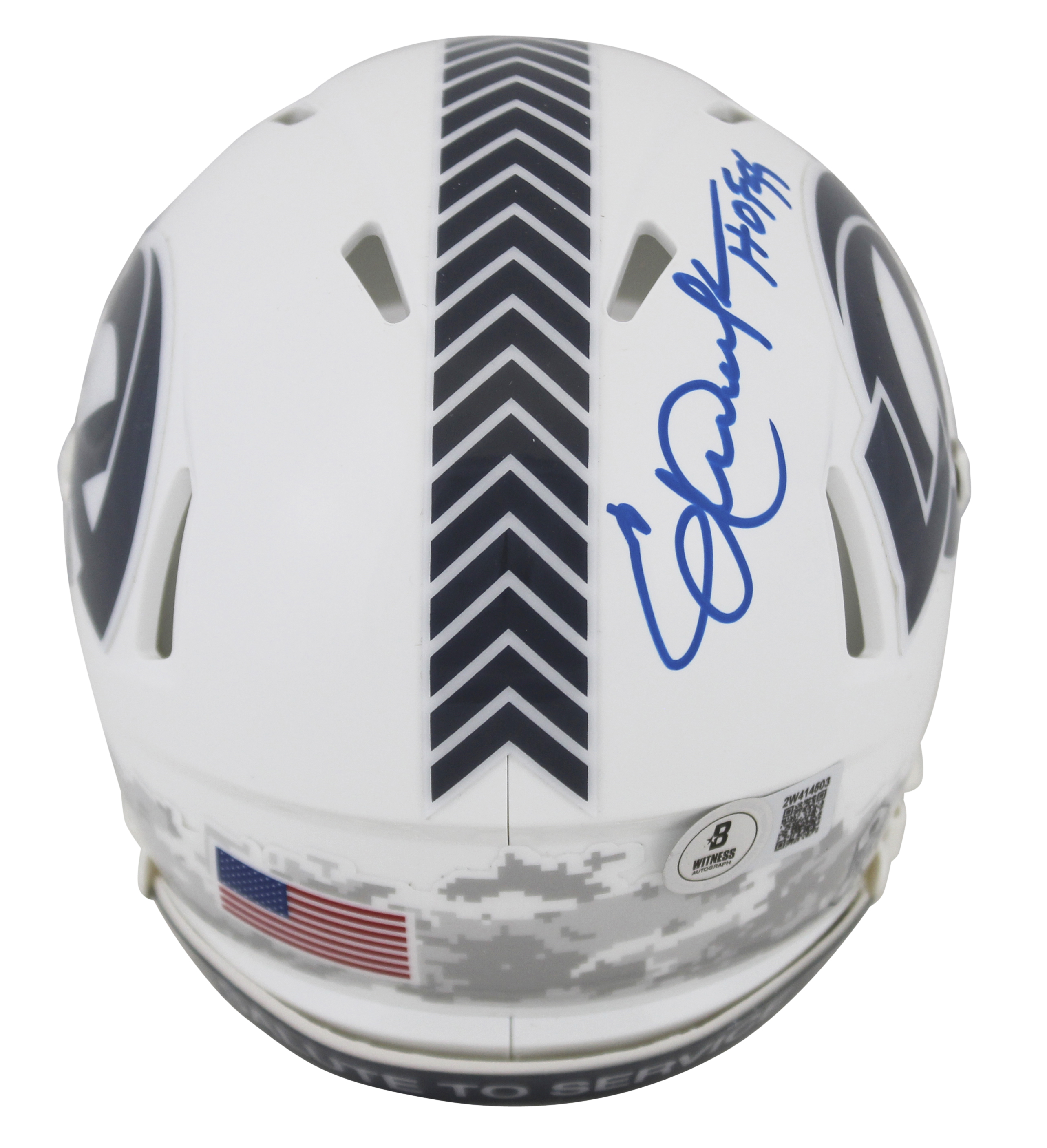 This Autographed Alternate 2024 Salute To Service III Speed Mini Helmet W/ Uv Mirrored Back Acrylic Display Case with the inscription of "HOF 99" has been Personally Signed by Eric Dickerson of the Los Angeles Rams. This item is 100% Authentic to include a hologram by Beckett Authentication Services. This item will come with an affixed Beckett Authentication Services (BAS) authentication sticker, which includes a scannable QR code to verify authenticity. Please note that Beckett no longer provides serial-numbered COA cards, and the attached BAS sticker will serve as the complete authentication for this item. This is a BAS Witnessed Protection Program item which means a Beckett Authentication Service representative was present when this item was being signed. We conducted an autograph signing with Eric Dickerson where multiples of the same item were signed. While the photographs are representative of this item, the size, placement and strength of the signature may vary. Each item is hand signed, therefore, each autograph is unique. This item can be verified through BAS Witnessed.