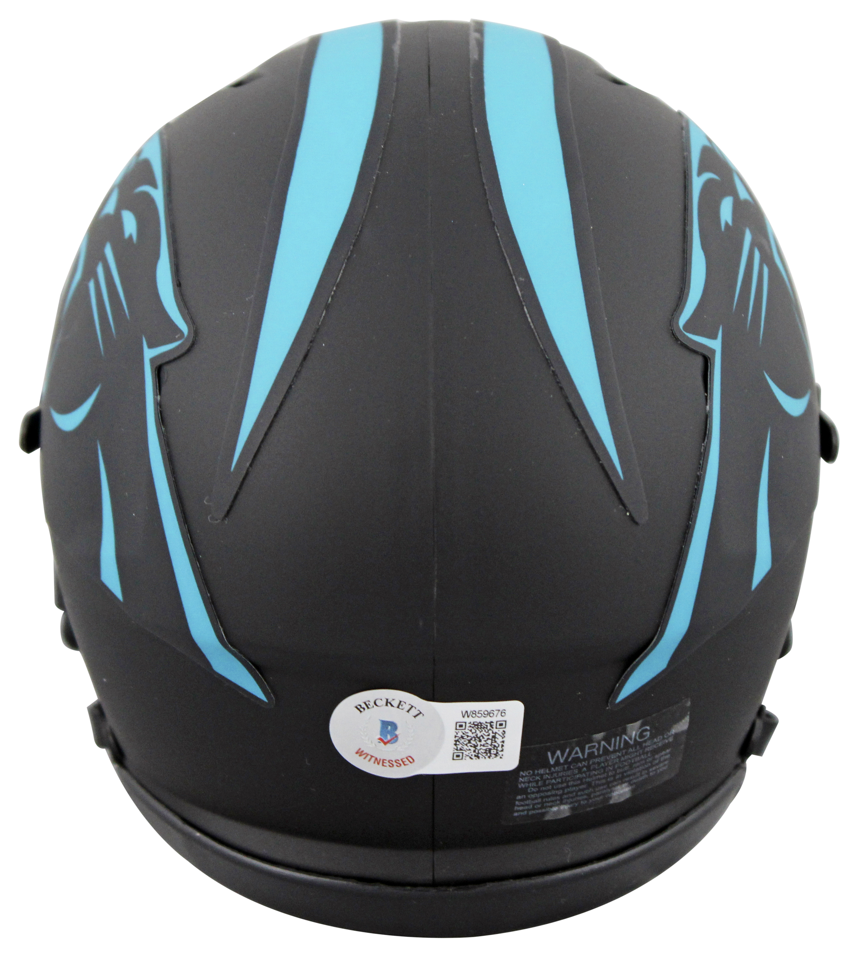 This Autographed Alternate Eclipse Speed Mini Helmet has been Personally Signed by Ja'Tavion Sanders of the Carolina Panthers. This item is 100% Authentic to include a hologram by Beckett Authentication Services. This item will come with an affixed Beckett Authentication Services (BAS) authentication sticker, which includes a scannable QR code to verify authenticity. Please note that Beckett no longer provides serial-numbered COA cards, and the attached BAS sticker will serve as the complete authentication for this item. This is a BAS Witnessed Protection Program item which means a Beckett Authentication Service representative was present when this item was being signed. We conducted an autograph signing with Ja'Tavion Sanders where multiples of the same item were signed. While the photographs are representative of this item, the size, placement and strength of the signature may vary. Each item is hand signed, therefore, each autograph is unique. This item can be verified through BAS Witnessed.