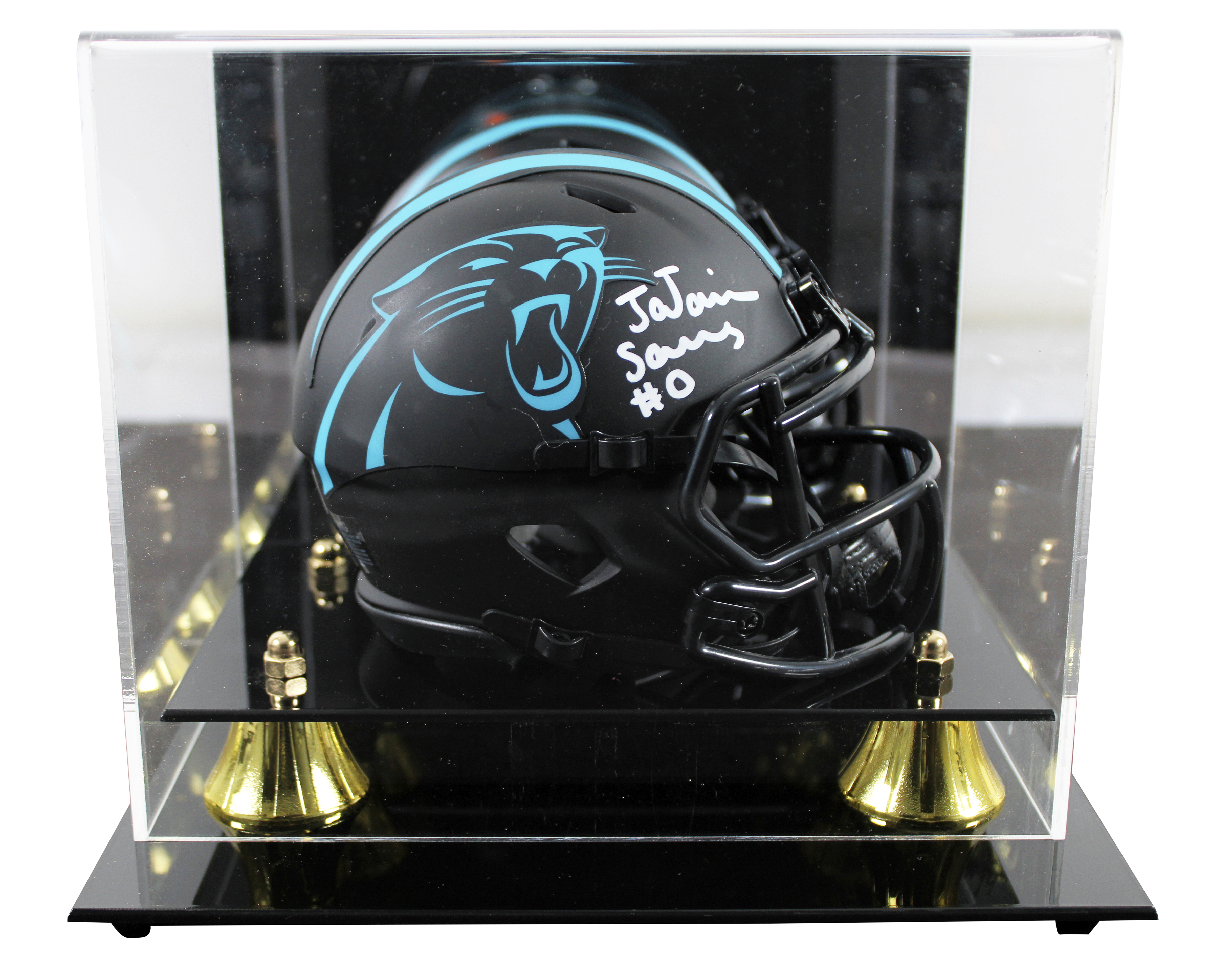 This Autographed Alternate Eclipse Speed Mini Helmet W/ Uv Mirrored Back Acrylic Display Case has been Personally Signed by Ja'Tavion Sanders of the Carolina Panthers. This item is 100% Authentic to include a hologram by Beckett Authentication Services. This item will come with an affixed Beckett Authentication Services (BAS) authentication sticker, which includes a scannable QR code to verify authenticity. Please note that Beckett no longer provides serial-numbered COA cards, and the attached BAS sticker will serve as the complete authentication for this item. This is a BAS Witnessed Protection Program item which means a Beckett Authentication Service representative was present when this item was being signed. We conducted an autograph signing with Ja'Tavion Sanders where multiples of the same item were signed. While the photographs are representative of this item, the size, placement and strength of the signature may vary. Each item is hand signed, therefore, each autograph is unique. This item can be verified through BAS Witnessed.