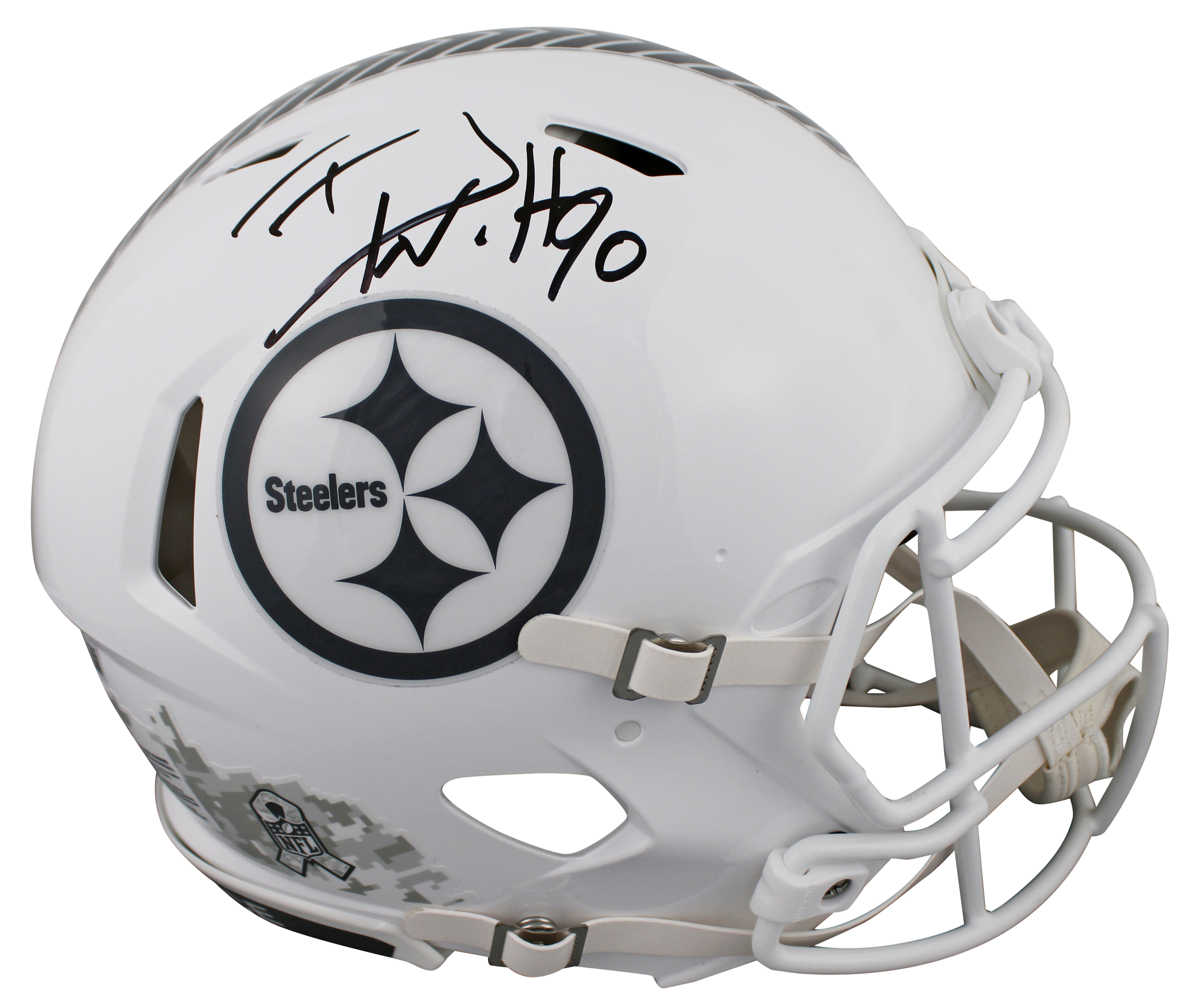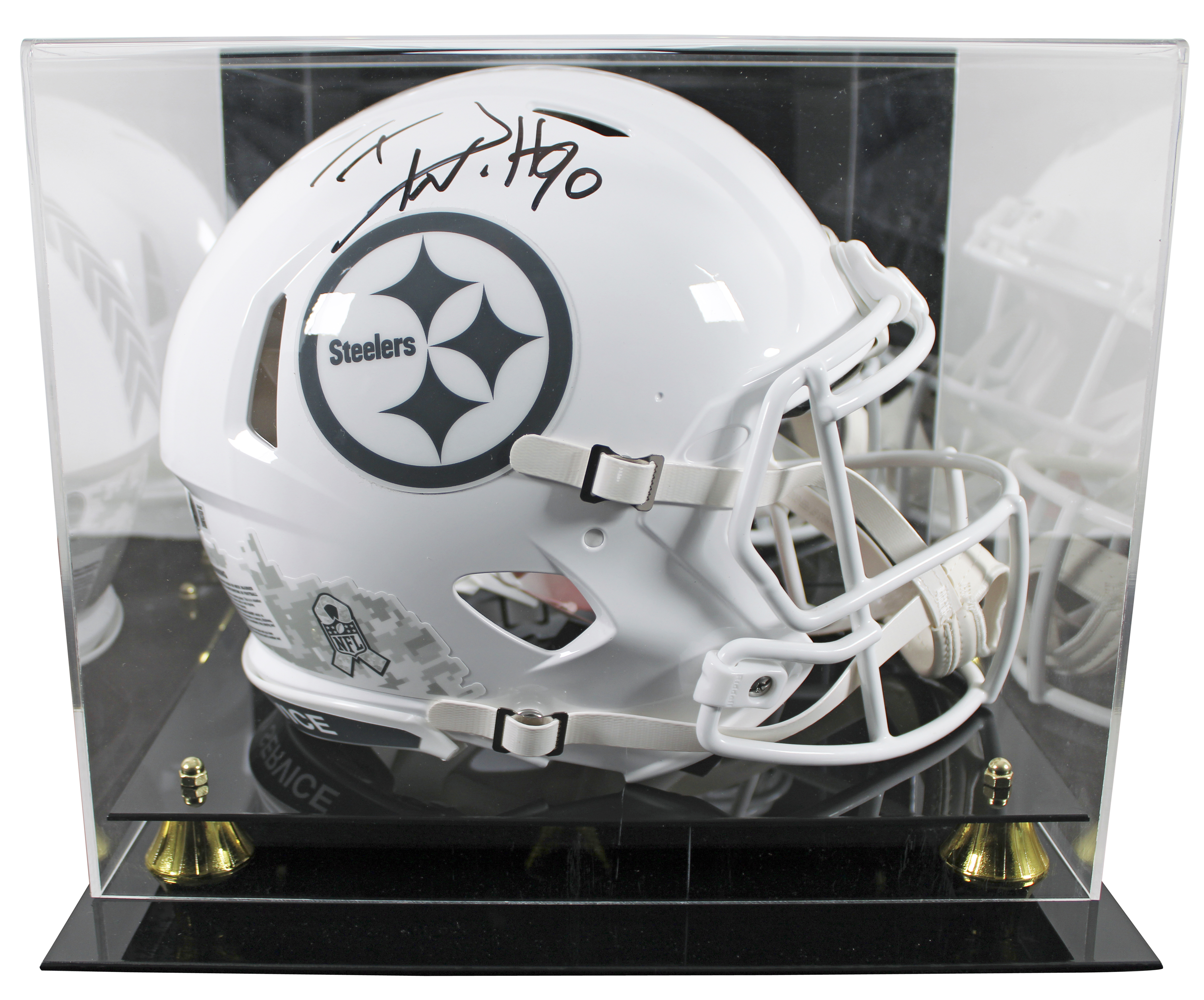 This Autographed Alternate 2024 Salute To Service III Riddell Full Size Speed Proline Helmet W/ Uv Mirrored Back Acrylic Display Case has been Personally Signed by T.J. Watt of the Pittsburgh Steelers. This item is 100% Authentic to include a hologram by Beckett Authentication Services. This item will come with an affixed Beckett Authentication Services (BAS) authentication sticker, which includes a scannable QR code to verify authenticity. Please note that Beckett no longer provides serial-numbered COA cards, and the attached BAS sticker will serve as the complete authentication for this item. This is a BAS Witnessed Protection Program item which means a Beckett Authentication Service representative was present when this item was being signed. We conducted an autograph signing with T.J. Watt where multiples of the same item were signed. While the photographs are representative of this item, the size, placement and strength of the signature may vary. Each item is hand signed, therefore, each autograph is unique. This item can be verified through BAS Witnessed.