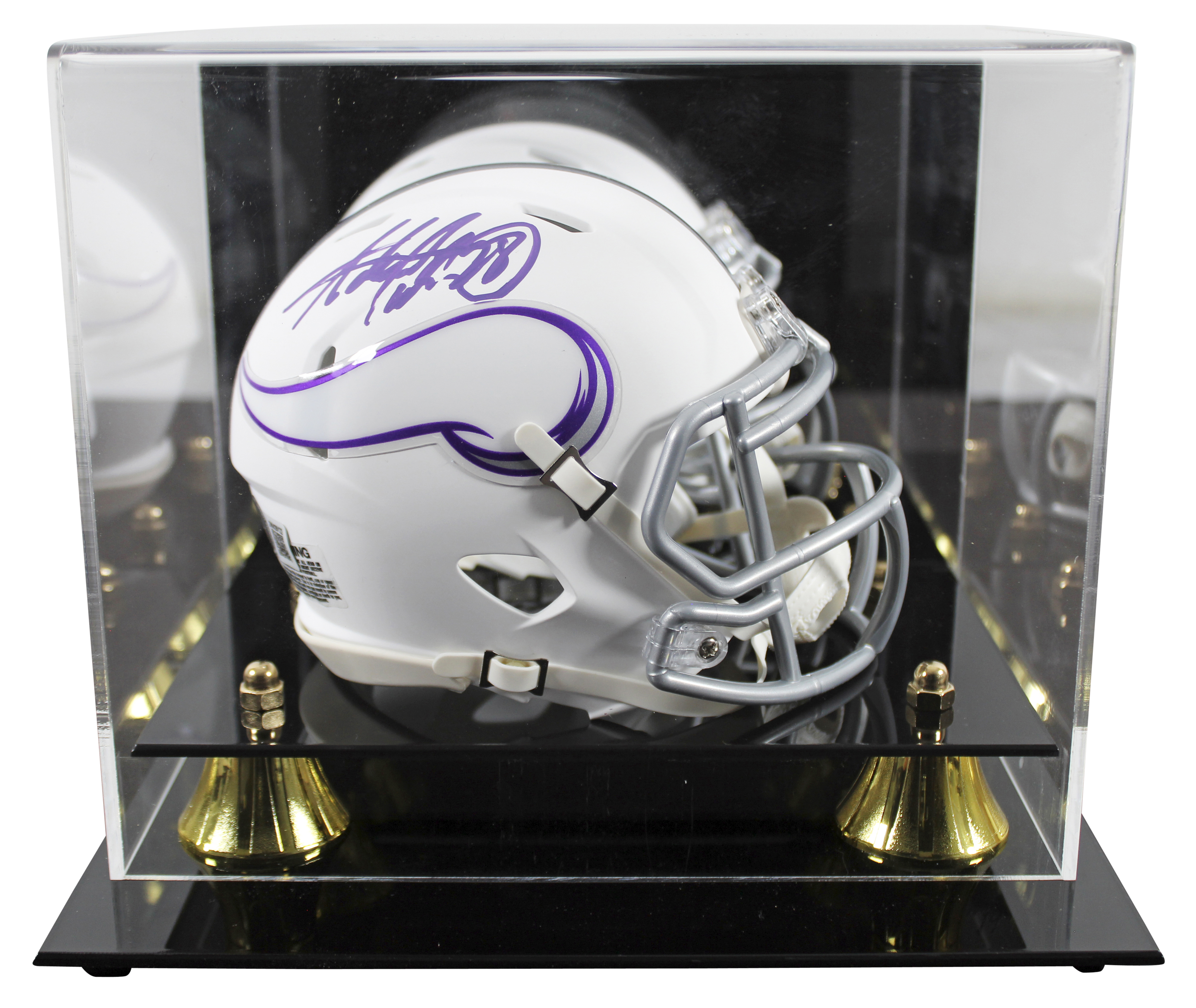 This Autographed 2024 On-Field Alternate Speed Mini Helmet W/ Uv Mirrored Back Acrylic Display Case has been Personally Signed by Adrian Peterson of the Minnesota Vikings. This item is 100% Authentic to include a hologram by Beckett Authentication Services. This item will come with an affixed Beckett Authentication Services (BAS) authentication sticker, which includes a scannable QR code to verify authenticity. Please note that Beckett no longer provides serial-numbered COA cards, and the attached BAS sticker will serve as the complete authentication for this item. This is a BAS Witnessed Protection Program item which means a Beckett Authentication Service representative was present when this item was being signed. We conducted an autograph signing with Adrian Peterson where multiples of the same item were signed. While the photographs are representative of this item, the size, placement and strength of the signature may vary. Each item is hand signed, therefore, each autograph is unique. This item can be verified through BAS Witnessed.