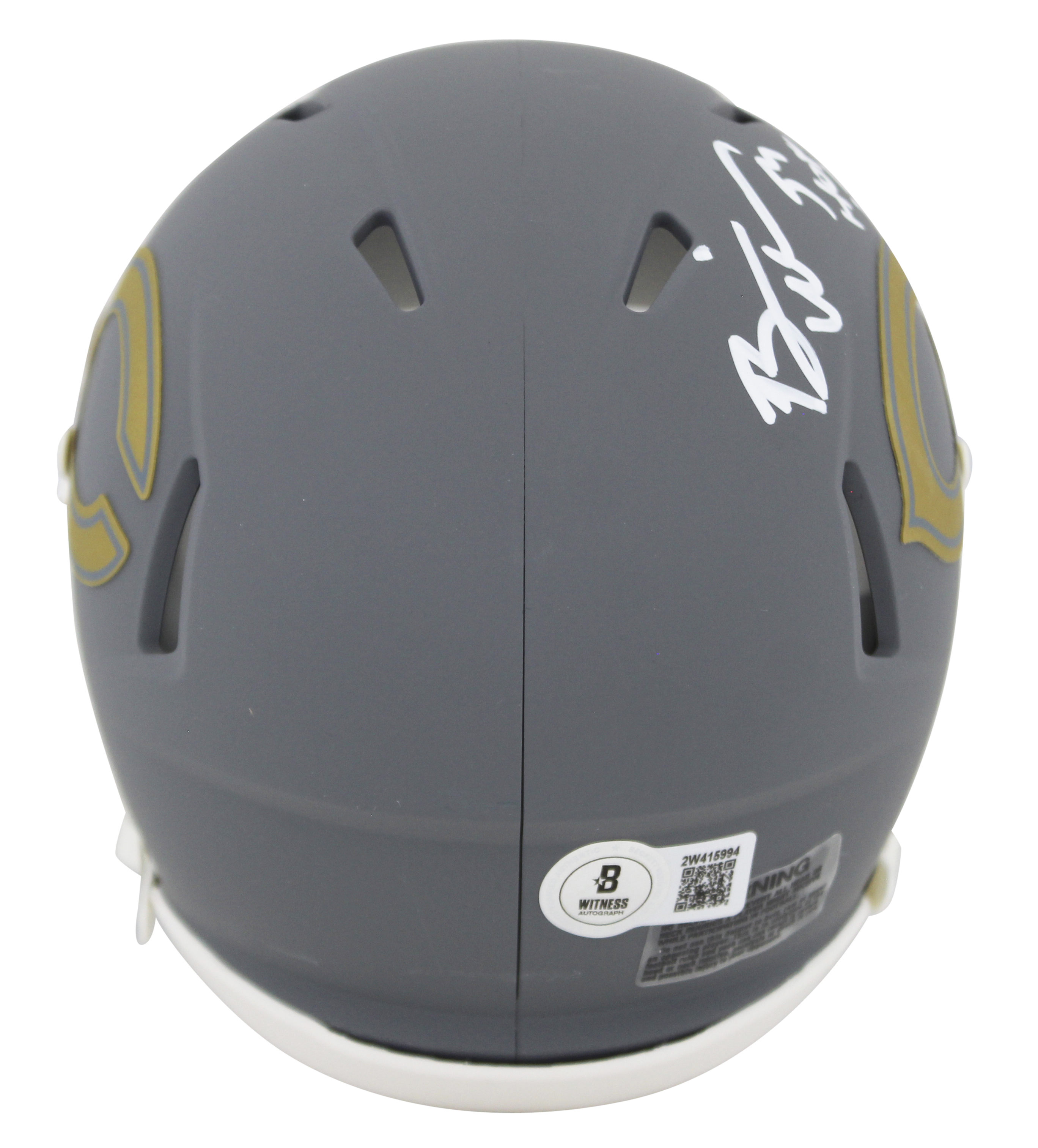 This Autographed Alternate Slate Speed Mini Helmet W/ Uv Mirrored Back Acrylic Display Case with the inscription of "HOF 18" has been Personally Signed by Brian Urlacher of the Chicago Bears. This item is 100% Authentic to include a hologram by Beckett Authentication Services. This item will come with an affixed Beckett Authentication Services (BAS) authentication sticker, which includes a scannable QR code to verify authenticity. Please note that Beckett no longer provides serial-numbered COA cards, and the attached BAS sticker will serve as the complete authentication for this item. This is a BAS Witnessed Protection Program item which means a Beckett Authentication Service representative was present when this item was being signed. We conducted an autograph signing with Brian Urlacher where multiples of the same item were signed. While the photographs are representative of this item, the size, placement and strength of the signature may vary. Each item is hand signed, therefore, each autograph is unique. This item can be verified through BAS Witnessed.