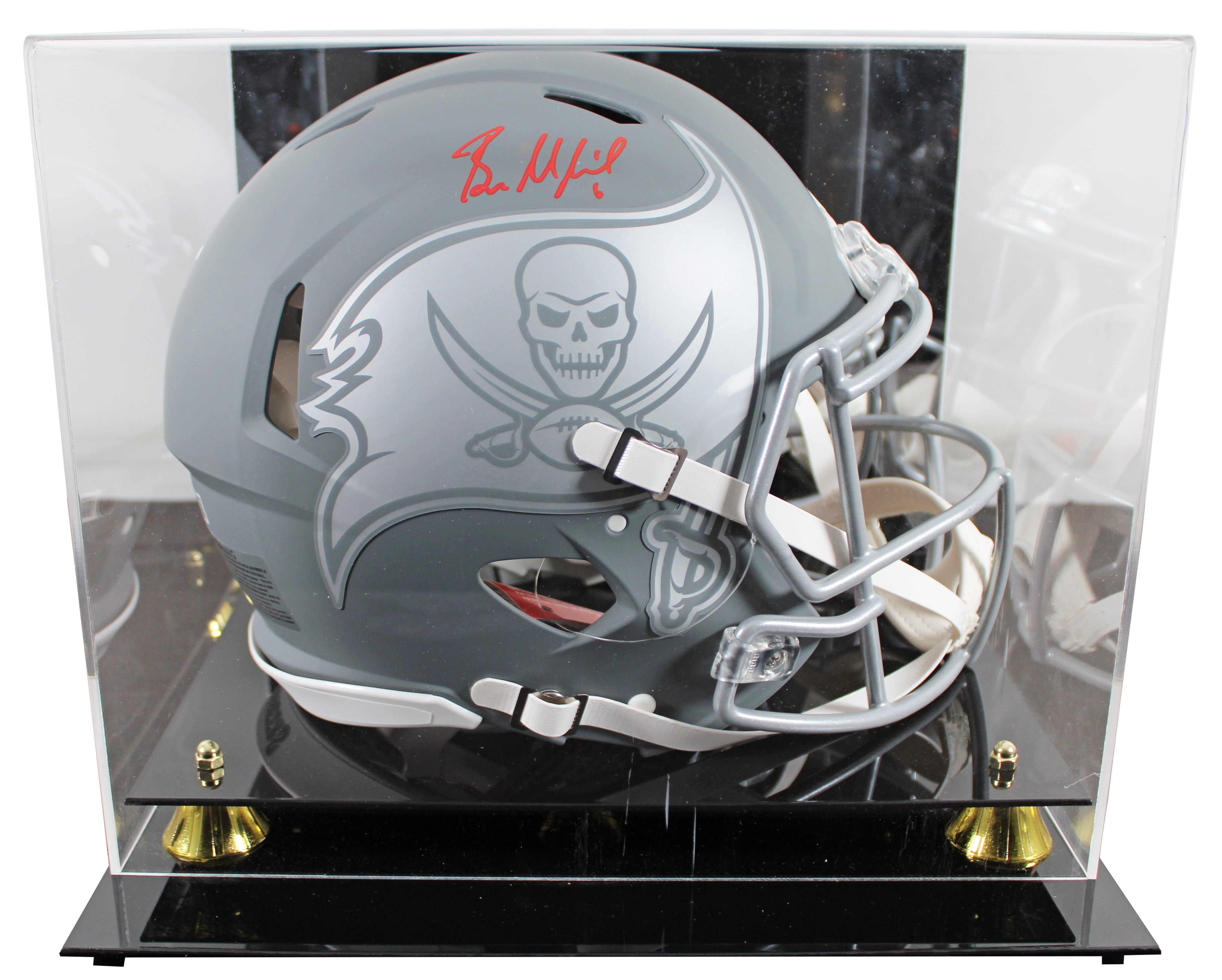 This Autographed Alternate Slate Riddell Full Size Speed Proline Helmet W/ Uv Mirrored Back Acrylic Display Case has been Personally Signed by Baker Mayfield of the Tampa Bay Buccaneers. This item is 100% Authentic to include a hologram by Beckett Authentication Services. This item will come with an affixed Beckett Authentication Services (BAS) authentication sticker, which includes a scannable QR code to verify authenticity. Please note that Beckett no longer provides serial-numbered COA cards, and the attached BAS sticker will serve as the complete authentication for this item. This is a BAS Witnessed Protection Program item which means a Beckett Authentication Service representative was present when this item was being signed. We conducted an autograph signing with Baker Mayfield where multiples of the same item were signed. While the photographs are representative of this item, the size, placement and strength of the signature may vary. Each item is hand signed, therefore, each autograph is unique. This item can be verified through BAS Witnessed.