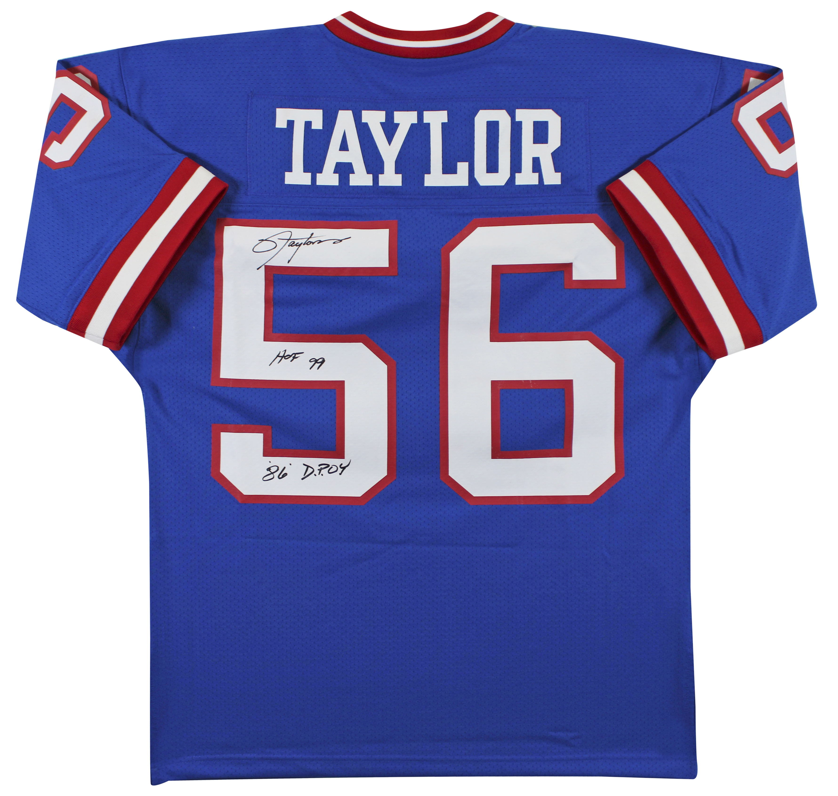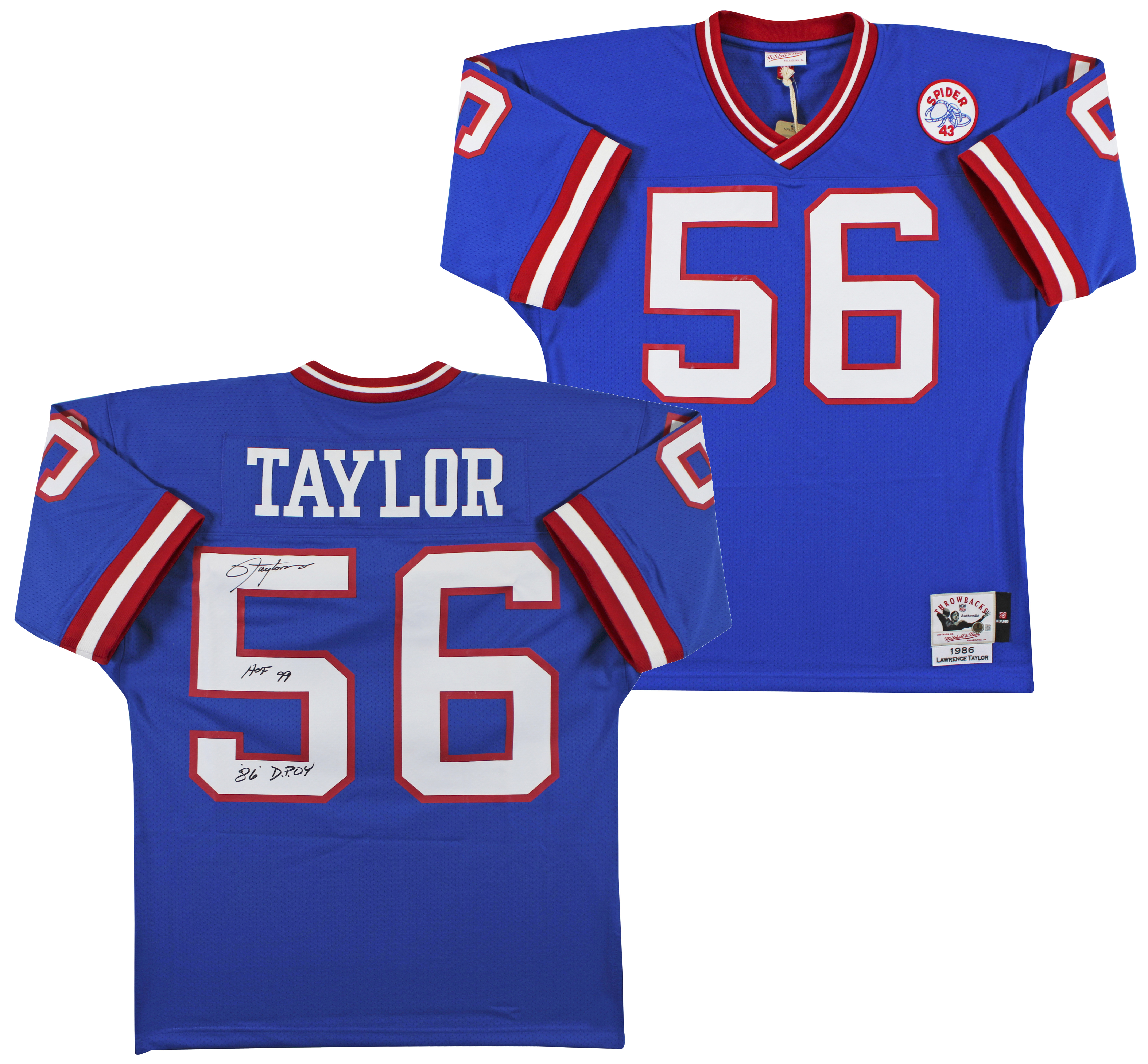 This Autographed 1986 Blue Mitchell & Ness Throwback Authentic Jersey with the inscription of "HOF 99, 86 DPOY" has been Personally Signed by Lawrence Taylor of the New York Giants. This item is 100% Authentic to include a hologram by Beckett Authentication Services. This item will come with an affixed Beckett Authentication Services (BAS) authentication sticker, which includes a scannable QR code to verify authenticity. Please note that Beckett no longer provides serial-numbered COA cards, and the attached BAS sticker will serve as the complete authentication for this item. We have multiples of this same item. While the photographs are representative of this item, the size, placement and strength of the signature may vary. Each item is hand signed, therefore, each autograph is unique. This is a X-Large sized Jersey.