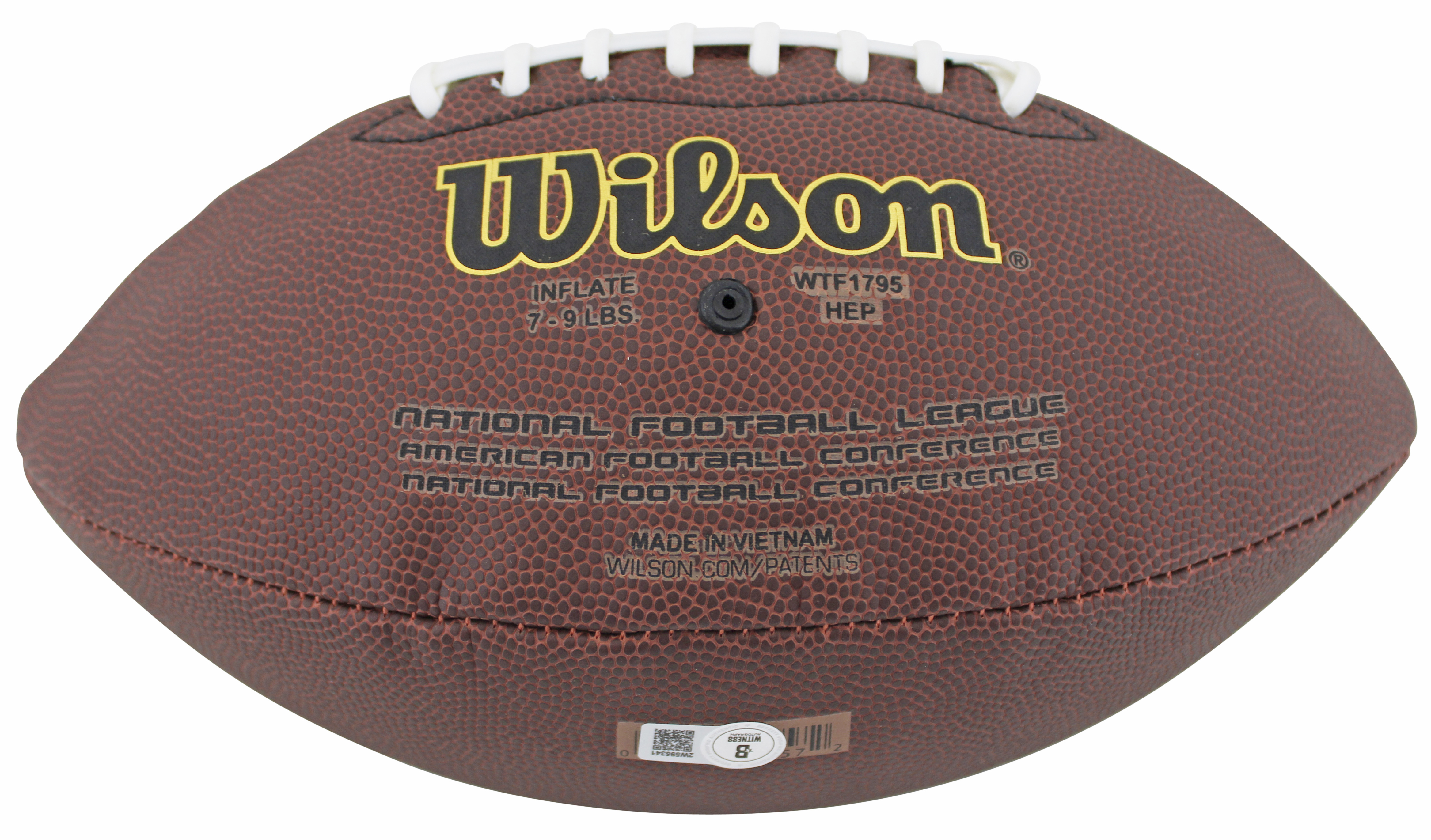 This Autographed Wilson Super Grip Nfl Football has been Personally Signed by Christian Gonzalez of the New England Patriots. This item is 100% Authentic to include a hologram by Beckett Authentication Services. This item will come with an affixed Beckett Authentication Services (BAS) authentication sticker, which includes a scannable QR code to verify authenticity. Please note that Beckett no longer provides serial-numbered COA cards, and the attached BAS sticker will serve as the complete authentication for this item. This is a BAS Witnessed Protection Program item which means a Beckett Authentication Service representative was present when this item was being signed. We conducted an autograph signing with Christian Gonzalez where multiples of the same item were signed. While the photographs are representative of this item, the size, placement and strength of the signature may vary. Each item is hand signed, therefore, each autograph is unique. This item can be verified through BAS Witnessed.