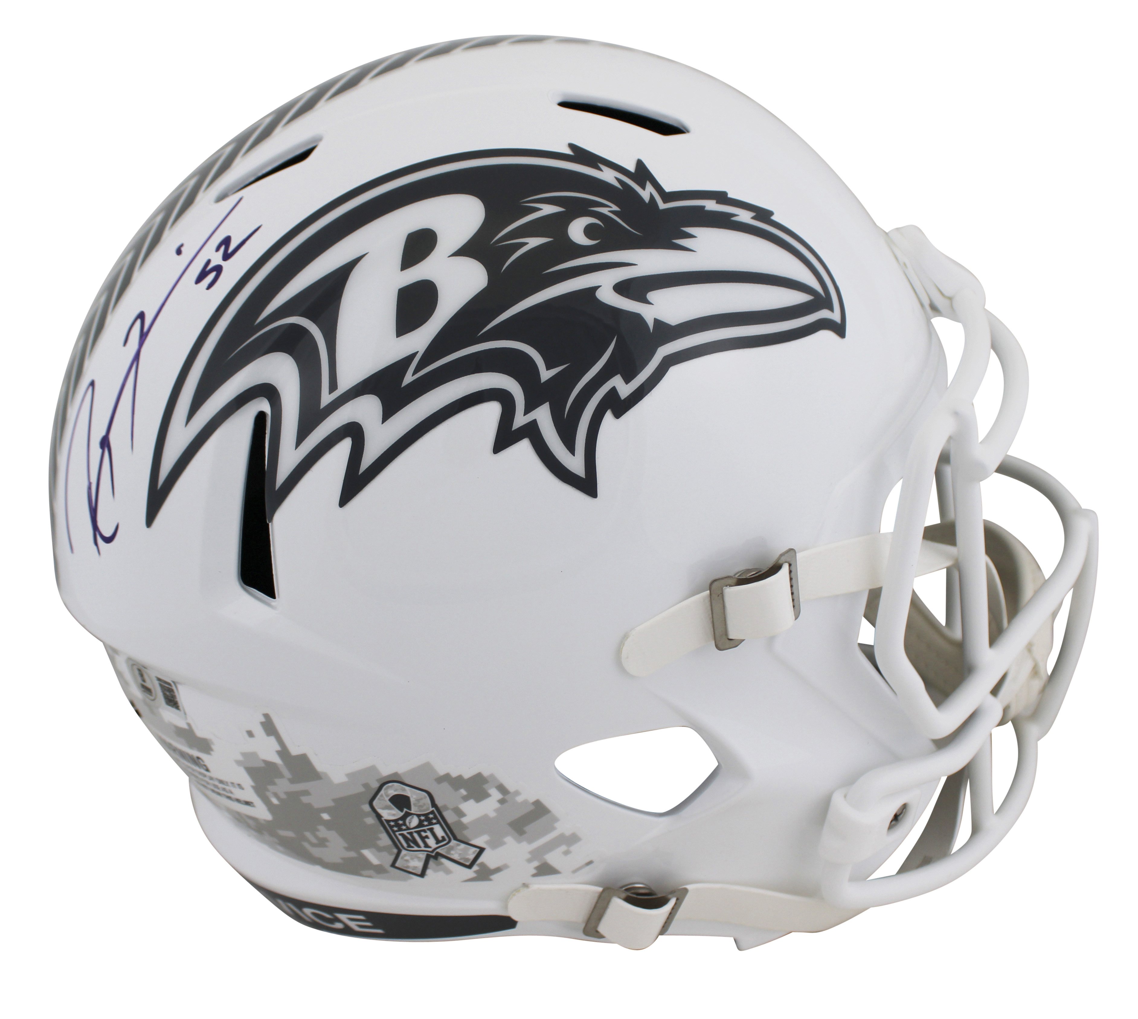 This Autographed Alternate 2024 Salute To Service III Riddell Full Size Speed Rep Helmet W/ Uv Mirrored Back Acrylic Display Case has been Personally Signed by Ray Lewis of the Baltimore Ravens. This item is 100% Authentic to include a hologram by Beckett Authentication Services. This item will come with an affixed Beckett Authentication Services (BAS) authentication sticker, which includes a scannable QR code to verify authenticity. Please note that Beckett no longer provides serial-numbered COA cards, and the attached BAS sticker will serve as the complete authentication for this item. This is a BAS Witnessed Protection Program item which means a Beckett Authentication Service representative was present when this item was being signed. We conducted an autograph signing with Ray Lewis where multiples of the same item were signed. While the photographs are representative of this item, the size, placement and strength of the signature may vary. Each item is hand signed, therefore, each autograph is unique. This item can be verified through BAS Witnessed.
