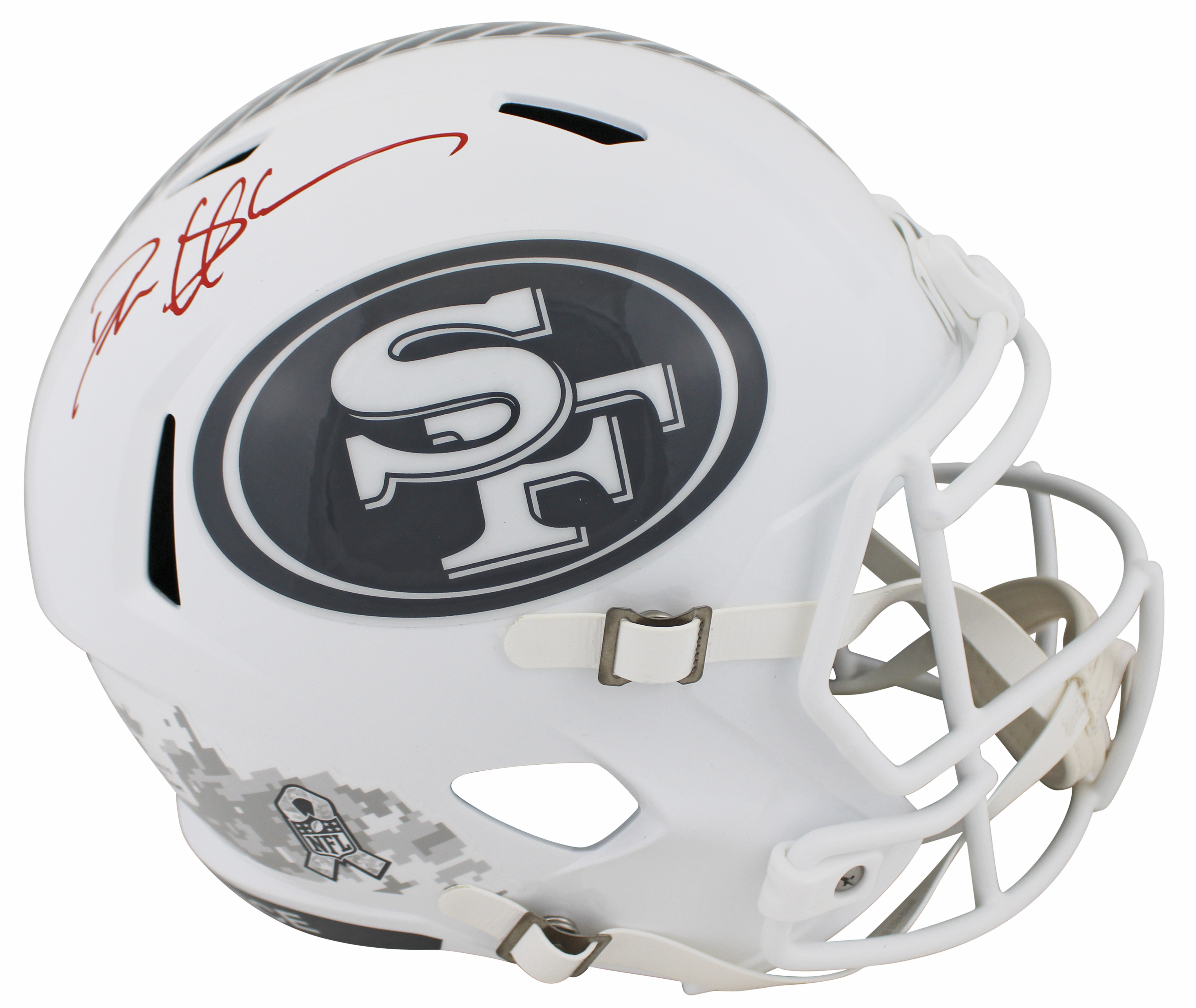 This Autographed Alternate 2024 Salute To Service III Riddell Full Size Speed Rep Helmet W/ Uv Mirrored Back Acrylic Display Case has been Personally Signed by Deion Sanders of the San Francisco 49ers. This item is 100% Authentic to include a hologram by Beckett Authentication Services. This item will come with an affixed Beckett Authentication Services (BAS) authentication sticker, which includes a scannable QR code to verify authenticity. Please note that Beckett no longer provides serial-numbered COA cards, and the attached BAS sticker will serve as the complete authentication for this item. This is a BAS Witnessed Protection Program item which means a Beckett Authentication Service representative was present when this item was being signed. We conducted an autograph signing with Deion Sanders where multiples of the same item were signed. While the photographs are representative of this item, the size, placement and strength of the signature may vary. Each item is hand signed, therefore, each autograph is unique. This item can be verified through BAS Witnessed.