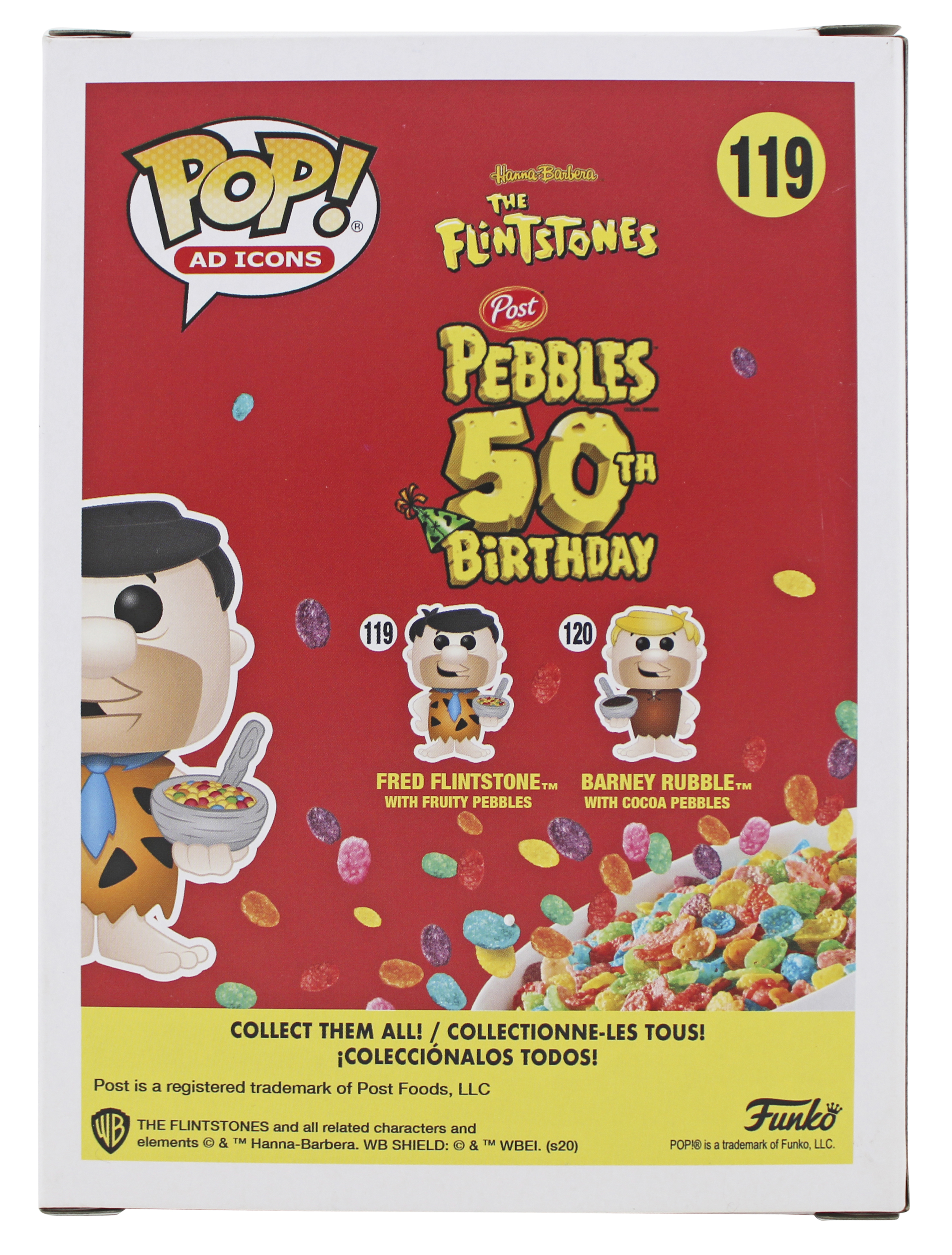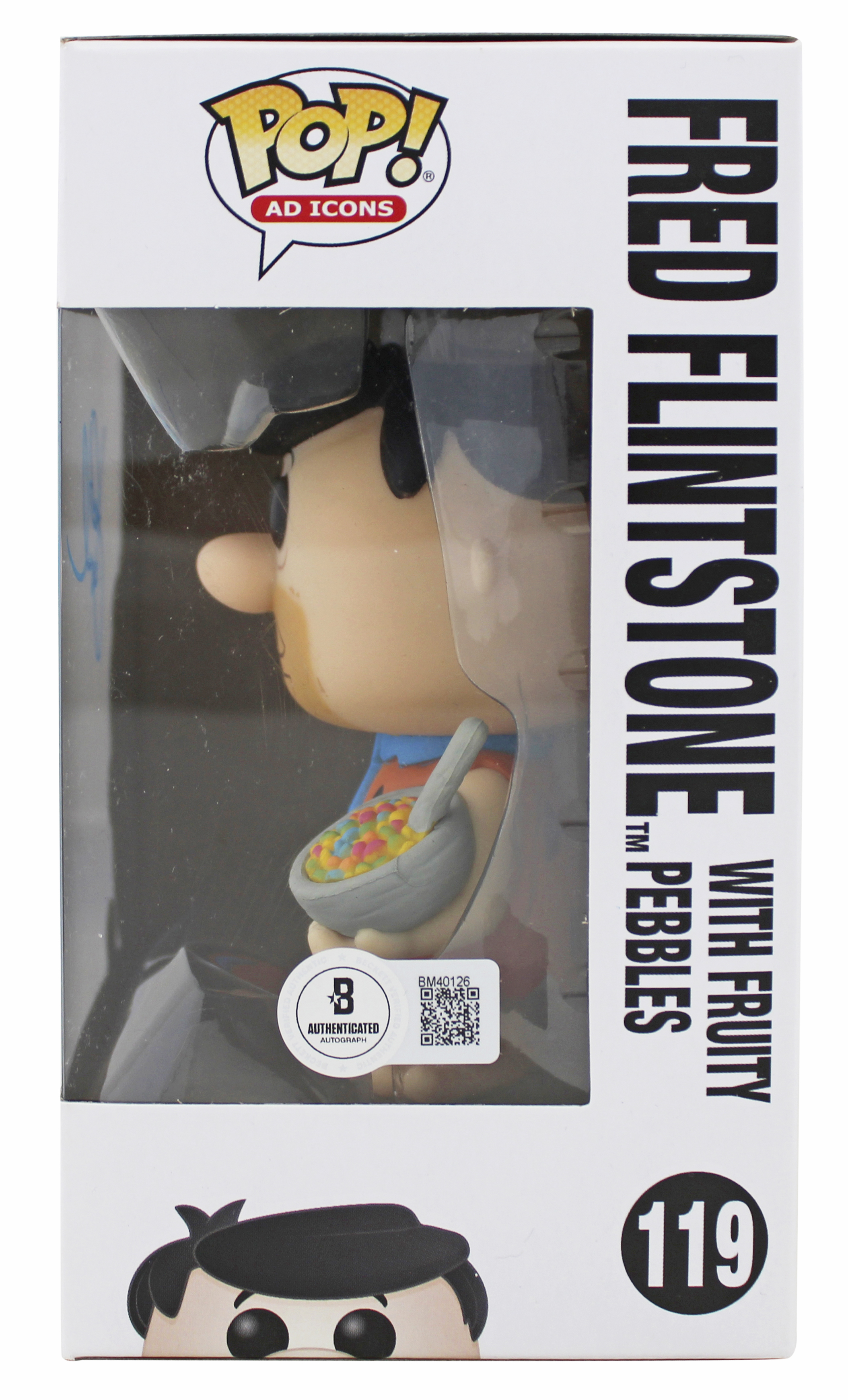 This Autographed w/ Blue Signature The Flintstones Fruity Pebbles Fred Flintstone #119 Funko Pop Vinyl Figure has been Personally Signed by John Goodman of The Flintstones. This item is 100% Authentic to include a hologram by Beckett Authentication Services. This item will come with an affixed Beckett Authentication Services (BAS) authentication sticker, which includes a scannable QR code to verify authenticity. Please note that Beckett no longer provides serial-numbered COA cards, and the attached BAS sticker will serve as the complete authentication for this item. We have multiples of this same item. While the photographs are representative of this item, the size, placement and strength of the signature may vary. Each item is hand signed, therefore, each autograph is unique. This item will ship in a Pop! Protector, please refer to the photos for condition of the item prior to purchase, these are in good condition but would not be considered mint.