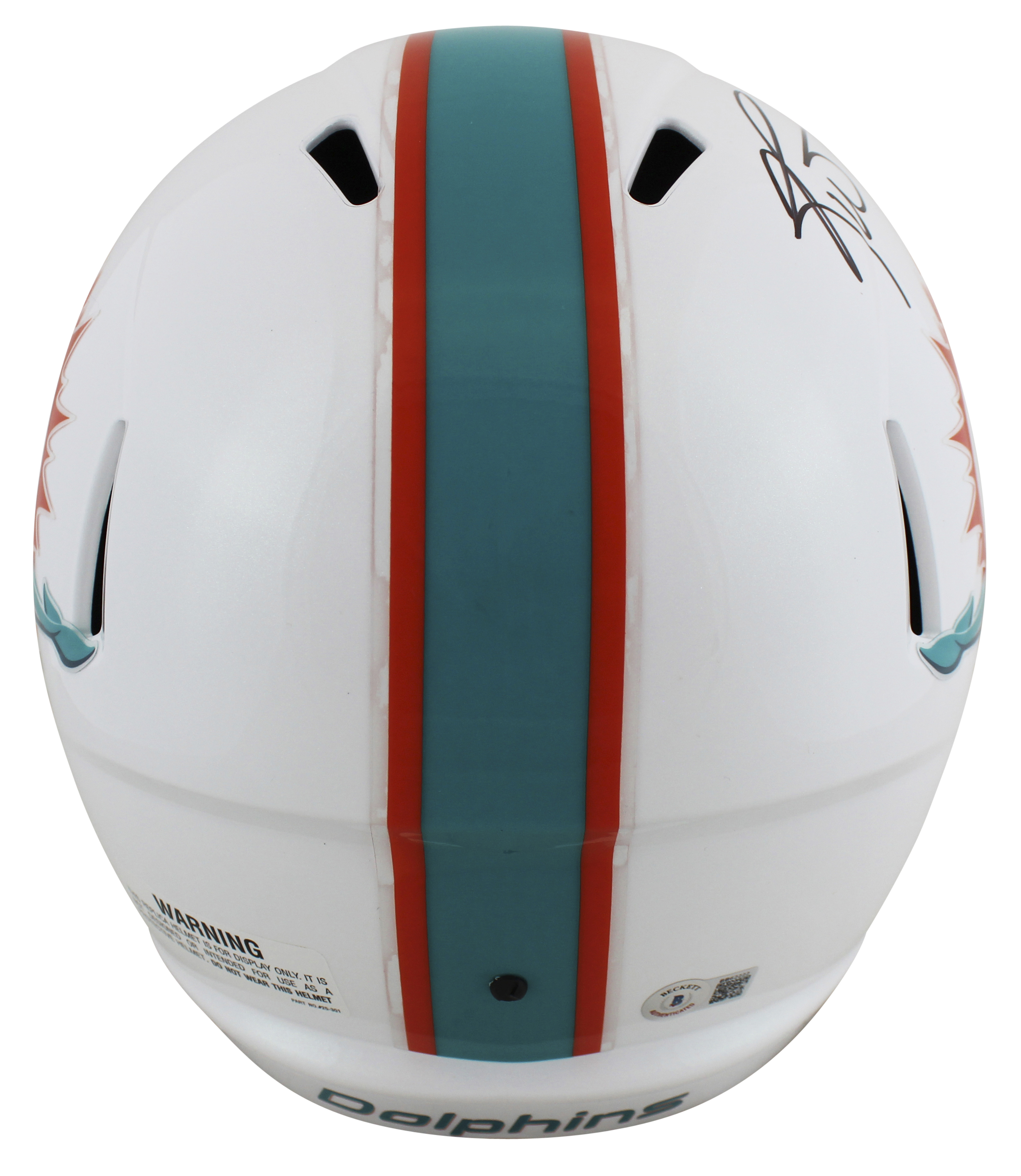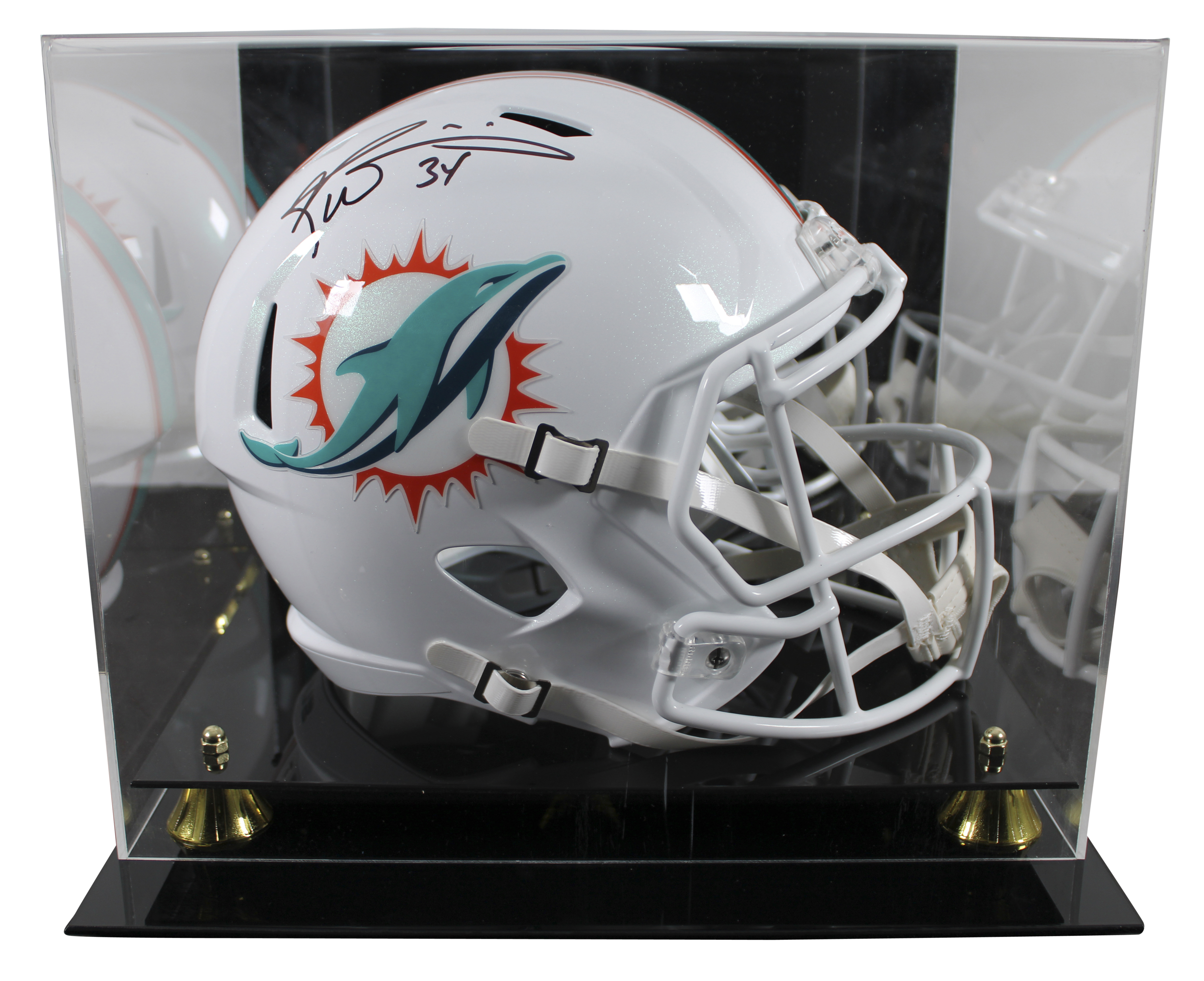 This Autographed Riddell Full Size Speed Rep Helmet W/ Uv Mirrored Back Acrylic Display Case has been Personally Signed by Ricky Williams of the Miami Dolphins. This item is 100% Authentic to include a hologram by Beckett Authentication Services. This item will come with an affixed Beckett Authentication Services (BAS) authentication sticker, which includes a scannable QR code to verify authenticity. Please note that Beckett no longer provides serial-numbered COA cards, and the attached BAS sticker will serve as the complete authentication for this item. This is a BAS Witnessed Protection Program item which means a Beckett Authentication Service representative was present when this item was being signed. We conducted an autograph signing with Ricky Williams where multiples of the same item were signed. While the photographs are representative of this item, the size, placement and strength of the signature may vary. Each item is hand signed, therefore, each autograph is unique. This item can be verified through BAS Witnessed.