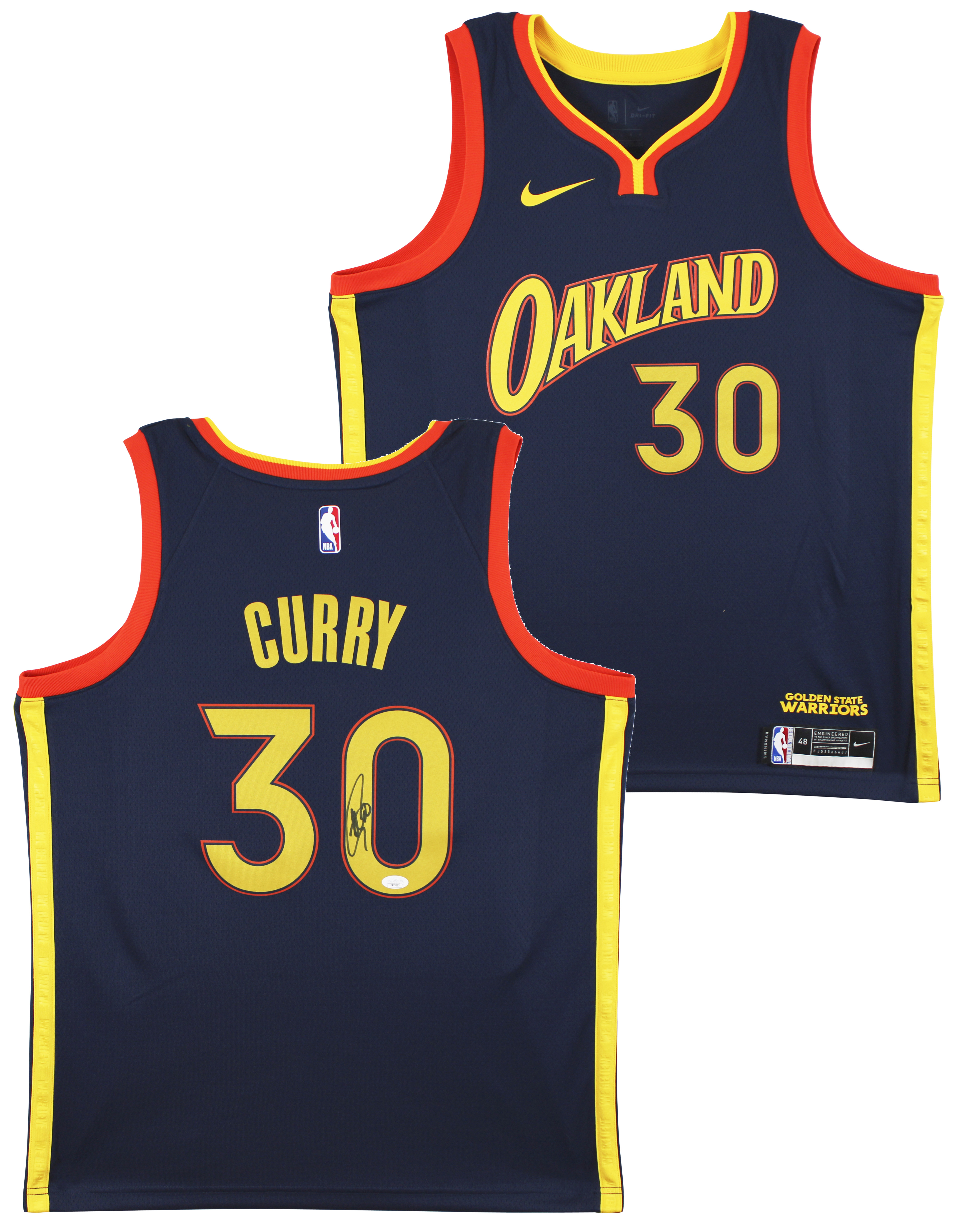 This Autographed Navy Blue Nike Swingman Jersey has been Personally Signed by Stephen Curry of the Golden State Warriors. This item is 100% Authentic to include a Certificate of Authenticity (COA) / hologram by JSA. We have multiples of this same item. While the photographs are representative of this item, the size, placement and strength of the signature may vary. Each item is hand signed, therefore, each autograph is unique. Multiple sizes available. Reach out for availability.