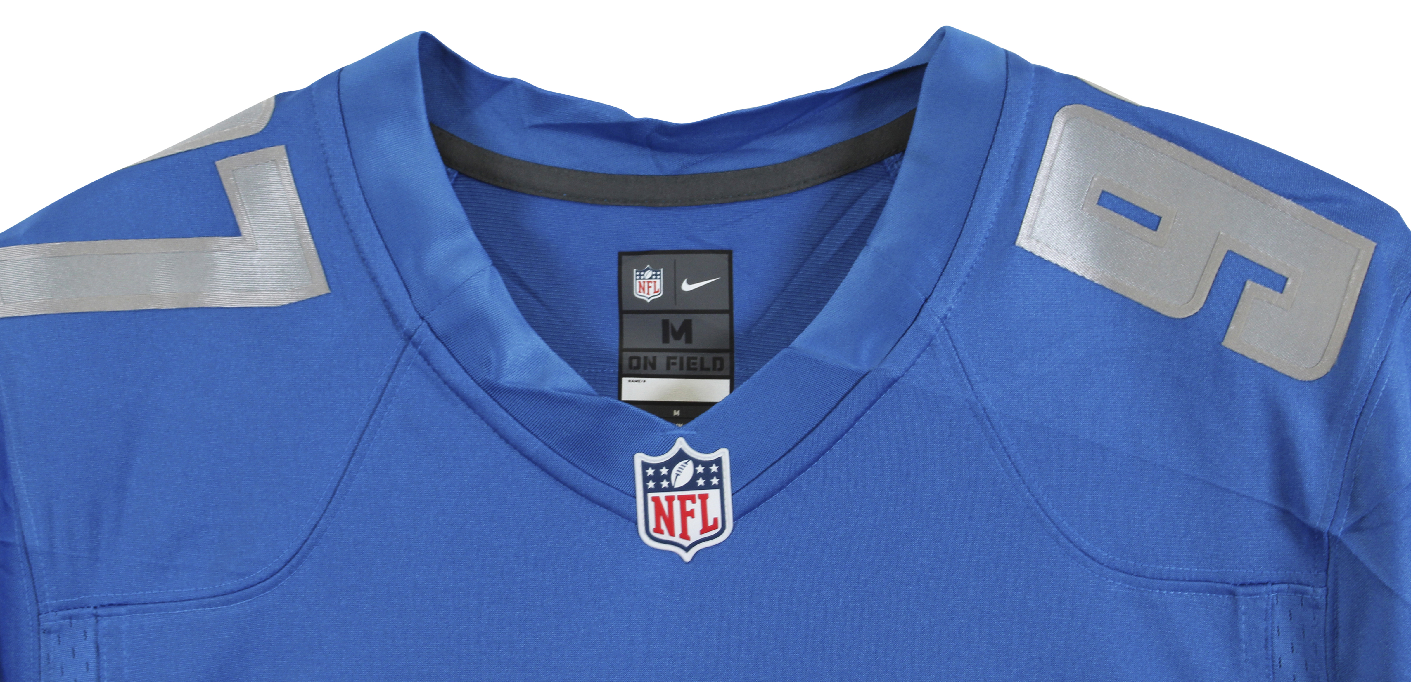 This Autographed Blue Nike Limited Jersey has been Personally Signed by Aidan Hutchinson of the Detroit Lions. This item is 100% Authentic to include a hologram by Beckett Authentication Services. This item will come with an affixed Beckett Authentication Services (BAS) authentication sticker, which includes a scannable QR code to verify authenticity. Please note that Beckett no longer provides serial-numbered COA cards, and the attached BAS sticker will serve as the complete authentication for this item. This is a BAS Witnessed Protection Program item which means a Beckett Authentication Service representative was present when this item was being signed. We conducted an autograph signing with Aidan Hutchinson where multiples of the same item were signed. While the photographs are representative of this item, the size, placement and strength of the signature may vary. Each item is hand signed, therefore, each autograph is unique. This item can be verified through BAS Witnessed. Multiple sizes available. Reach out for availability.