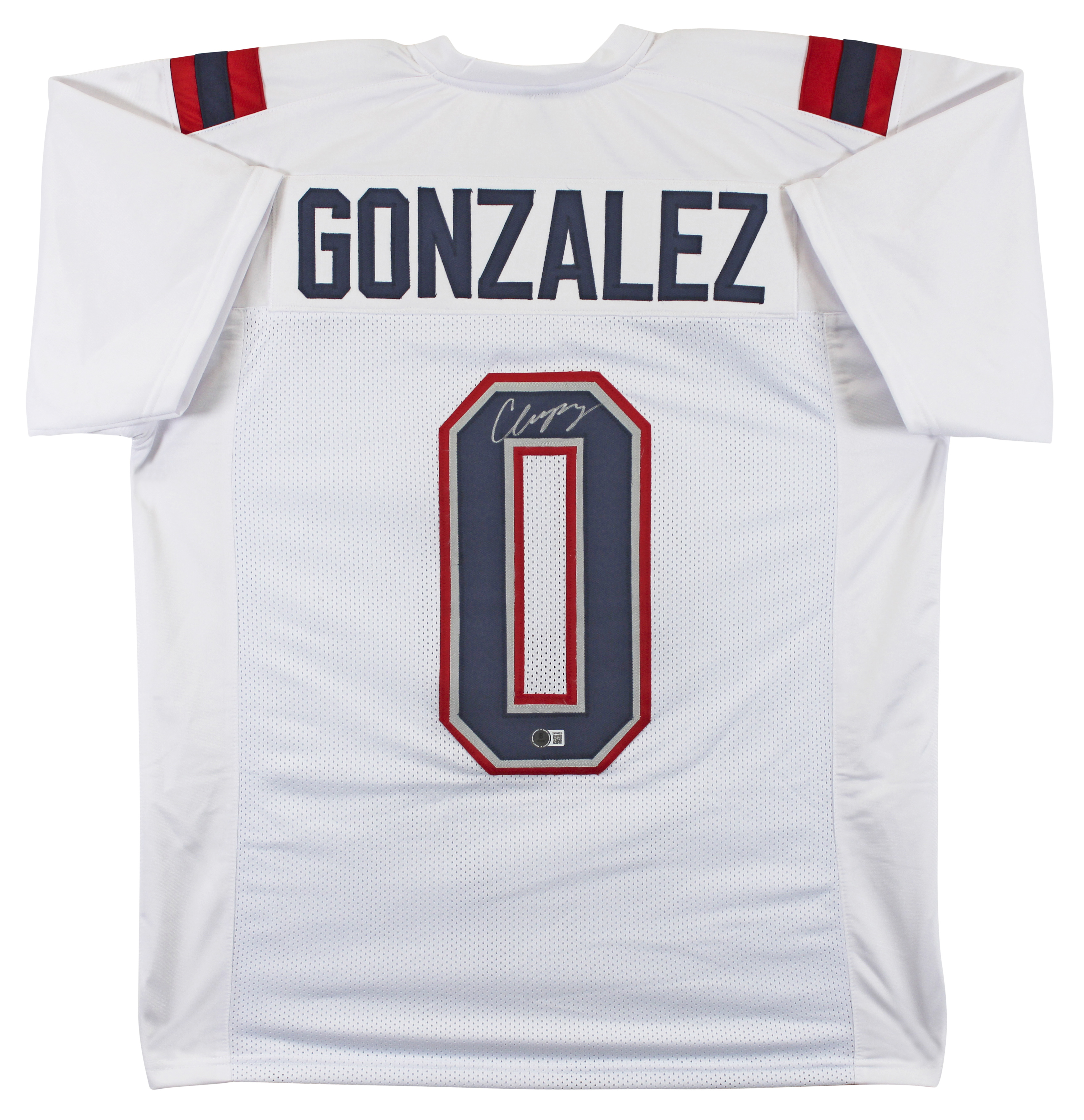 This Autographed White Pro Style Jersey has been Personally Signed by Christian Gonzalez of the New England Patriots. This item is 100% Authentic to include a hologram by Beckett Authentication Services. This item will come with an affixed Beckett Authentication Services (BAS) authentication sticker, which includes a scannable QR code to verify authenticity. Please note that Beckett no longer provides serial-numbered COA cards, and the attached BAS sticker will serve as the complete authentication for this item. This is a BAS Witnessed Protection Program item which means a Beckett Authentication Service representative was present when this item was being signed. We conducted an autograph signing with Christian Gonzalez where multiples of the same item were signed. While the photographs are representative of this item, the size, placement and strength of the signature may vary. Each item is hand signed, therefore, each autograph is unique. This item can be verified through BAS Witnessed. This is a X-Large sized, non-branded, custom-stitched Jersey.