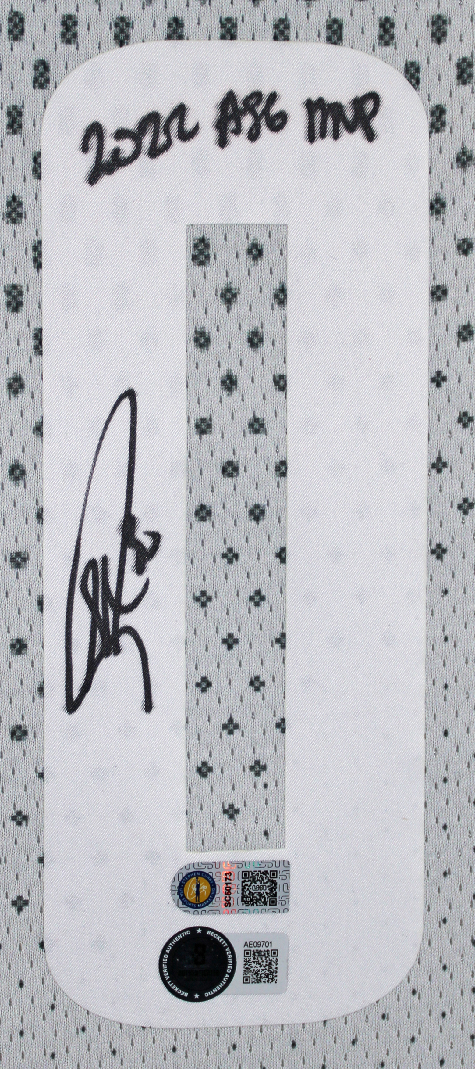 This Autographed White 75th Anniversary All Star Game Nike Framed Jersey with the inscription of "2022 ASG MVP" has been Personally Signed by Stephen Curry of the Golden State Warriors. This item is 100% Authentic to include a hologram by Beckett Authentication Services. This item will come with an affixed Beckett Authentication Services (BAS) authentication sticker, which includes a scannable QR code to verify authenticity. Please note that Beckett no longer provides serial-numbered COA cards, and the attached BAS sticker will serve as the complete authentication for this item. We have multiples of this same item. While the photographs are representative of this item, the size, placement and strength of the signature may vary. Each item is hand signed, therefore, each autograph is unique. This item has been professionally framed to overall dimensions of approximately 32 x 37 inches. Multiple sizes available. Reach out for availability. This jersey will be framed to order, it will take 3-4 days from purchase date for it to ship.