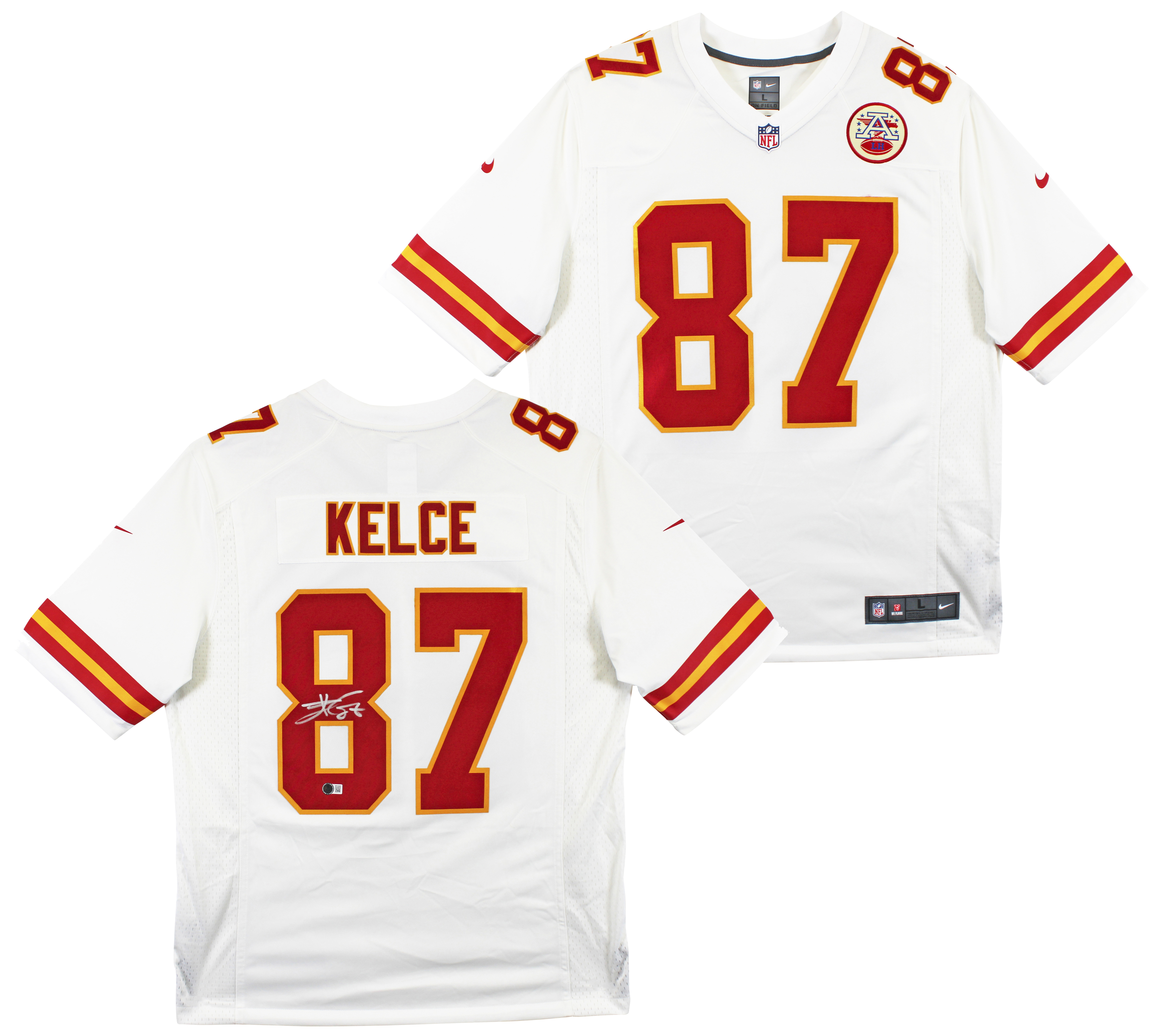 This Autographed White Nike Limited Jersey has been Personally Signed by Travis Kelce of the Kansas City Chiefs. This item is 100% Authentic to include a hologram by Beckett Authentication Services. This item will come with an affixed Beckett Authentication Services (BAS) authentication sticker, which includes a scannable QR code to verify authenticity. Please note that Beckett no longer provides serial-numbered COA cards, and the attached BAS sticker will serve as the complete authentication for this item. This is a BAS Witnessed Protection Program item which means a Beckett Authentication Service representative was present when this item was being signed. We conducted an autograph signing with Travis Kelce where multiples of the same item were signed. While the photographs are representative of this item, the size, placement and strength of the signature may vary. Each item is hand signed, therefore, each autograph is unique. This item can be verified through BAS Witnessed. Multiple sizes available. Reach out for availability.