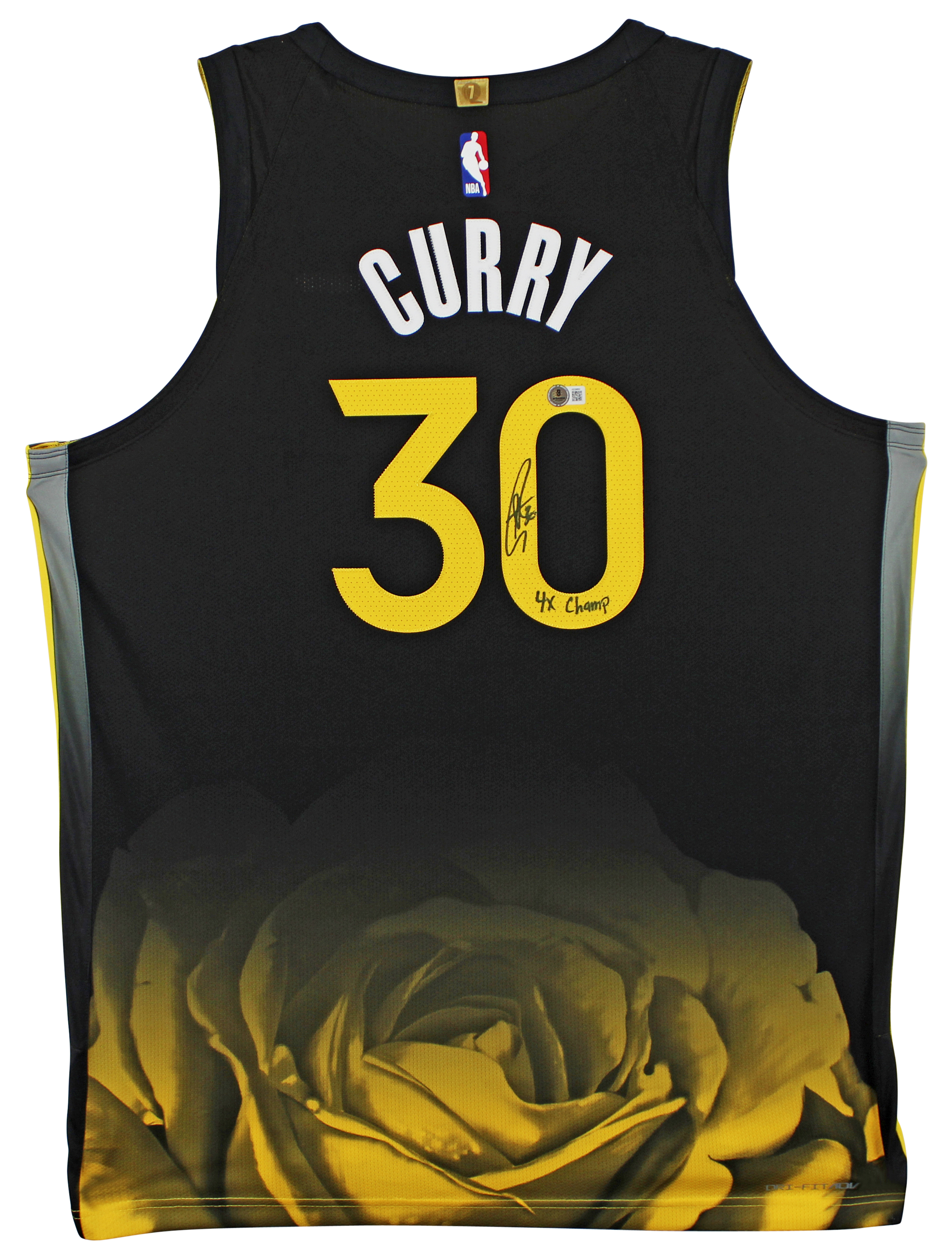 This Autographed Black Nike Rose City Edition Authentic Jersey with the inscription of "4x Champ" has been Personally Signed by Stephen Curry of the Golden State Warriors. This item is 100% Authentic to include a hologram by Beckett Authentication Services. This item will come with an affixed Beckett Authentication Services (BAS) authentication sticker, which includes a scannable QR code to verify authenticity. Please note that Beckett no longer provides serial-numbered COA cards, and the attached BAS sticker will serve as the complete authentication for this item. We have multiples of this same item. While the photographs are representative of this item, the size, placement and strength of the signature may vary. Each item is hand signed, therefore, each autograph is unique. Multiple sizes available. Reach out for availability.