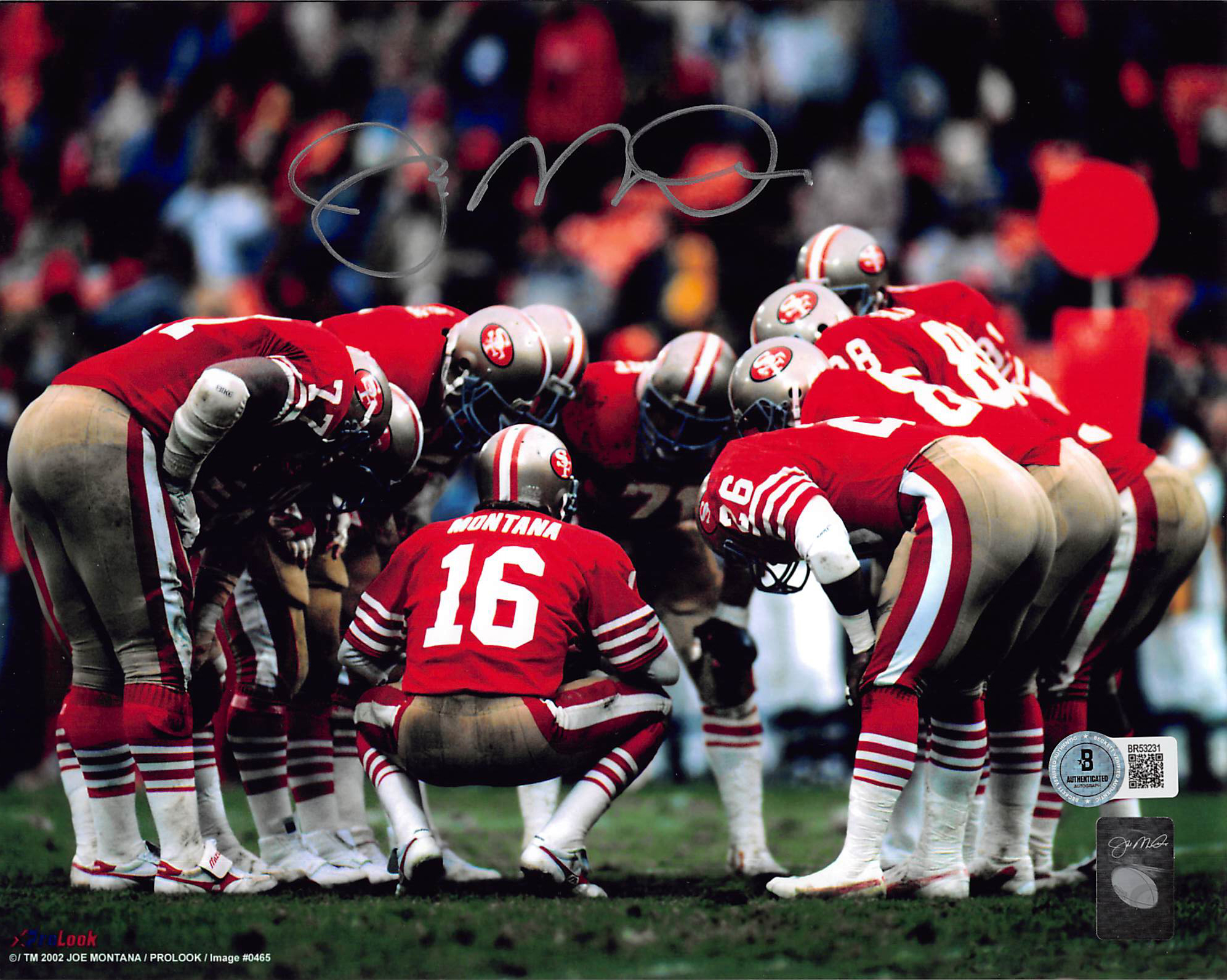 This Autographed Horizontal Huddle 8x10 Photo has been Personally Signed by Joe Montana of the San Francisco 49ers. This item is 100% Authentic to include a Certificate of Authenticity (COA) / hologram by Beckett Authentication Services. We have multiples of this same item. While the photographs are representative of this item, the size, placement and strength of the signature may vary. Each item is hand signed, therefore, each autograph is unique.