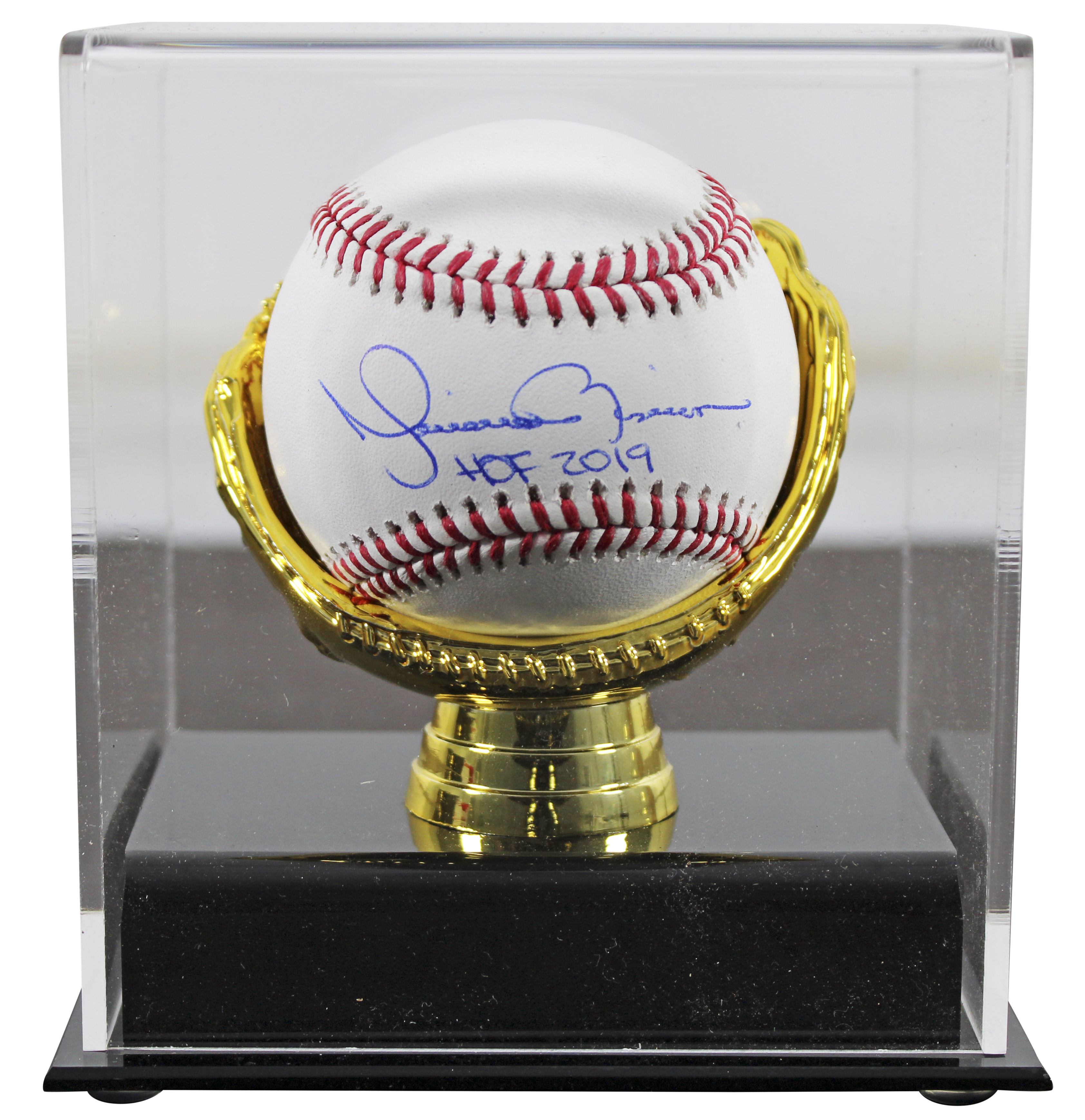 This Autographed OML Baseball Baseball Gold Glove Acrylic Display Case with the inscription of "HOF 2019" has been Personally Signed by Mariano Rivera of the New York Yankees. This item is 100% Authentic to include a hologram by Beckett Authentication Services. This item may come with the new Beckett Authentication hologram that has a scannable QR code rather than the traditional COA. If you would like to have a COA, you are welcome to reach out to Beckett for a printed certification once you receive your item. This is a BAS Witnessed Protection Program item which means a Beckett Authentication Service representative was present when this item was being signed. We conducted an autograph signing with Mariano Rivera where multiples of the same item were signed. While the photographs are representative of this item, the size, placement and strength of the signature may vary. Each item is hand signed, therefore, each autograph is unique. This item can be verified through BAS Witnessed.