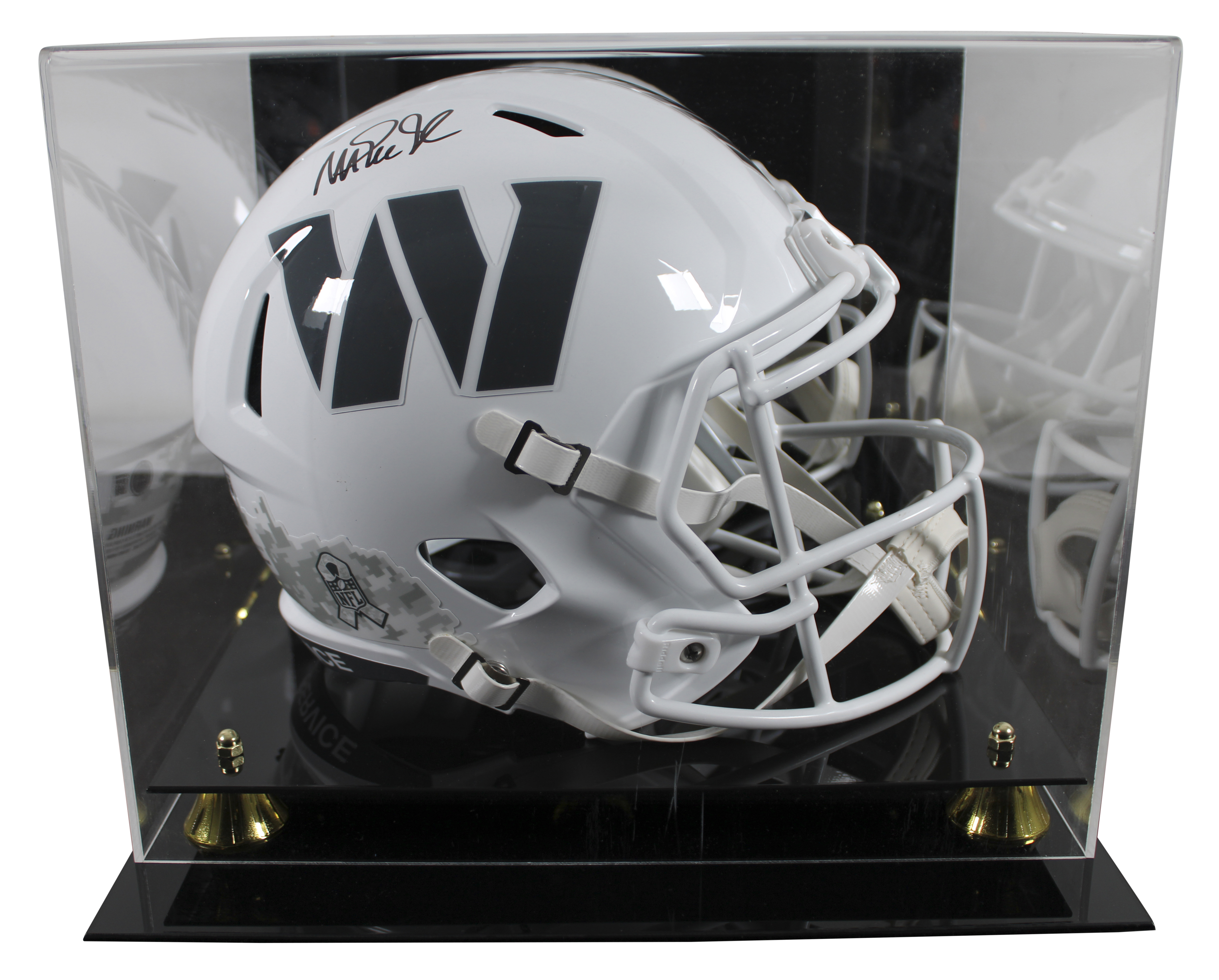 This Autographed Alternate 2024 Salute To Service III Riddell Full Size Speed Rep Helmet W/ Uv Mirrored Back Acrylic Display Case has been Personally Signed by Magic Johnson of the Washington Commanders. This item is 100% Authentic to include a hologram by Beckett Authentication Services. This item will come with an affixed Beckett Authentication Services (BAS) authentication sticker, which includes a scannable QR code to verify authenticity. Please note that Beckett no longer provides serial-numbered COA cards, and the attached BAS sticker will serve as the complete authentication for this item. This is a BAS Witnessed Protection Program item which means a Beckett Authentication Service representative was present when this item was being signed. We conducted an autograph signing with Magic Johnson where multiples of the same item were signed. While the photographs are representative of this item, the size, placement and strength of the signature may vary. Each item is hand signed, therefore, each autograph is unique. This item can be verified through BAS Witnessed.