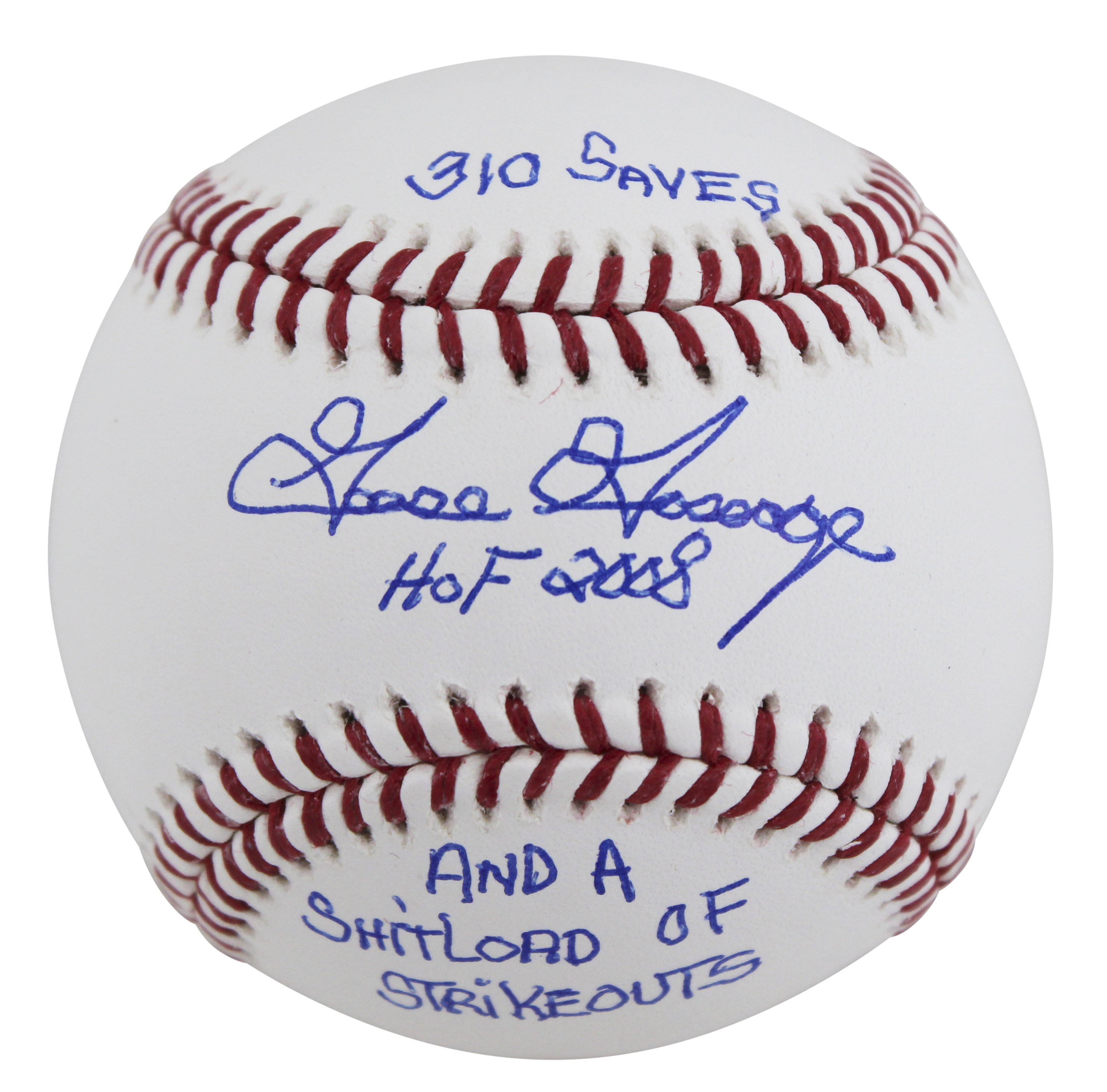 This Autographed Oml Baseball with the inscription of "HOF 2008, 310 Saves, And A S***load of Strikeouts" has been Personally Signed by Goose Gossage of the New York Yankees. This item is 100% Authentic to include a hologram by Beckett Authentication Services. This item will come with an affixed Beckett Authentication Services (BAS) authentication sticker, which includes a scannable QR code to verify authenticity. Please note that Beckett no longer provides serial-numbered COA cards, and the attached BAS sticker will serve as the complete authentication for this item. This is a BAS Witnessed Protection Program item which means a Beckett Authentication Service representative was present when this item was being signed. We conducted an autograph signing with Goose Gossage where multiples of the same item were signed. While the photographs are representative of this item, the size, placement and strength of the signature may vary. Each item is hand signed, therefore, each autograph is unique. This item can be verified through BAS Witnessed.