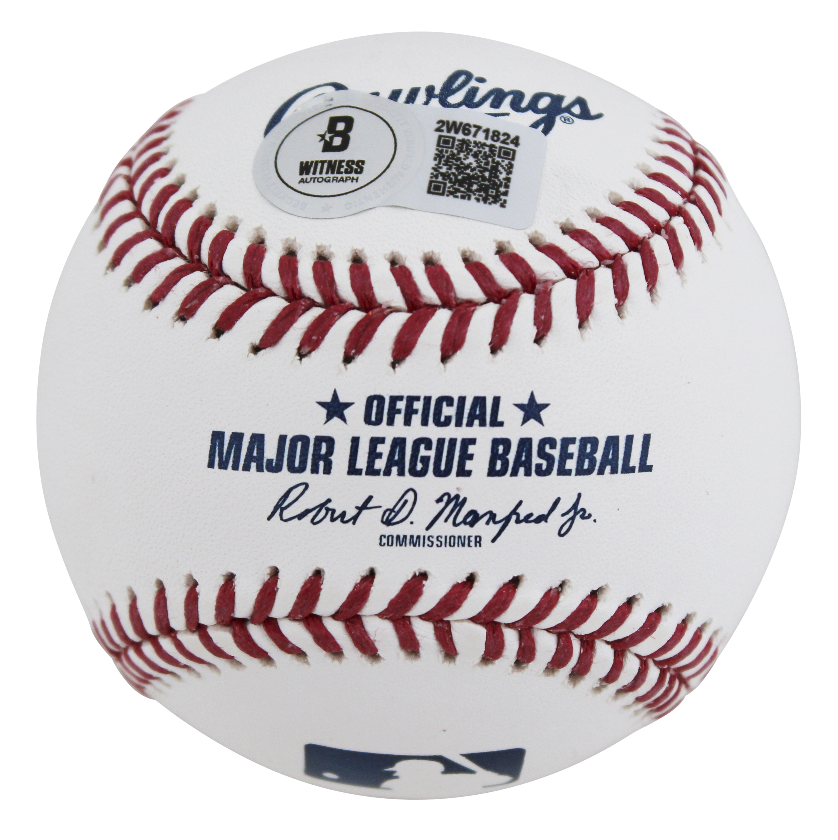 This Autographed Oml Baseball with the inscription of "Pine Tar Game F*** George Brett" has been Personally Signed by Goose Gossage of the New York Yankees. This item is 100% Authentic to include a hologram by Beckett Authentication Services. This item will come with an affixed Beckett Authentication Services (BAS) authentication sticker, which includes a scannable QR code to verify authenticity. Please note that Beckett no longer provides serial-numbered COA cards, and the attached BAS sticker will serve as the complete authentication for this item. This is a BAS Witnessed Protection Program item which means a Beckett Authentication Service representative was present when this item was being signed. We conducted an autograph signing with Goose Gossage where multiples of the same item were signed. While the photographs are representative of this item, the size, placement and strength of the signature may vary. Each item is hand signed, therefore, each autograph is unique. This item can be verified through BAS Witnessed.