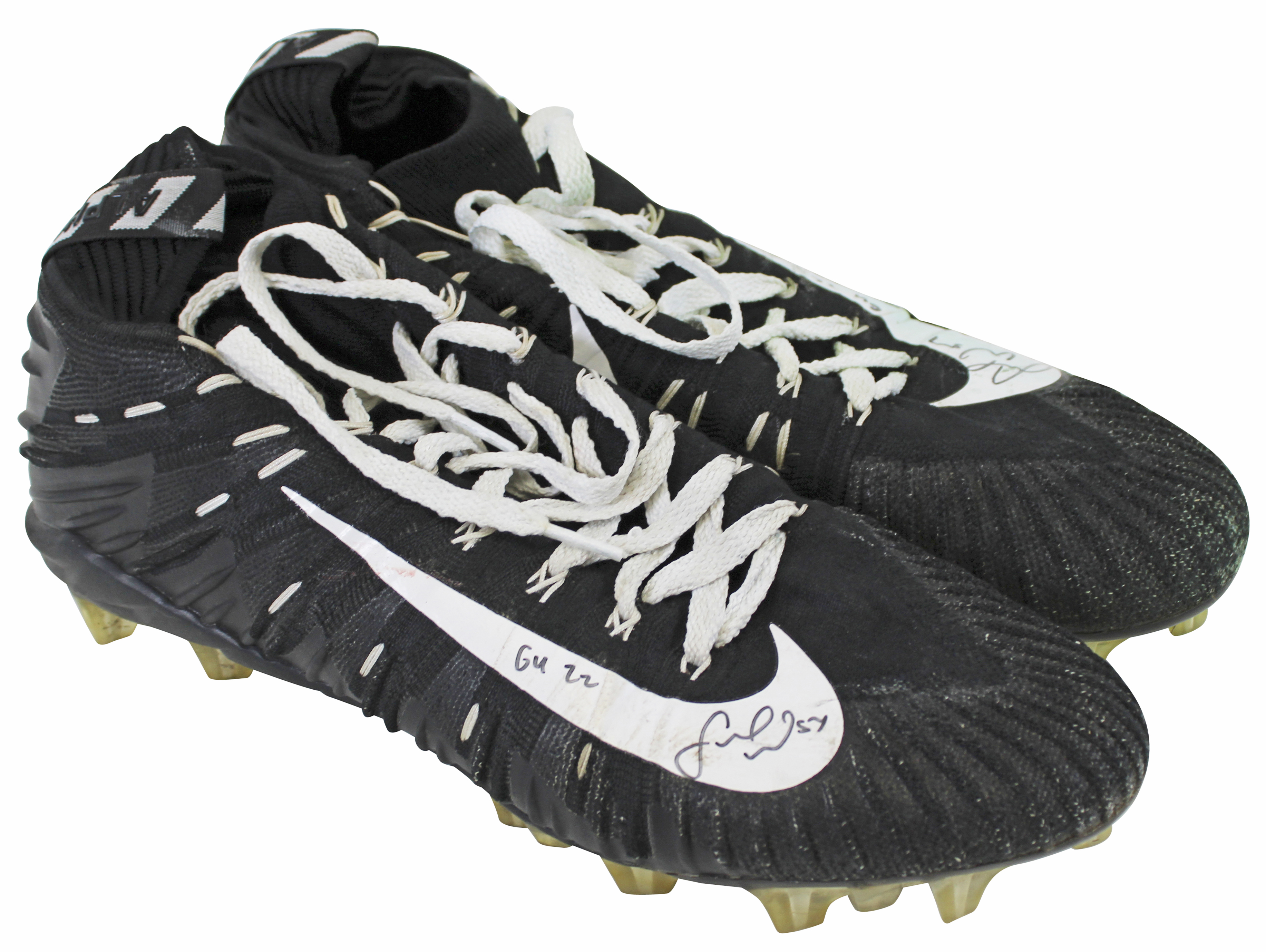 This Autographed December 4th 2022 49ers Vs Dolphins Game Worn Size 12 Nike Alpha Menace Cleats with the inscription of "GU 22" has been Personally Signed by Fred Warner of the San Francisco 49ers. This item is 100% Authentic to include a Certificate of Authenticity (COA) / hologram by Beckett Authentication Services. The authenticity can be verified on Beckett Authentication Services website.