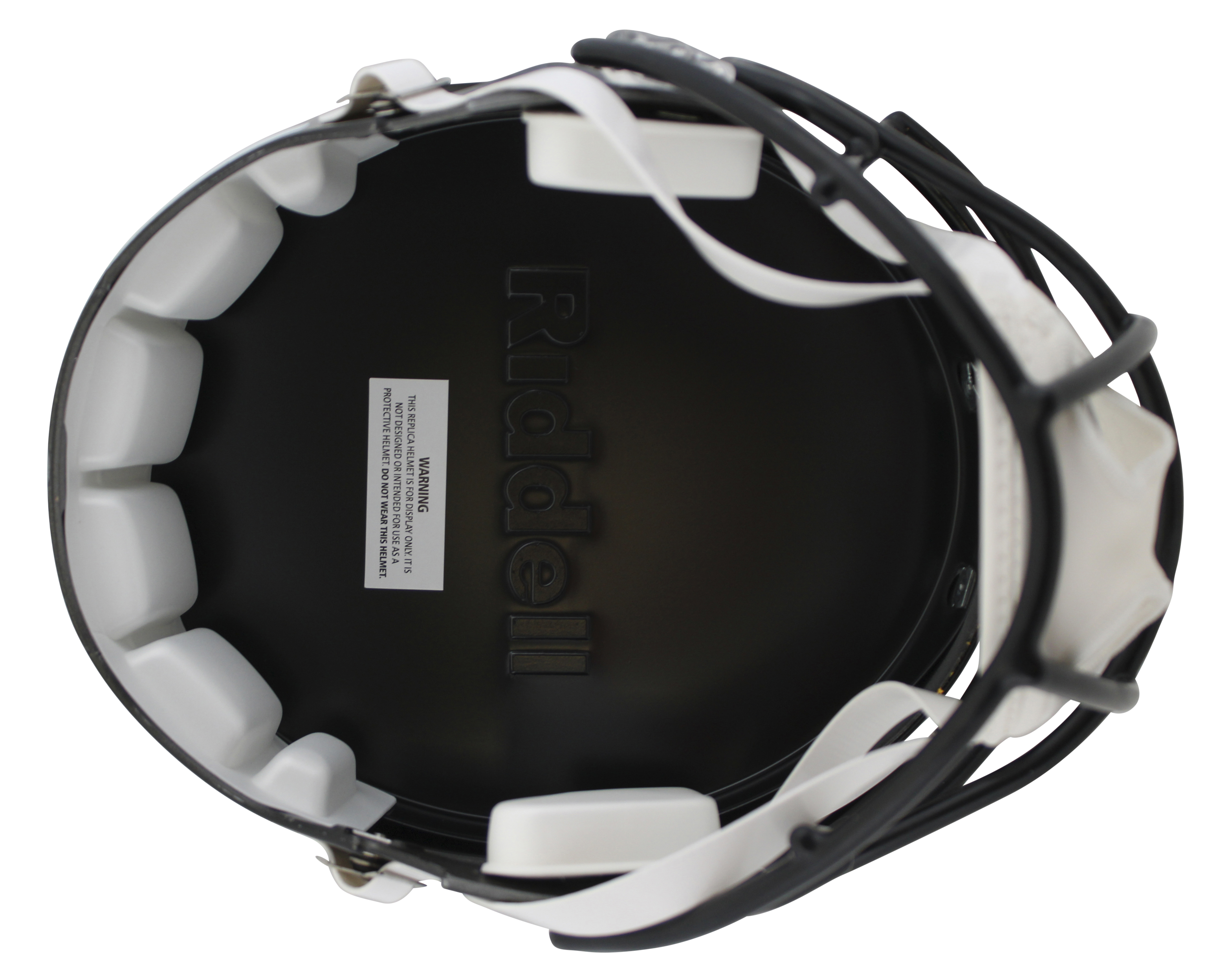 This Autographed Full Size Speed Rep Helmet has been Personally Signed by Ray Lewis & Ed Reed of the Baltimore Ravens. This item is 100% Authentic to include a hologram by Beckett Authentication Services. This item will come with the new Beckett Authentication hologram that has a scannable QR code rather than the traditional COA. If you would like to have a COA, you are welcome to reach out to Beckett for a printed certification once you receive your item. This is a BAS Witnessed Protection Program item which means a Beckett Authentication Service representative was present when this item was being signed. We conducted an autograph signing with Ray Lewis & Ed Reed where multiples of the same item were signed. While the photographs are representative of this item, the size, placement and strength of the signature may vary. Each item is hand signed, therefore, each autograph is unique. This item can be verified through BAS Witnessed.