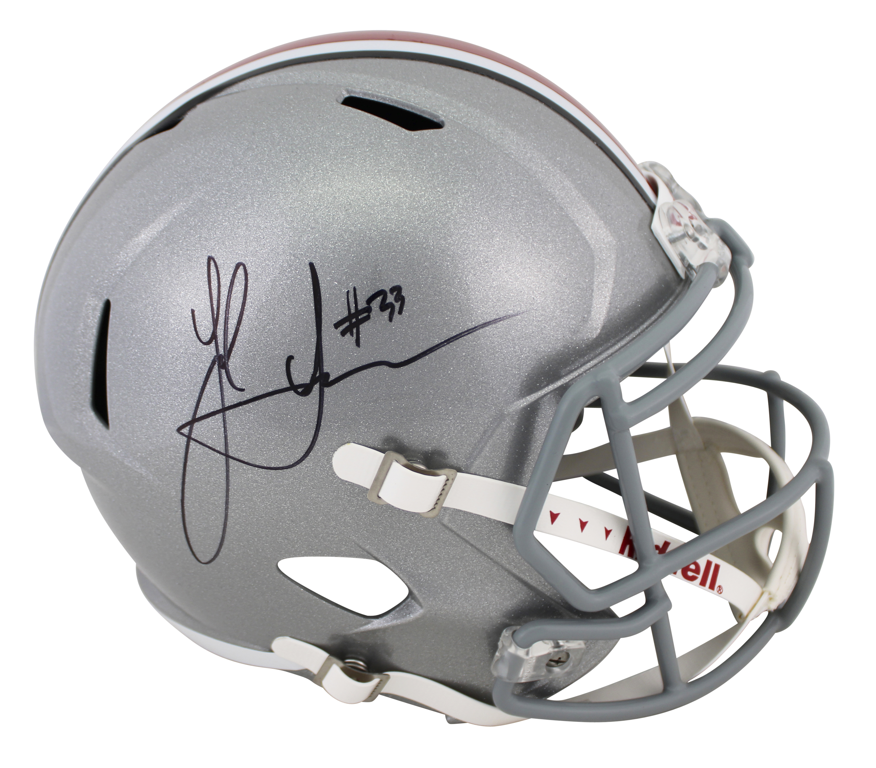 This Autographed Full Size Speed Rep Helmet has been Personally Signed by Jack Sawyer of the Ohio State Buckeyes. This item is 100% Authentic to include a hologram by Beckett Authentication Services. This item will come with an affixed Beckett Authentication Services (BAS) authentication sticker, which includes a scannable QR code to verify authenticity. Please note that Beckett no longer provides serial-numbered COA cards, and the attached BAS sticker will serve as the complete authentication for this item. This is a BAS Witnessed Protection Program item which means a Beckett Authentication Service representative was present when this item was being signed. We conducted an autograph signing with Jack Sawyer where multiples of the same item were signed. While the photographs are representative of this item, the size, placement and strength of the signature may vary. Each item is hand signed, therefore, each autograph is unique. This item can be verified through BAS Witnessed.