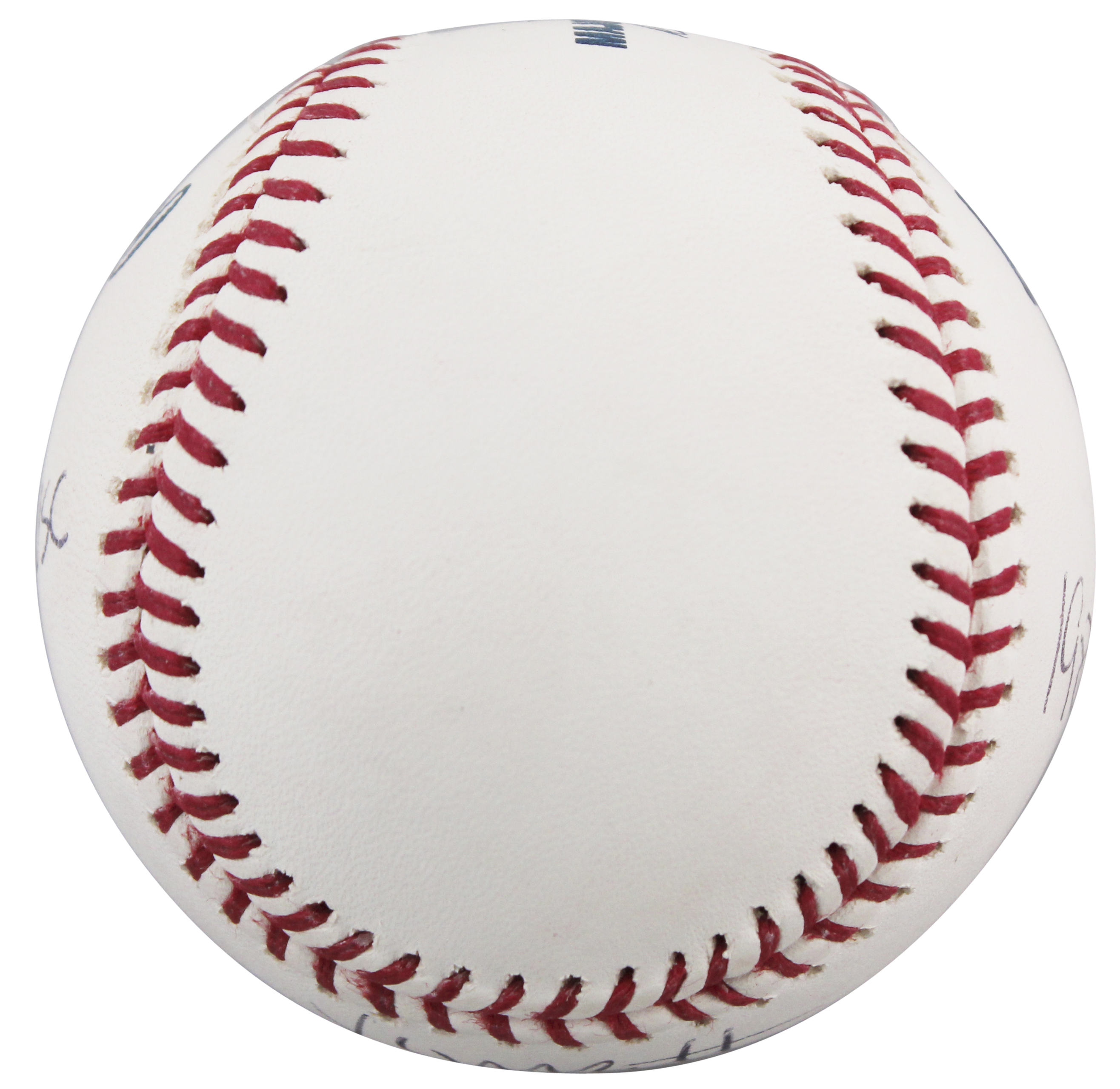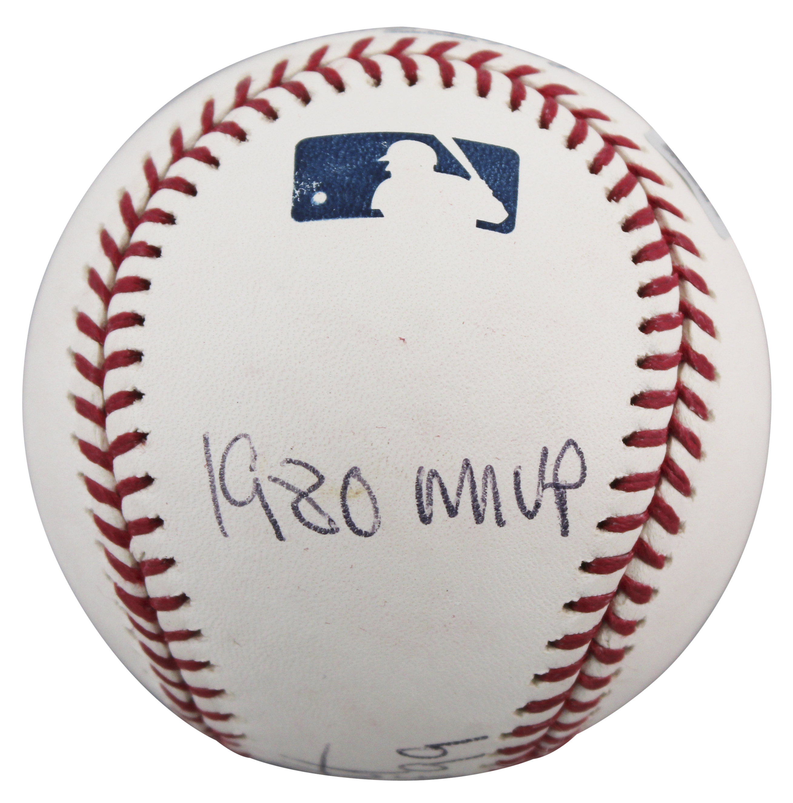 This Autographed Robert Manfred Oml Baseball with the inscription of "HOF 99, 1980 MVP. 1985 WSC" has been Personally Signed by George Brett of the Kansas City Royals. This item is 100% Authentic to include a hologram by Beckett Authentication Services. This item will come with an affixed Beckett Authentication Services (BAS) authentication sticker, which includes a scannable QR code to verify authenticity. Please note that Beckett no longer provides serial-numbered COA cards, and the attached BAS sticker will serve as the complete authentication for this item. The authenticity can be verified on Beckett Authentication Services website.