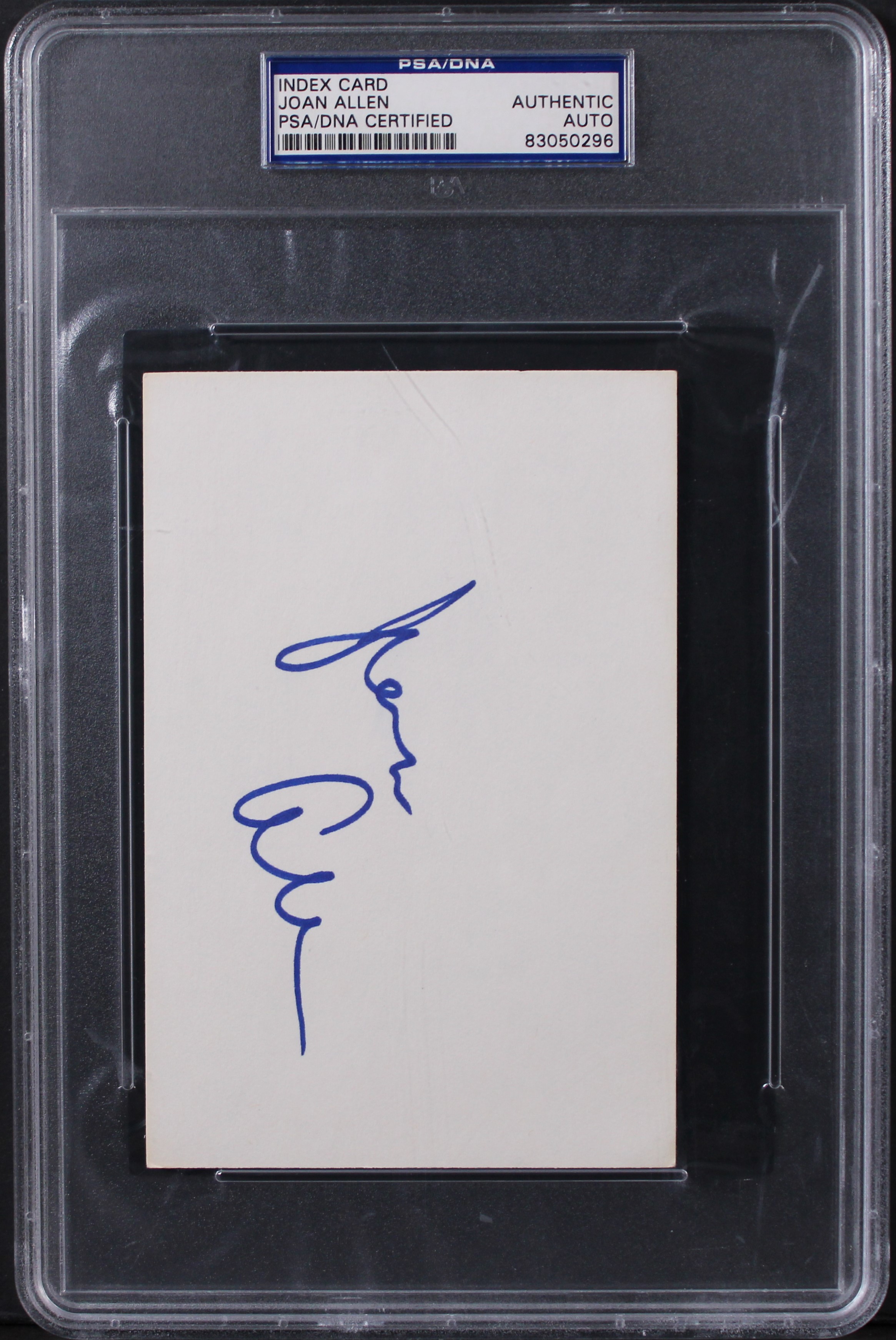This Autographed 4x6 Index Card has been Personally Signed by Joan Allen of The Upside of Anger. This item is 100% Authentic, it comes slabbed and authenticated by PSA/DNA. The authenticity can be verified on Professional Sports Authenticator website.