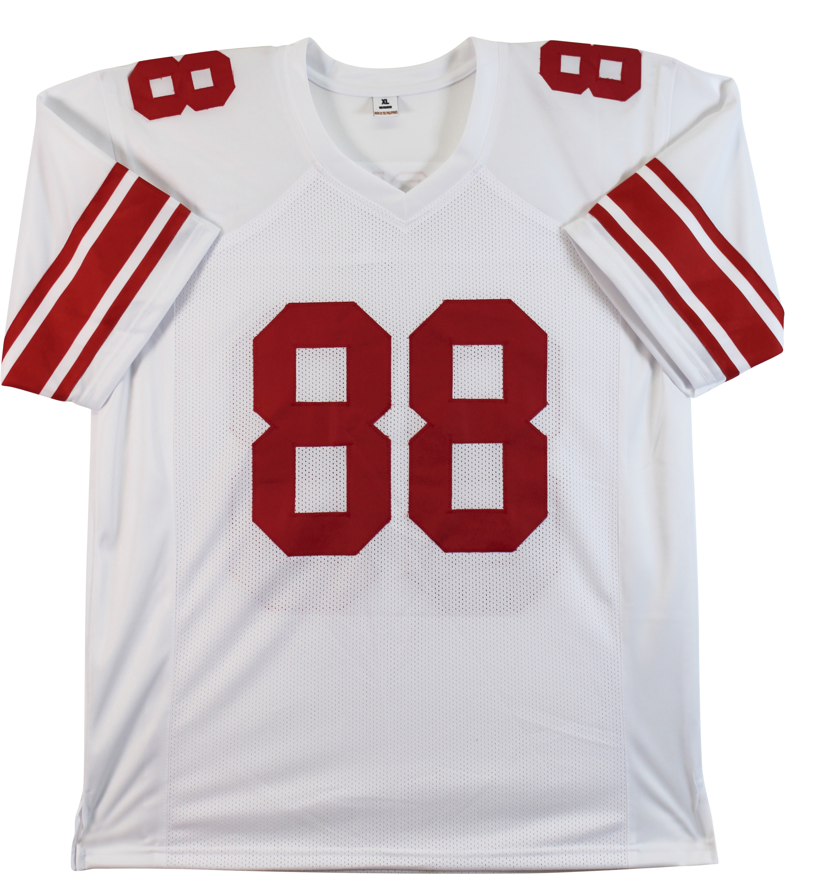 This Autographed White Pro Style Jersey has been Personally Signed by Hakeem Nicks of the New York Giants. This item is 100% Authentic to include a hologram by Beckett Authentication Services. This item will come with an affixed Beckett Authentication Services (BAS) authentication sticker, which includes a scannable QR code to verify authenticity. Please note that Beckett no longer provides serial-numbered COA cards, and the attached BAS sticker will serve as the complete authentication for this item. We conducted an autograph signing with Hakeem Nicks where multiples of the same item were signed. While the photographs are representative of this item, the size, placement and strength of the signature may vary. Each item is hand signed, therefore, each autograph is unique. This item can be verified through BAS. This is a X-Large sized Jersey.