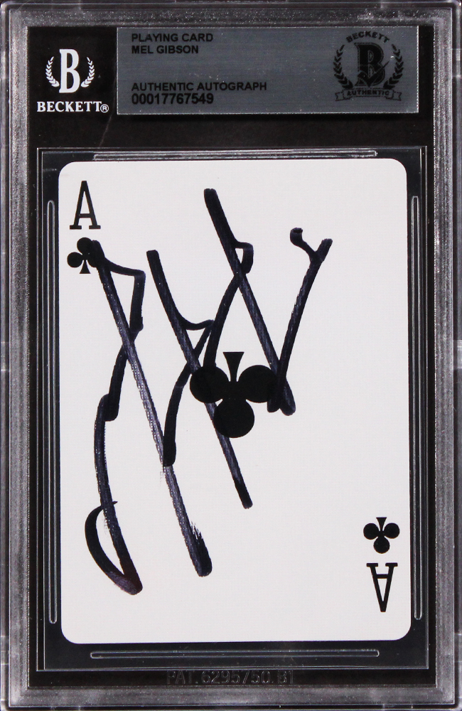 This Autographed Ace Of Clubs Card has been Personally Signed by Mel Gibson of Maverick. This item is 100% Authentic, it comes slabbed and authenticated by Beckett Authentication Services. The authenticity can be verified on Beckett Authentication Services website.