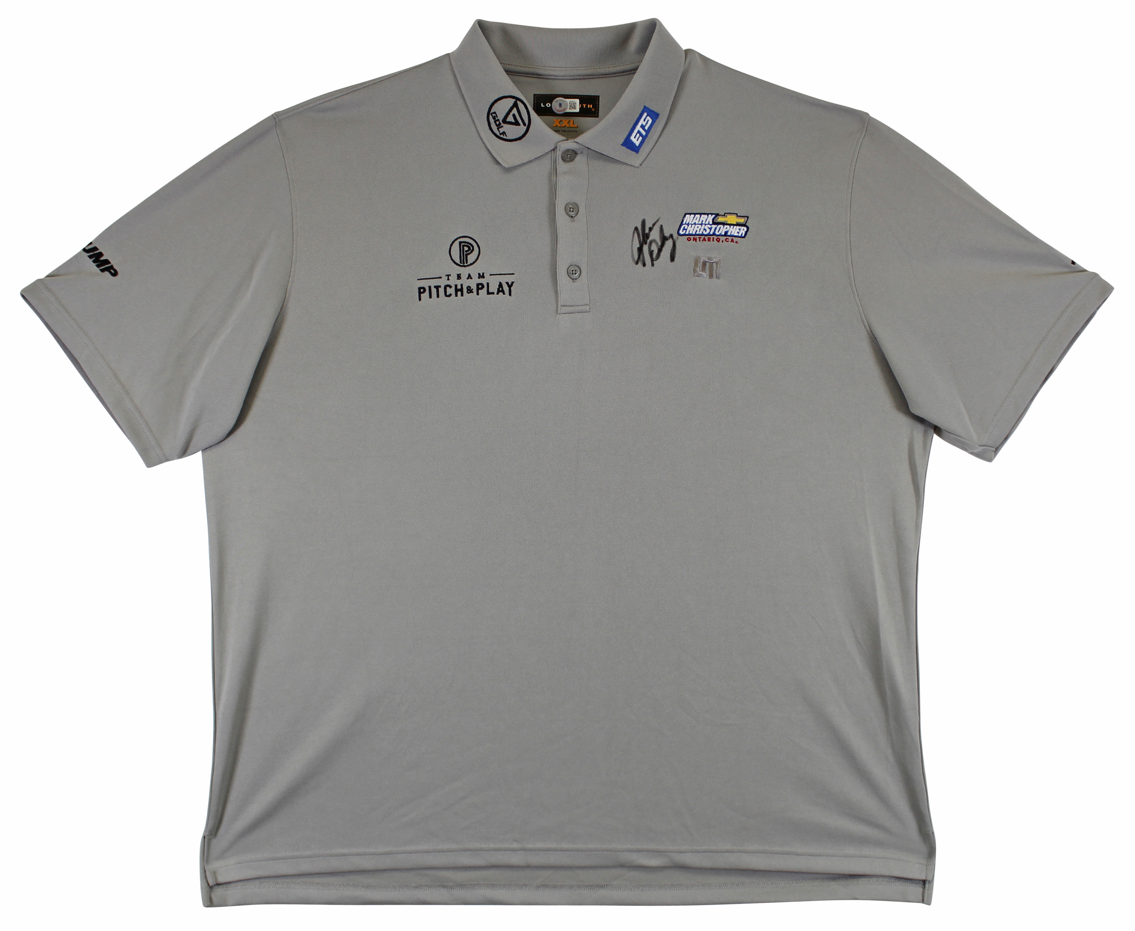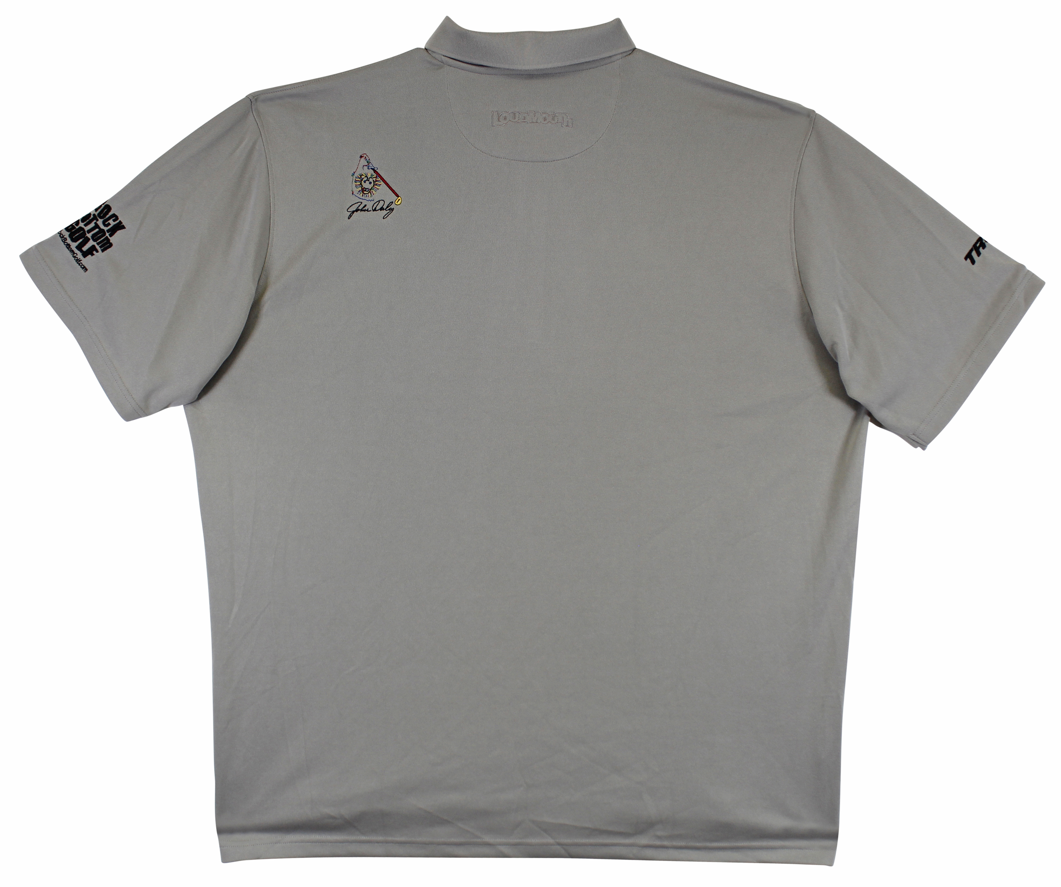This Autographed Match Worn Grey Loudmouth Mark Christopher Team Pitch & Play Rock Bottom Golf Trump Polo Shirt has been Personally Signed by John Daly. This item is 100% Authentic to include a hologram by Beckett Authentication Services. This item will come with an affixed Beckett Authentication Services (BAS) authentication sticker, which includes a scannable QR code to verify authenticity. Please note that Beckett no longer provides serial-numbered COA cards, and the attached BAS sticker will serve as the complete authentication for this item. The authenticity can be verified on Beckett Authentication Services website. This is a XX-Large sized Shirt. This Match Worn Grey Loudmouth Mark Christopher Team Pitch & Play Rock Bottom Golf Trump Polo shirt has been worn by John Daly, and comes with a letter of Authenticity from John Daly certifying this is match worn & provenance of the item coming from his personal collection.