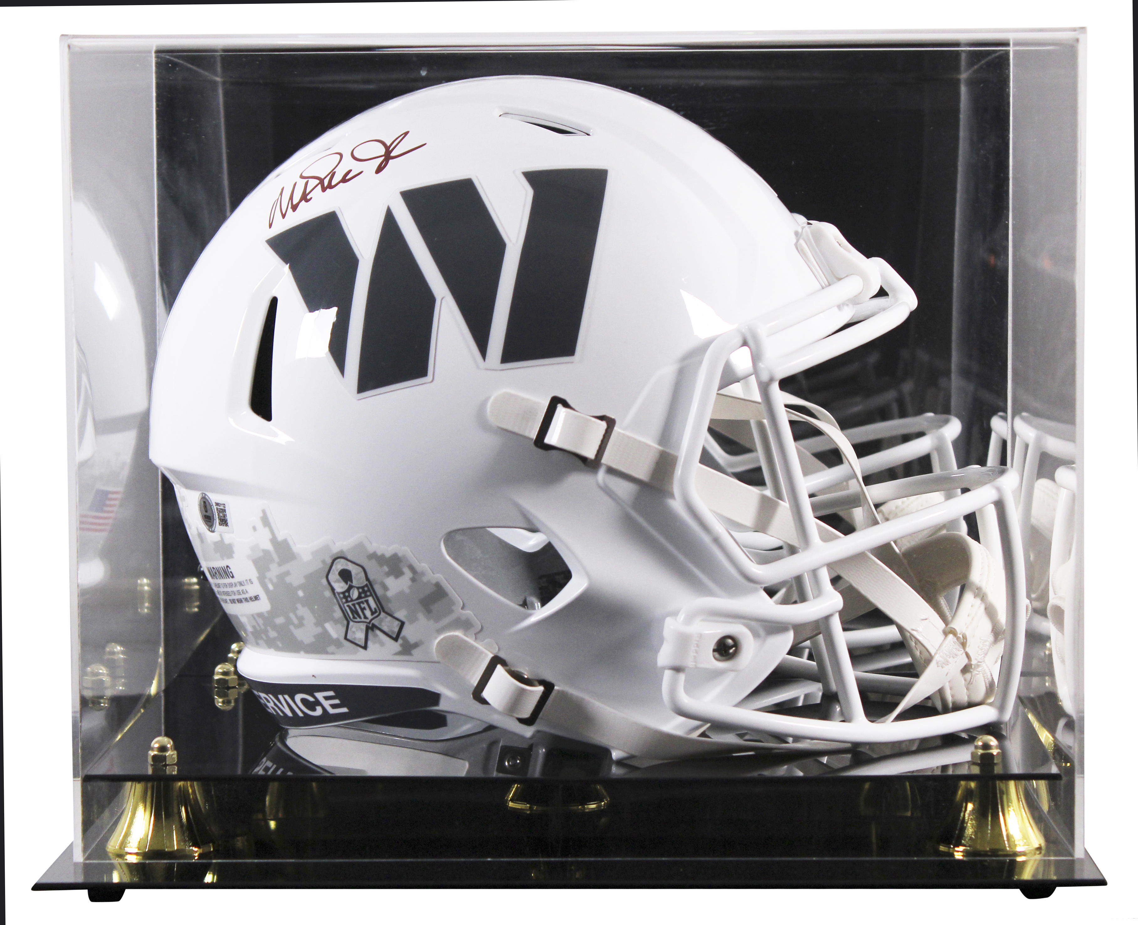 This Autographed w/ Maroon Signature Alternate 2024 Salute To Service III Riddell Full Size Speed Rep Helmet W/ Uv Mirrored Back Acrylic Display Case has been Personally Signed by Magic Johnson of the Washington Commanders. This item is 100% Authentic to include a hologram by Beckett Authentication Services. This item will come with an affixed Beckett Authentication Services (BAS) authentication sticker, which includes a scannable QR code to verify authenticity. Please note that Beckett no longer provides serial-numbered COA cards, and the attached BAS sticker will serve as the complete authentication for this item. This is a BAS Witnessed Protection Program item which means a Beckett Authentication Service representative was present when this item was being signed. We conducted an autograph signing with Magic Johnson where multiples of the same item were signed. While the photographs are representative of this item, the size, placement and strength of the signature may vary. Each item is hand signed, therefore, each autograph is unique. This item can be verified through BAS Witnessed.