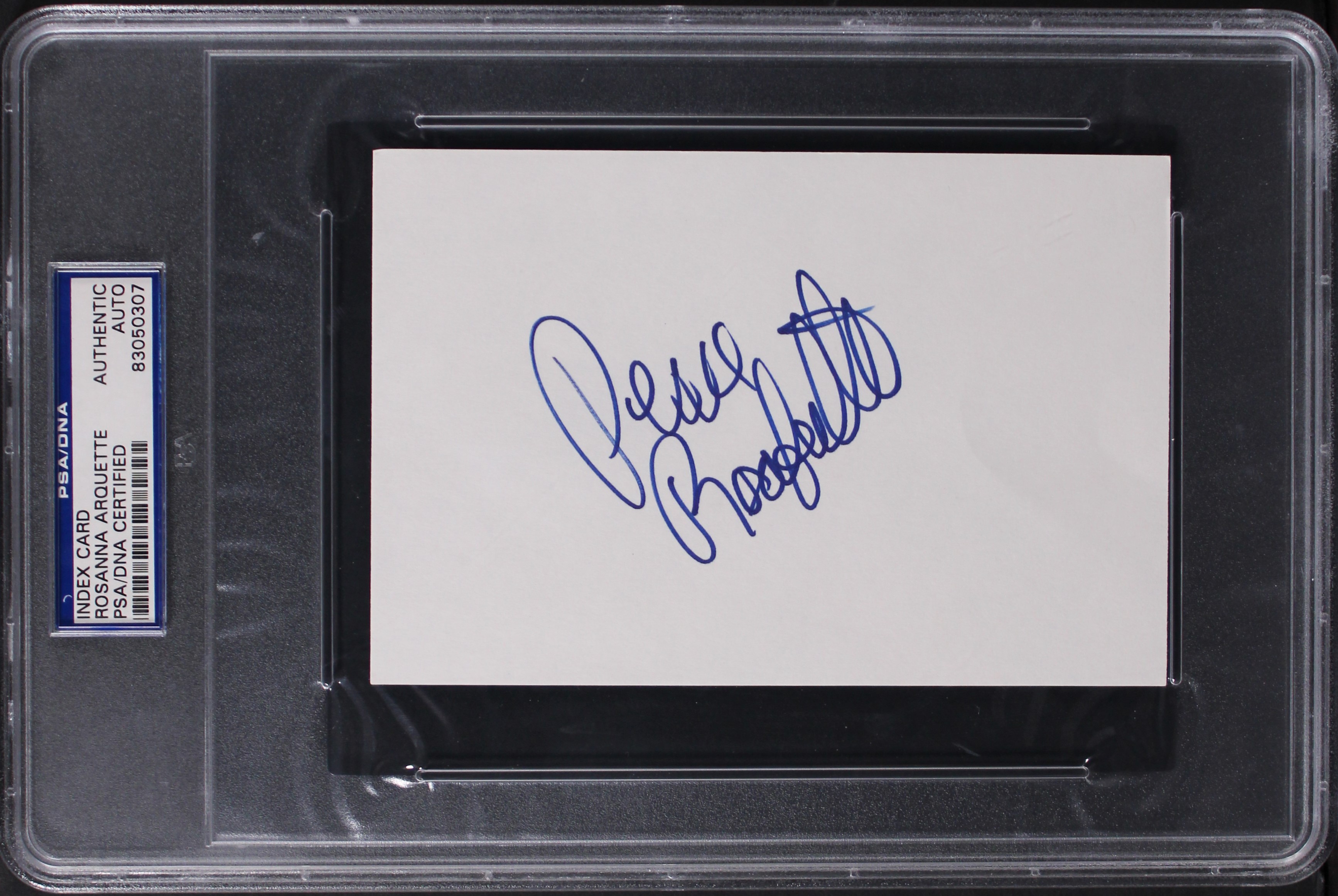 This Autographed 4x6 Index Card has been Personally Signed by Rosanna Arquette of Pulp Fiction. This item is 100% Authentic, it comes slabbed and authenticated by PSA/DNA. The authenticity can be verified on Professional Sports Authenticator website.