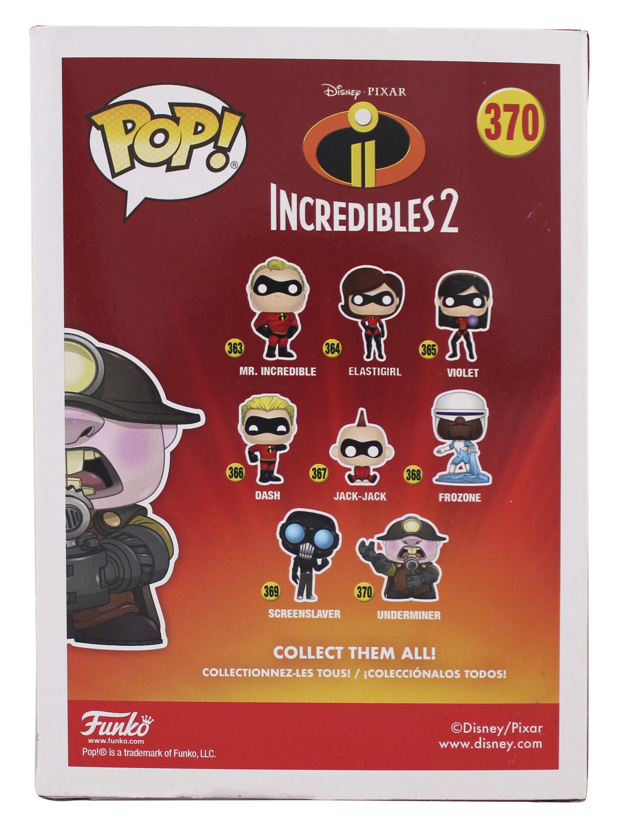 This Autographed Underminer #370 Funko Pop Vinyl Figure has been Personally Signed by John Ratzenberger of The Incredibles 2. This item is 100% Authentic to include a hologram by Beckett Authentication Services. This item will come with an affixed Beckett Authentication Services (BAS) authentication sticker, which includes a scannable QR code to verify authenticity. Please note that Beckett no longer provides serial-numbered COA cards, and the attached BAS sticker will serve as the complete authentication for this item.The authenticity can be verified on Beckett Authentication Services website. This will come in a Pop! Protector, however please refer to photos for condition prior to purchase.