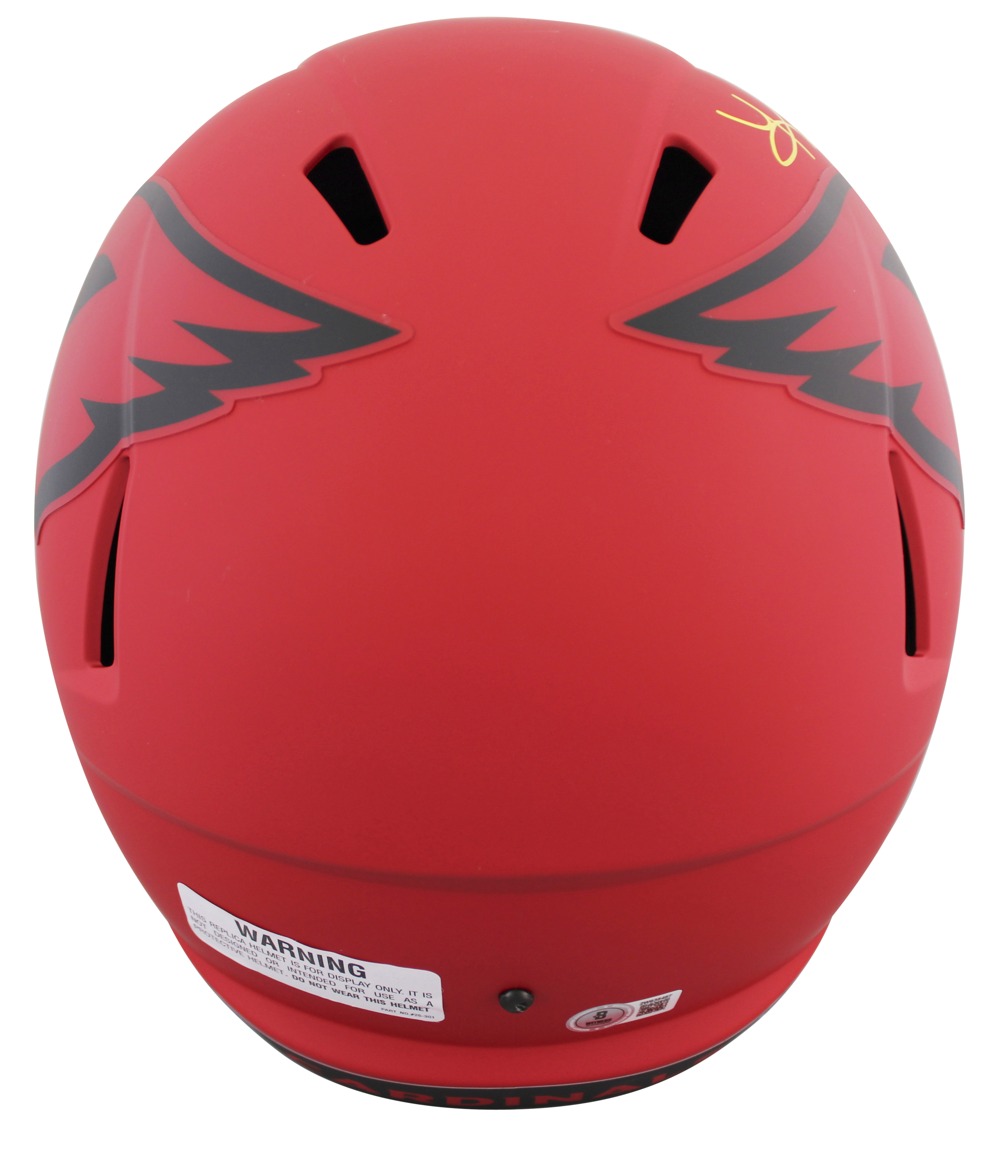 This Autographed Alternate Rave Riddell Full Size Speed Rep Helmet W/ Uv Mirrored Back Acrylic Display Case has been Personally Signed by Kurt Warner of the Arizona Cardinals. This item is 100% Authentic to include a hologram by Beckett Authentication Services. This item will come with an affixed Beckett Authentication Services (BAS) authentication sticker, which includes a scannable QR code to verify authenticity. Please note that Beckett no longer provides serial-numbered COA cards, and the attached BAS sticker will serve as the complete authentication for this item. This is a BAS Witnessed Protection Program item which means a Beckett Authentication Service representative was present when this item was being signed. We conducted an autograph signing with Kurt Warner where multiples of the same item were signed. While the photographs are representative of this item, the size, placement and strength of the signature may vary. Each item is hand signed, therefore, each autograph is unique. This item can be verified through BAS Witnessed.