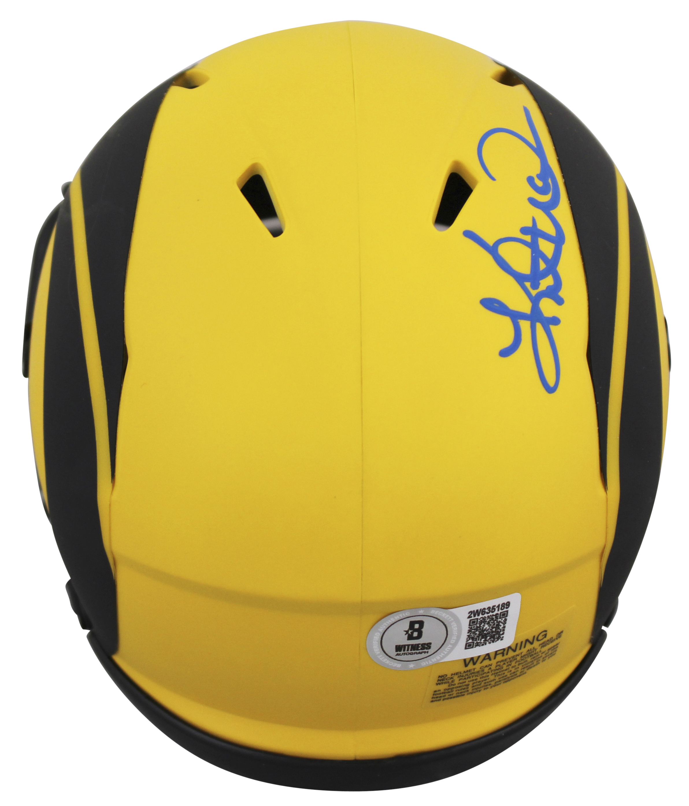 This Autographed Alternate Rave Speed Mini Helmet has been Personally Signed by Kurt Warner of the Los Angeles Rams. This item is 100% Authentic to include a hologram by Beckett Authentication Services. This item will come with an affixed Beckett Authentication Services (BAS) authentication sticker, which includes a scannable QR code to verify authenticity. Please note that Beckett no longer provides serial-numbered COA cards, and the attached BAS sticker will serve as the complete authentication for this item. This is a BAS Witnessed Protection Program item which means a Beckett Authentication Service representative was present when this item was being signed. We conducted an autograph signing with Kurt Warner where multiples of the same item were signed. While the photographs are representative of this item, the size, placement and strength of the signature may vary. Each item is hand signed, therefore, each autograph is unique. This item can be verified through BAS Witnessed.