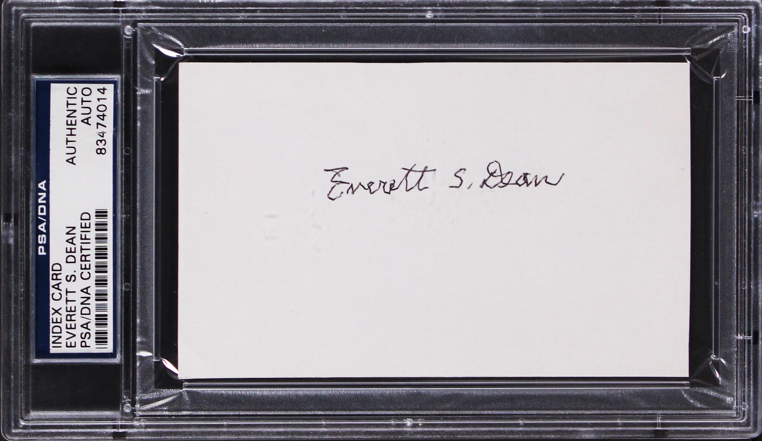 This Autographed 3x5 Index Card has been Personally Signed by Everett S. Dean of the Indiana Hoosiers. This item is 100% Authentic, it comes slabbed and authenticated by PSA/DNA. The authenticity can be verified on Professional Sports Authenticator website.
