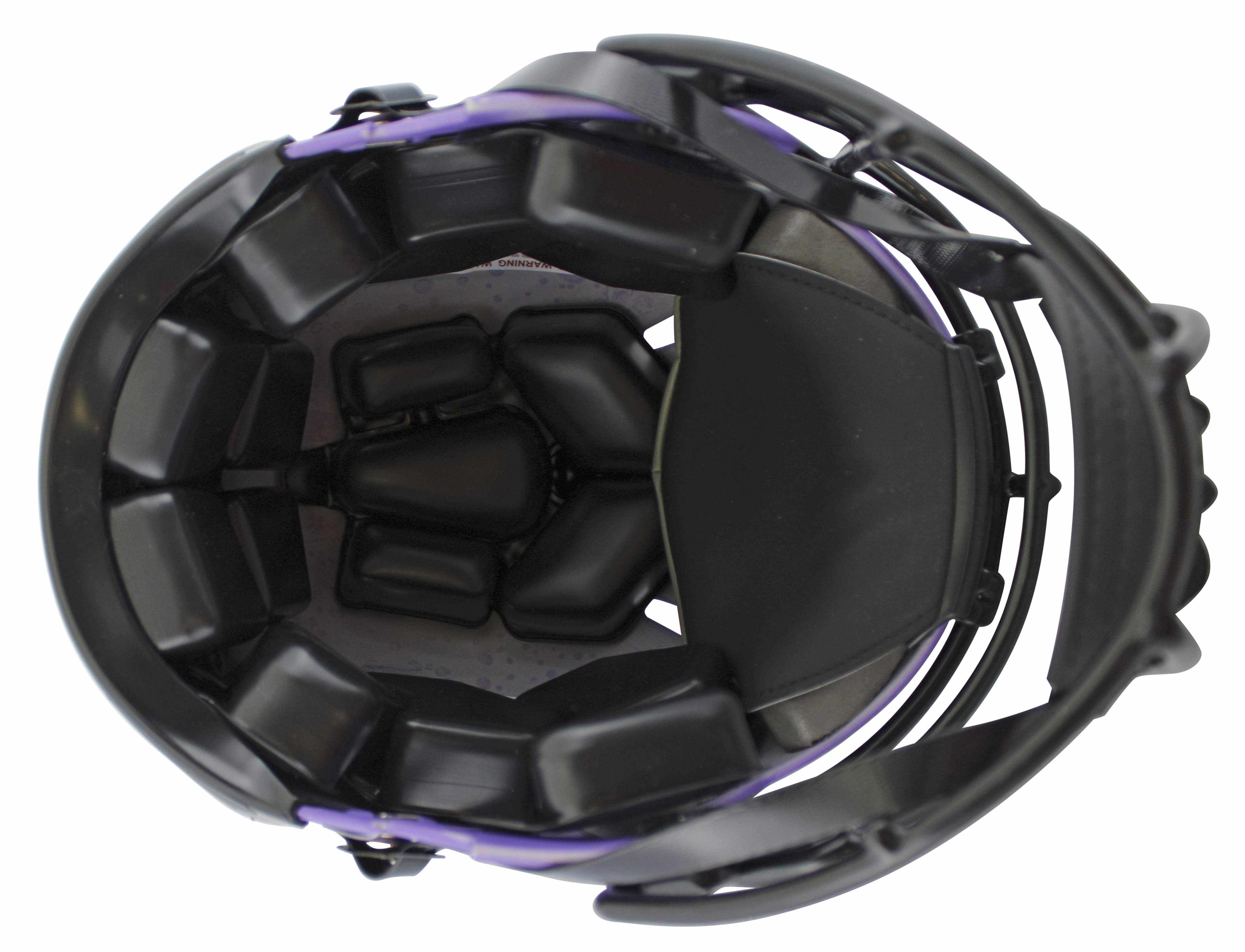This Autographed Alternate Rave Riddell Authentic Full Size Speed Proline Helmet with the inscription of "All Damn Day" has been Personally Signed by Adrian Peterson of the Minnesota Vikings. This item is 100% Authentic to include a hologram by Beckett Authentication Services. This item will come with an affixed Beckett Authentication Services (BAS) authentication sticker, which includes a scannable QR code to verify authenticity. Please note that Beckett no longer provides serial-numbered COA cards, and the attached BAS sticker will serve as the complete authentication for this item. This is a BAS Witnessed Protection Program item which means a Beckett Authentication Service representative was present when this item was being signed. We conducted an autograph signing with Adrian Peterson where multiples of the same item were signed. While the photographs are representative of this item, the size, placement and strength of the signature may vary. Each item is hand signed, therefore, each autograph is unique. This item can be verified through BAS Witnessed.