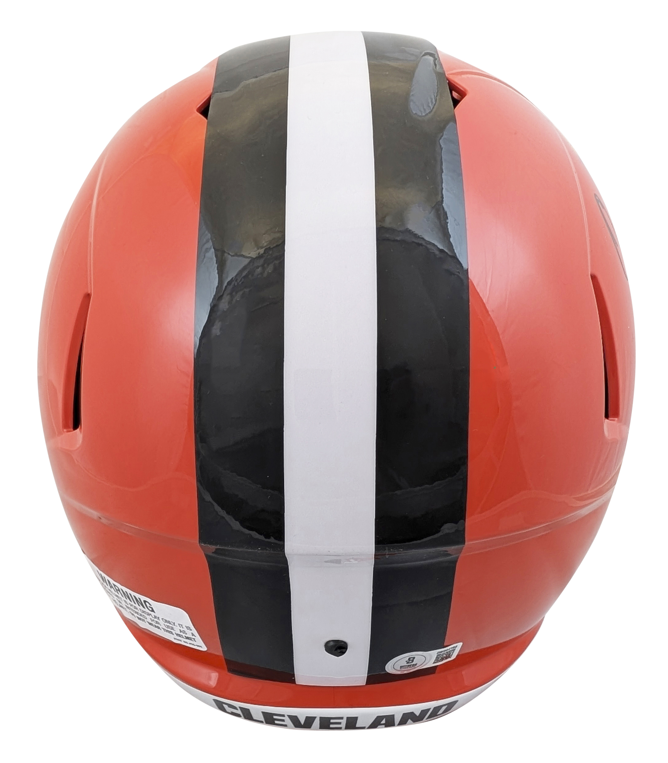 This Autographed 2024 Riddell Full Size Speed Rep Helmet with the inscription of "HOF 99" has been Personally Signed by Ozzie Newsome of the Cleveland Browns. This item is 100% Authentic to include a hologram by Beckett Authentication Services. This item will come with an affixed Beckett Authentication Services (BAS) authentication sticker, which includes a scannable QR code to verify authenticity. Please note that Beckett no longer provides serial-numbered COA cards, and the attached BAS sticker will serve as the complete authentication for this item. This is a BAS Witnessed Protection Program item which means a Beckett Authentication Service representative was present when this item was being signed. We conducted an autograph signing with Ozzie Newsome where multiples of the same item were signed. While the photographs are representative of this item, the size, placement and strength of the signature may vary. Each item is hand signed, therefore, each autograph is unique. This item can be verified through BAS Witnessed.
