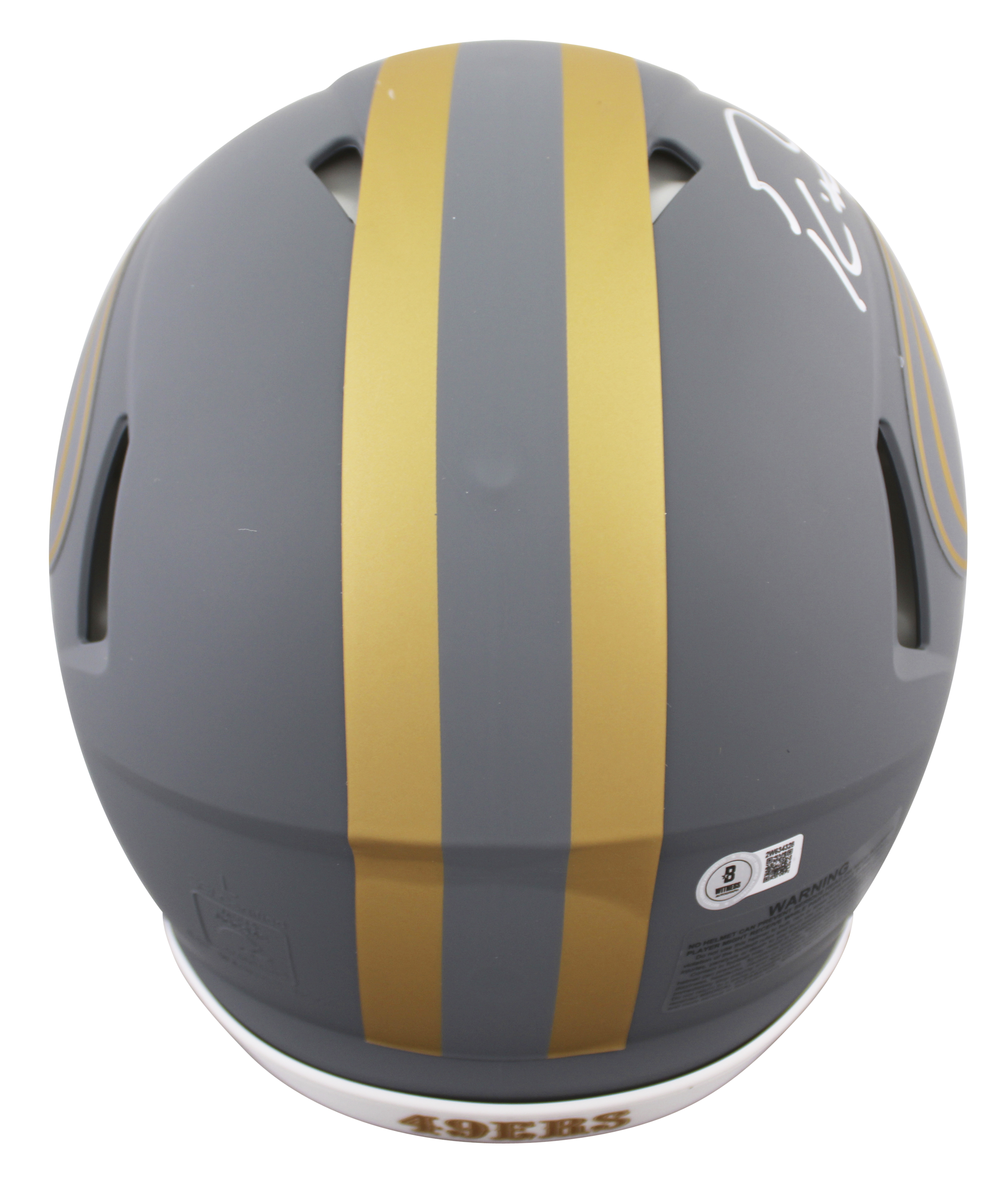 This Autographed Alternate Slate Riddell Full Size Speed Proline Helmet W/ Uv Mirrored Back Acrylic Display Case has been Personally Signed by George Kittle of the San Francisco 49ers. This item is 100% Authentic to include a hologram by Beckett Authentication Services. This item will come with an affixed Beckett Authentication Services (BAS) authentication sticker, which includes a scannable QR code to verify authenticity. Please note that Beckett no longer provides serial-numbered COA cards, and the attached BAS sticker will serve as the complete authentication for this item. This is a BAS Witnessed Protection Program item which means a Beckett Authentication Service representative was present when this item was being signed. We conducted an autograph signing with George Kittle where multiples of the same item were signed. While the photographs are representative of this item, the size, placement and strength of the signature may vary. Each item is hand signed, therefore, each autograph is unique. This item can be verified through BAS Witnessed.