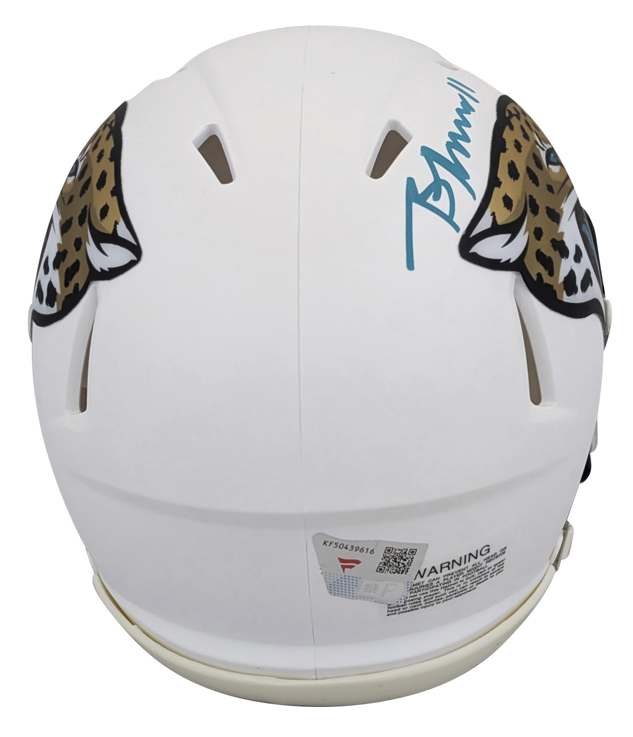 This Autographed On-Field Alternate 2024 Speed Mini Helmet has been Personally Signed by Brian Thomas Jr. of the Jacksonville Jaguars. This item is 100% Authentic to includes a numbered hologram by Fanatics. We conducted an autograph signing with Brian Thomas Jr. where multiples of the same item were signed. While the photographs are representative of this item, the size, placement and strength of the signature may vary. Each item is hand signed, therefore, each autograph is unique. This item can be verified through Fanatics.